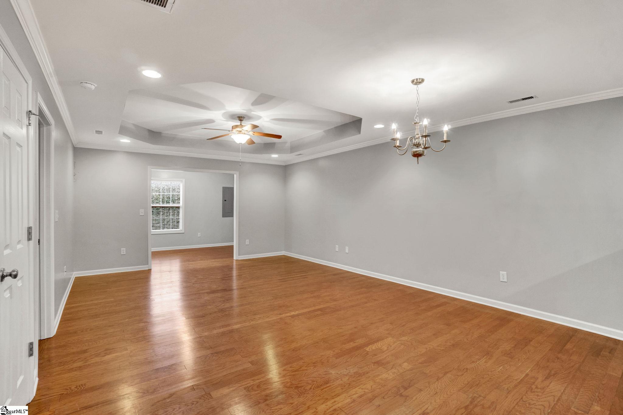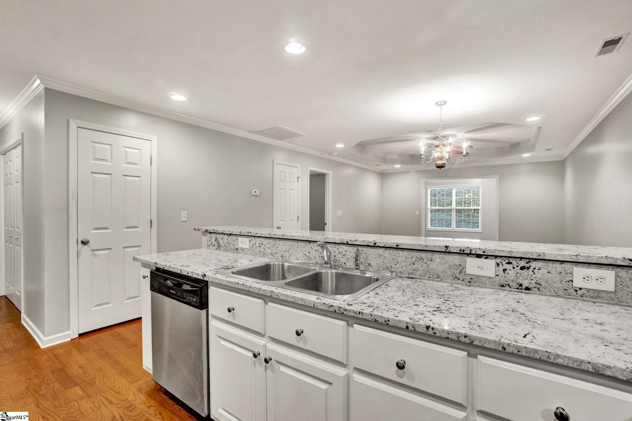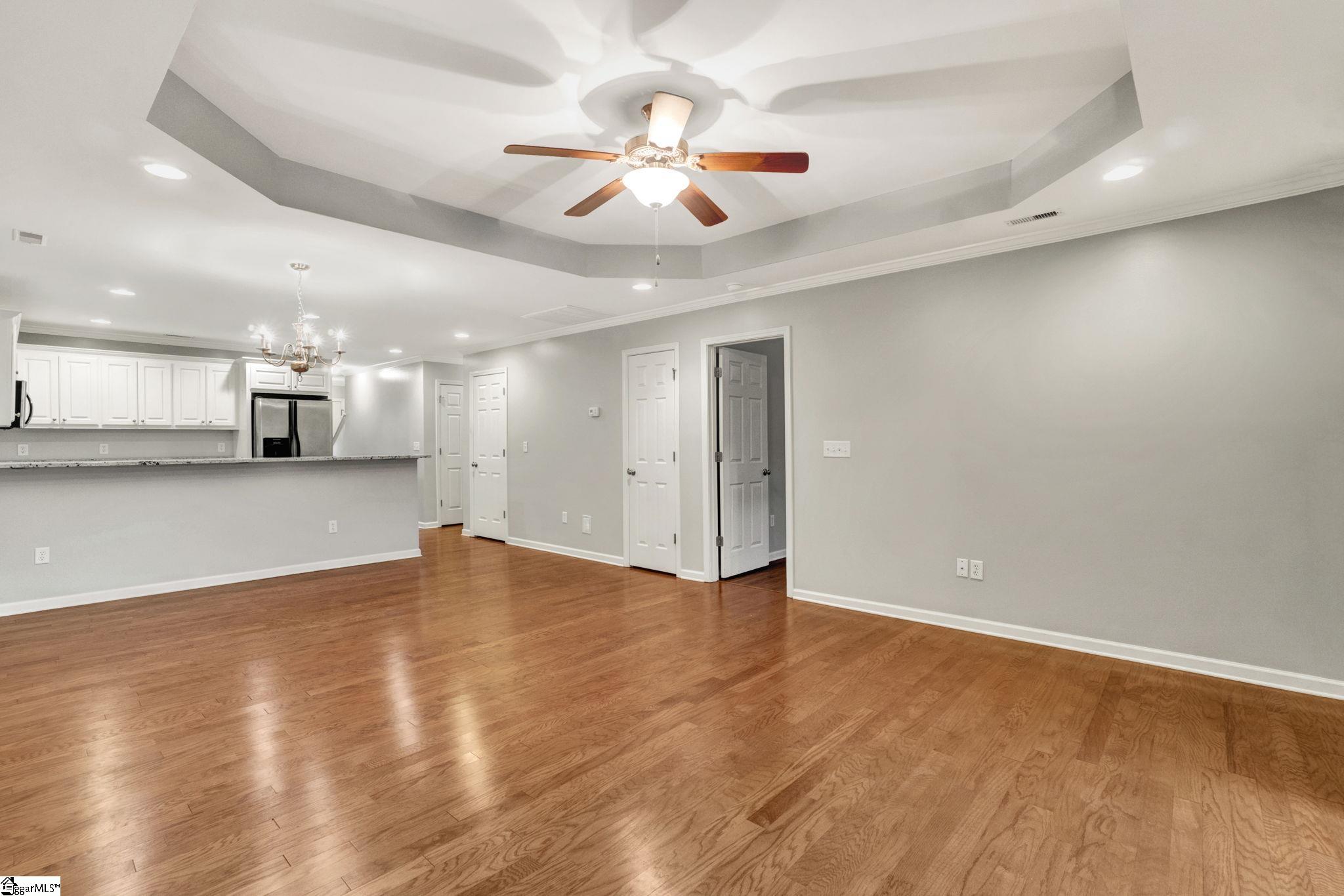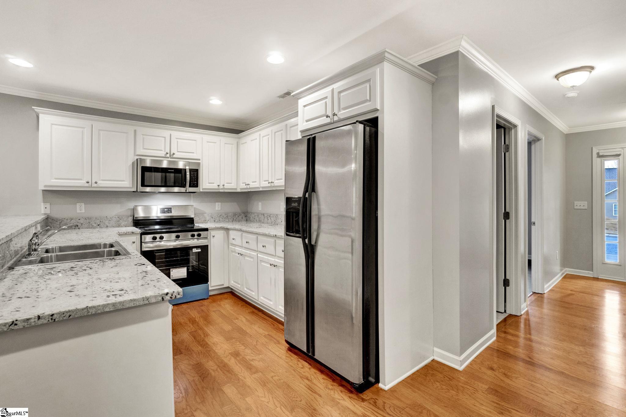 Looking for a home that stands out from the inventory crowd? This one delivers, not just with beautiful updates, but with true lifestyle advantages. Enjoy peace of mind with an HOA that goes far beyond basic lawn care. Exterior maintenance and landscaping are included, and the bylaws cover the repair, replacement, and care of roofs, gutters, downspouts, soffits, fascia, siding, trim, and even garage coach lights. That means less to worry about and more time to enjoy life. Even better, the parking lot was recently re-asphalted at no cost to homeowners, a valuable improvement already taken care of for you. Inside, updated floors, countertops, and appliances give the home a fresh, move-in ready feel. The open-concept living room, dining area, and kitchen flow beautifully together, offering generous flexibility for furniture placement and entertaining. The well-equipped kitchen features abundant cabinet and counter space, plus a peninsula large enough for barstools. It is perfect for casual dining or gathering with friends. The primary suite is conveniently located on the main level and showcases a trey ceiling, walk-in closet, and a spacious bath with soaking tub, separate shower, and double sinks. A second main-level bedroom, full bath, and laundry room add everyday convenience. One of the standout features is the bright sunroom just off the great room which could be ideal for a home office, reading nook, playroom, or formal dining space. It’s flexible square footage that truly sets this home apart. Upstairs, you’ll find a private third bedroom with a full bathroom. This is an incredible setup for guests, multigenerational living, a media room, or a dedicated hobby space. This upper-level retreat adds both value and versatility that’s hard to find at this price point. Relax on the screened porch with your morning coffee or unwind in the evening with a little bird watching. With exterior maintenance handled for you, weekends are yours again. Located just minutes from downtown Simpsonville’s shopping and dining, with easy access to I-385, Greenville, and Woodruff Road, this property is perfectly positioned for convenience. Whether you’re looking for an affordable primary residence or a strong investment opportunity in a desirable area, this is a rare find. Call today to schedule your showing today! This gem won’t last long.