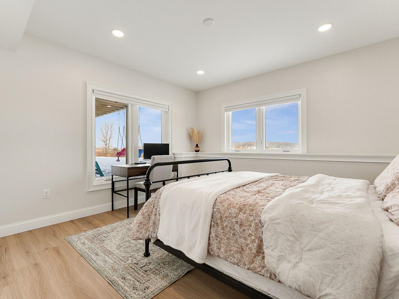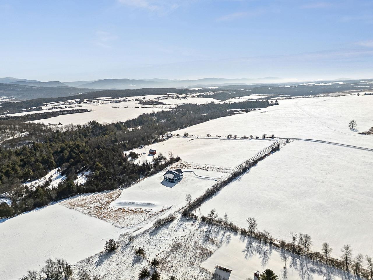 Experience privacy and modern luxury in this immaculate, 3-bedroom, 3-bathroom ranch, perfectly situated on 5+ acres on a private road. This home masterfully blends high-end finishes with a thoughtful layout designed for both comfort and grand-scale entertaining. The heart of the home features an expansive open floor plan with soaring 9-foot ceilings, mini-splits, cozy propane fireplace, and the comfort of heated floors throughout. The gourmet kitchen is a chef’s dream, boasting a spacious island, propane stove, and a massive walk-in pantry equipped with outlets for appliances to keep your counters clutter-free. Large glass doors lead from the living and dining areas to a covered porch, offering a front-row seat to breathtaking, unobstructed Adirondack views. The primary suite serves as a private sanctuary, featuring a spa-like bathroom with a deep soaking tub and custom tiled shower. Practicality meets style with a dedicated mudroom off the attached two-car garage (with bonus storage), leading into a separate laundry room. The fully-finished basement is a versatile masterpiece, thoughtfully designed it could easily function as a self-contained guest wing or the ultimate work from home space. This level features two bright office spaces with egress windows, a large living area with a custom bar, and glass sliders leading to a covered outdoor area. The lower-level bathroom offers a unique split design for maximum efficiency, with a double vanity in one room and a tiled bathtub and toilet in the other. A dedicated playroom and large utility room ensure there is a place for everything. With its pristine condition and incredible setting, this home offers a rare blend of sophistication, privacy, and setting only minutes outside of Vergennes. 20 minutes to Middlebury and 40 minutes to Burlington!
