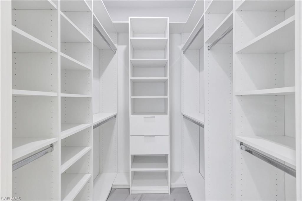 layout ensures privacy for the primary retreat, which boasts his-and-hers walk-in closets and a spa-like shower with a dual-sink quartz vanity.