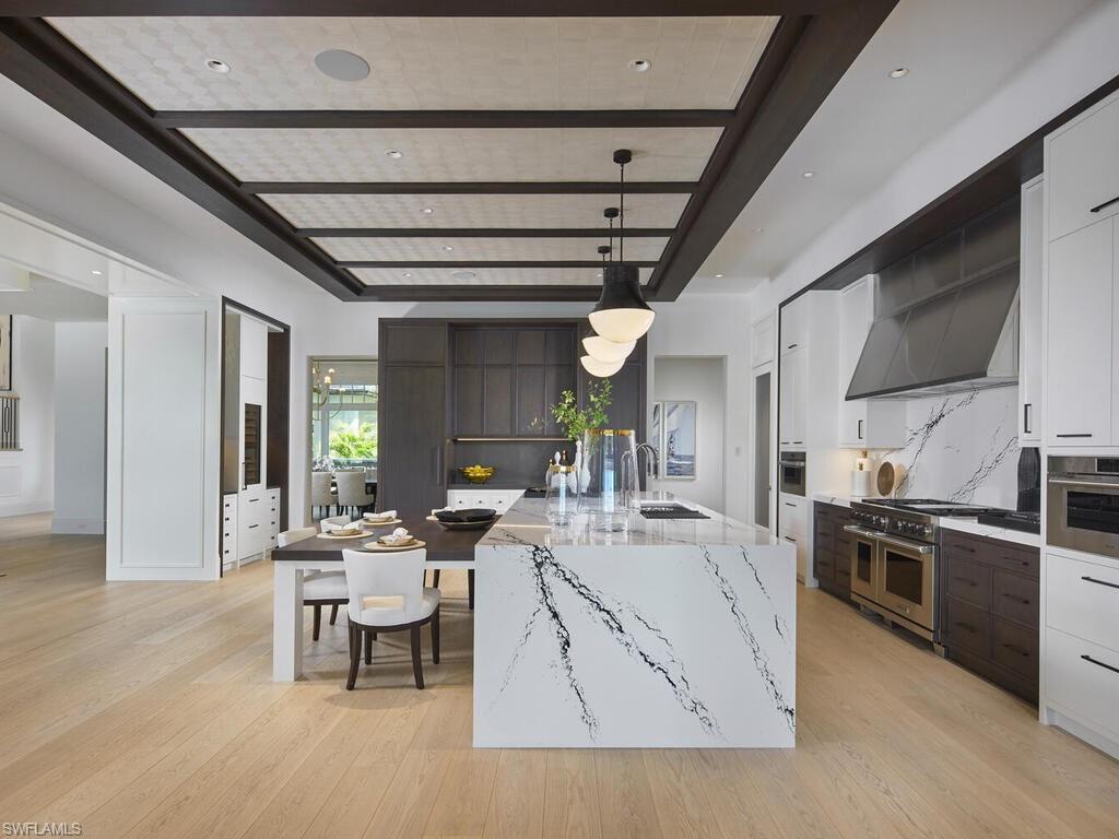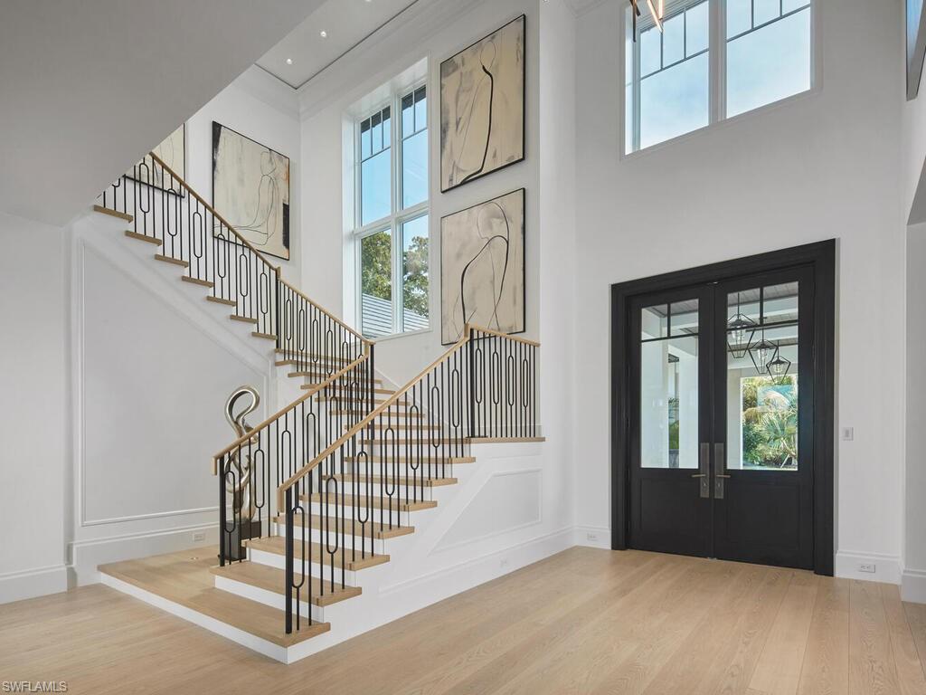 London Bay has unveiled an exceptional custom estate in Port Royal that features an impressive 160 feet of waterfront along Hidden Bay. This property boasts a desirable western exposure, providing direct access to the Gulf. The residence has been meticulously designed for both entertaining and everyday living. The architectural elements, crafted by Stofft Cooney Architects, are elegantly complemented by interiors curated by Romanza Interior Design. The estate includes expansive outdoor spaces and waterfront destinations, all surrounded by lush tropical landscaping designed by Exteriors by Koby Kirwin. The seamless integration of indoor and outdoor areas is further enhanced by resort-style amenities and private guest accommodations. On the main floor, you'll find a spacious primary retreat with custom closets and dedicated laundry facilities, a study, a formal dining room, and a distinguished club room with private deck access that features a fire pit. The second floor comprises five spacious guest suites, each with direct access to a balcony, as well as a lounge and a space suitable for a personal gym. Additional features include an elevator, a generator, three laundry rooms, and air-conditioned four-car garage. This incredible property is just a short distance from the Port Royal Club and the shops and dining options on Third Street and Fifth Avenue South.