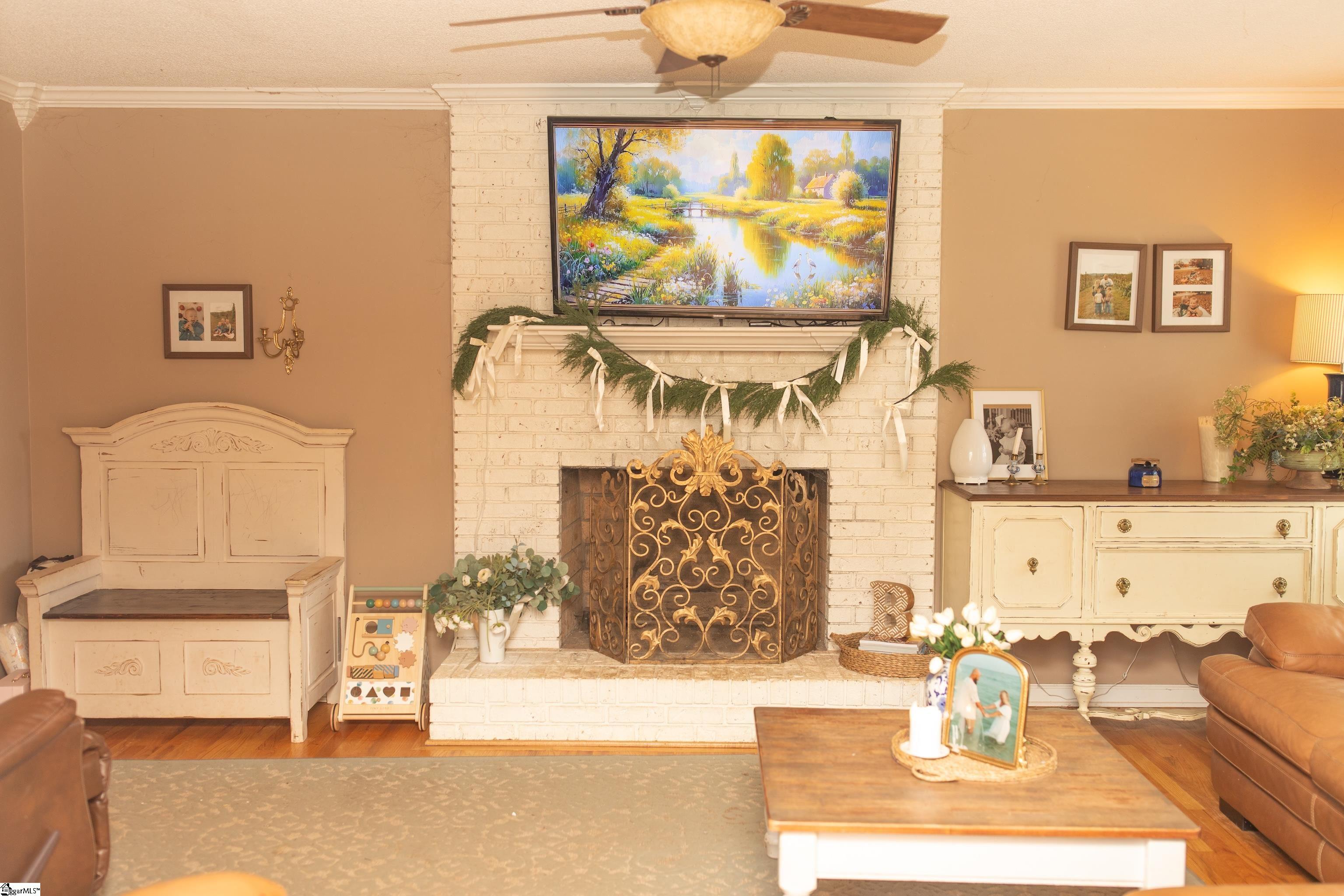 WELCOME. . . your beautiful home awaits. This home has such inviting curb appeal with all the mature trees and bushes already in place giving you privacy to enjoy your yard. As you walk up the sidewalk to the rocking chair front porch you will feel welcomed entering your home. Step inside and visualize your family making all their sweet memories here. The living room has double windows to bring in sunshine to brighten the day. The beautiful brick fireplace is a great place to cozy up and relax while wrapping up your day or enjoying during the cold winter months. Off the living room is a dining room for all the meals you will be sharing with family and friends. As you walk into the, heart of the home, eat-in kitchen, with a bay window, you will notice you have plenty of space for all the cooking and hanging out. And after making cooking mess memories with the kids the laundry room is right there to make the clean up a smooth process. Up the stairway you have all three bedrooms making it easy to keep an eye on everyone throughout the night. The large Primary Bedroom has a huge walk-in closet with built-in shelving. The Primary Bath has his/her sinks and a tub/shower combo as well as built-in shelves for your linens and storage. The other two bedrooms are the perfect size for the kids or use as an office. There is also a 2nd full bath in the upstairs hallway. As you walk through this home you will notice the hardwood floors in the foyer, living room and dining room. The kitchen has nice tile floors but let's not leave out the sturdy wood cabinets (real wood cabinets are hard to find nowadays). The screened-in porch is a great place to have some quiet time. Also, we can't leave out that there are pecan trees, azaleas, gardenias, crepe myrtle and a cherry tree for your enjoyment while outdoors. This home is waiting for its new family. . . so what are YOU waiting for???
