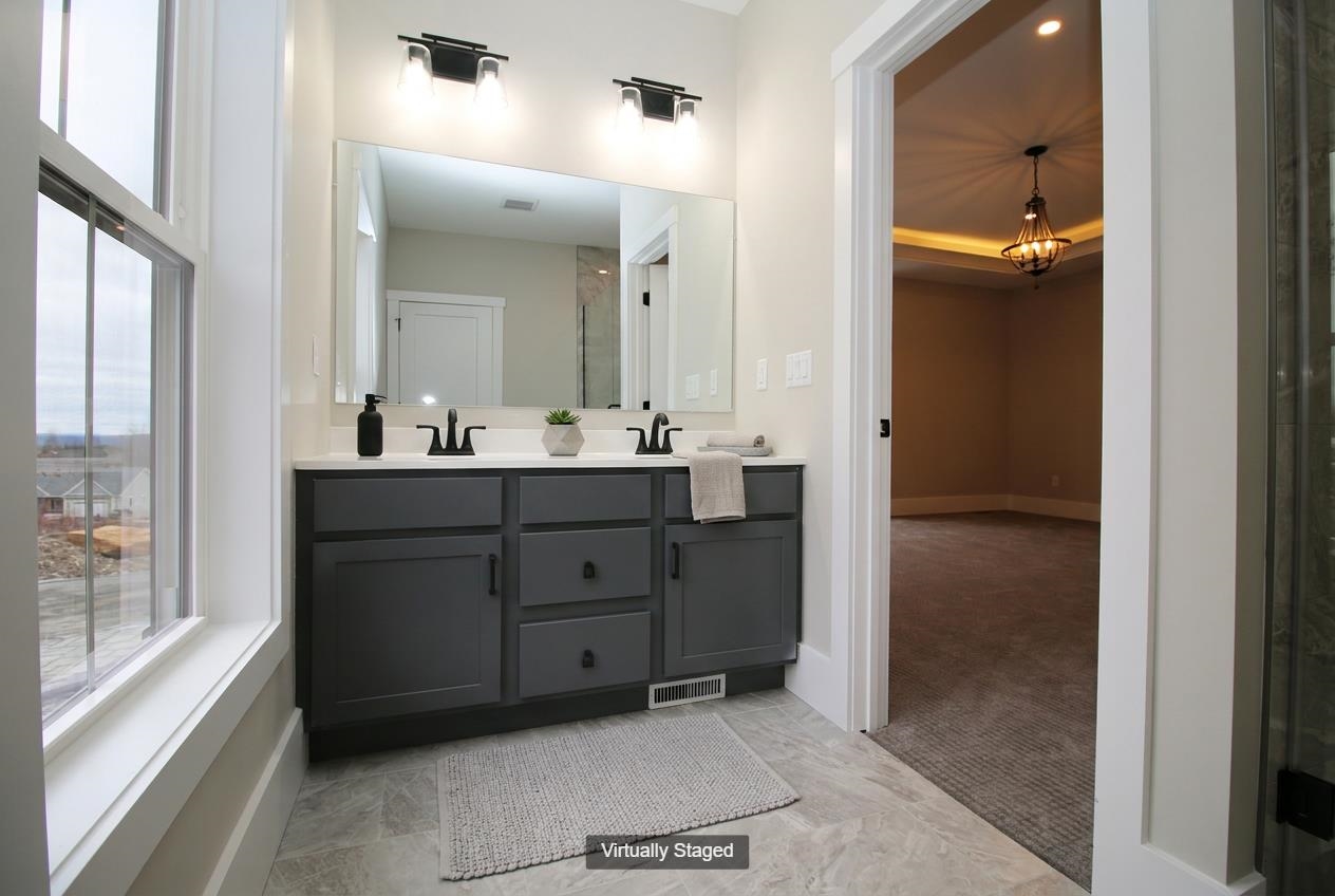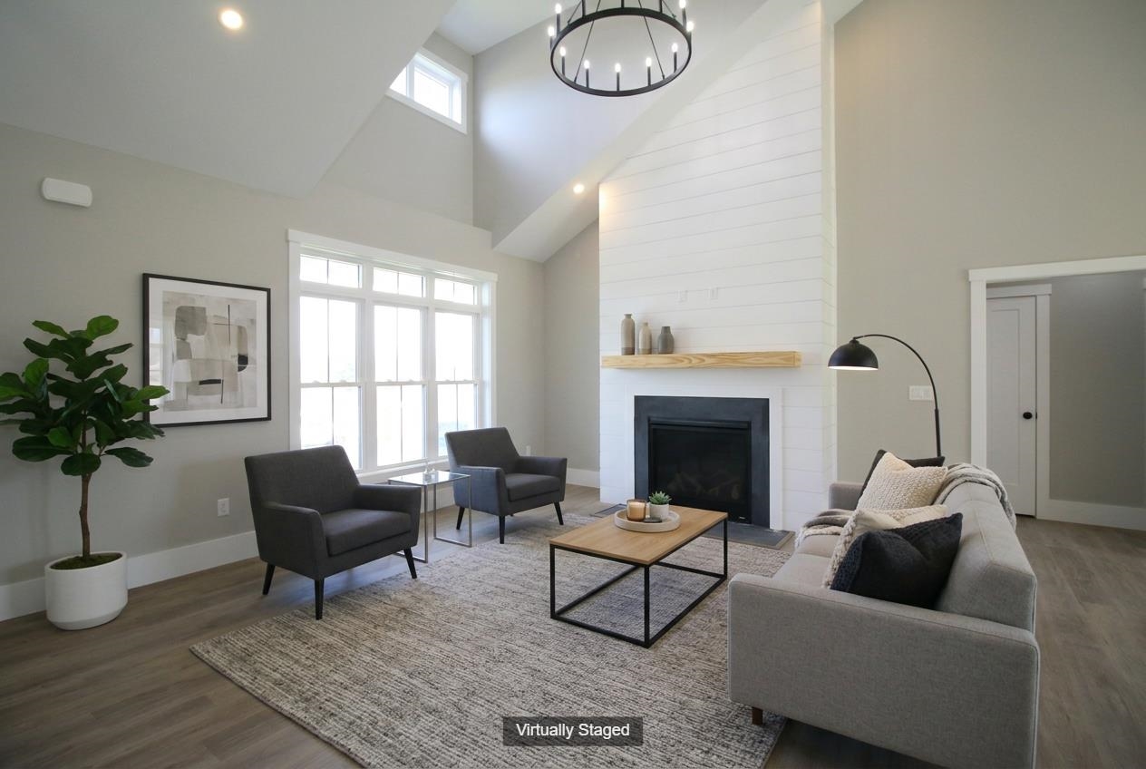 To Be Built - This beautifully designed new construction offers 3 bedrooms and 2 bathrooms across 1, 857 square feet of thoughtfully planned living space. The home makes a wonderful first impression with its covered front porch entry. Step inside to find soaring cathedral ceilings that extend from the living room through the kitchen and dining areas, creating an open and inviting atmosphere throughout the main level. The kitchen features a generous center island perfect for preparing meals or gathering with family. The adjacent dining room includes slider doors opening to a covered porch, offering a seamless transition between indoor and outdoor living. Practical design elements include a mudroom and laundry area conveniently located off the garage entrance. A private primary bedroom with its accompanying bathroom delivers spa-like amenities including a tile shower, relaxing soaking tub, and heated floor for added comfort. Photos are facsimile and shown with optional upgrades. Agent interest.