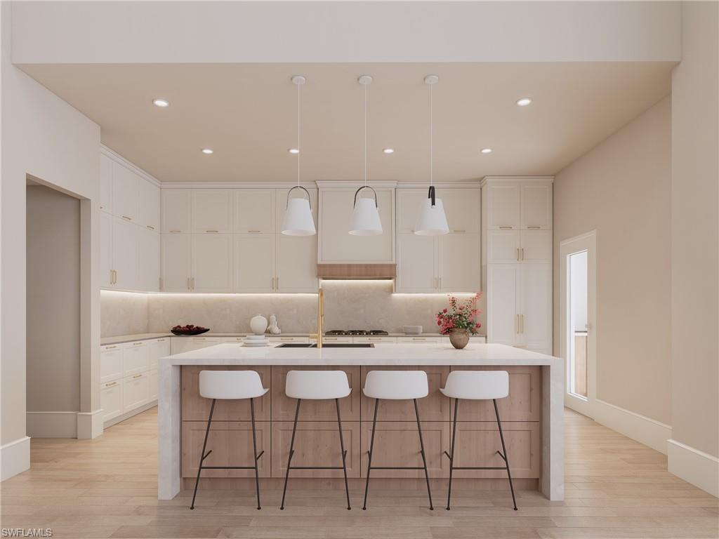 Designed with intention and bathed in coveted southern exposure, this custom-built Gulf-access home offers beautiful all-day natural light and a floor plan that truly lives well. The main level includes a luxurious primary suite, guest bedroom with adjacent full bath, and a dedicated den, while upstairs features a private second primary ensuite and an oversized flex room perfect for a media room, fitness space, or additional living area. Built to FEMA standards with no-bridge boating access, it delivers both peace of mind and waterfront freedom, complete with a private dock and lift — truly boater-ready. The great room impresses with 24-foot ceilings rising to a dramatic 35-foot cupola, complemented by white oak floors, natural stone selections, custom cabinetry, a built-in refrigerator, and top-tier appliances. Outdoors, enjoy a resort-style pool and spa, summer kitchen, and spacious two-car garage. Walk to the Naples Botanical Garden, explore the boardwalk to Sugden Regional Park, enjoy live music, breweries, wine venues, and coffee shops, and be just two miles from Downtown Naples in one of the area’s most exciting waterfront communities.