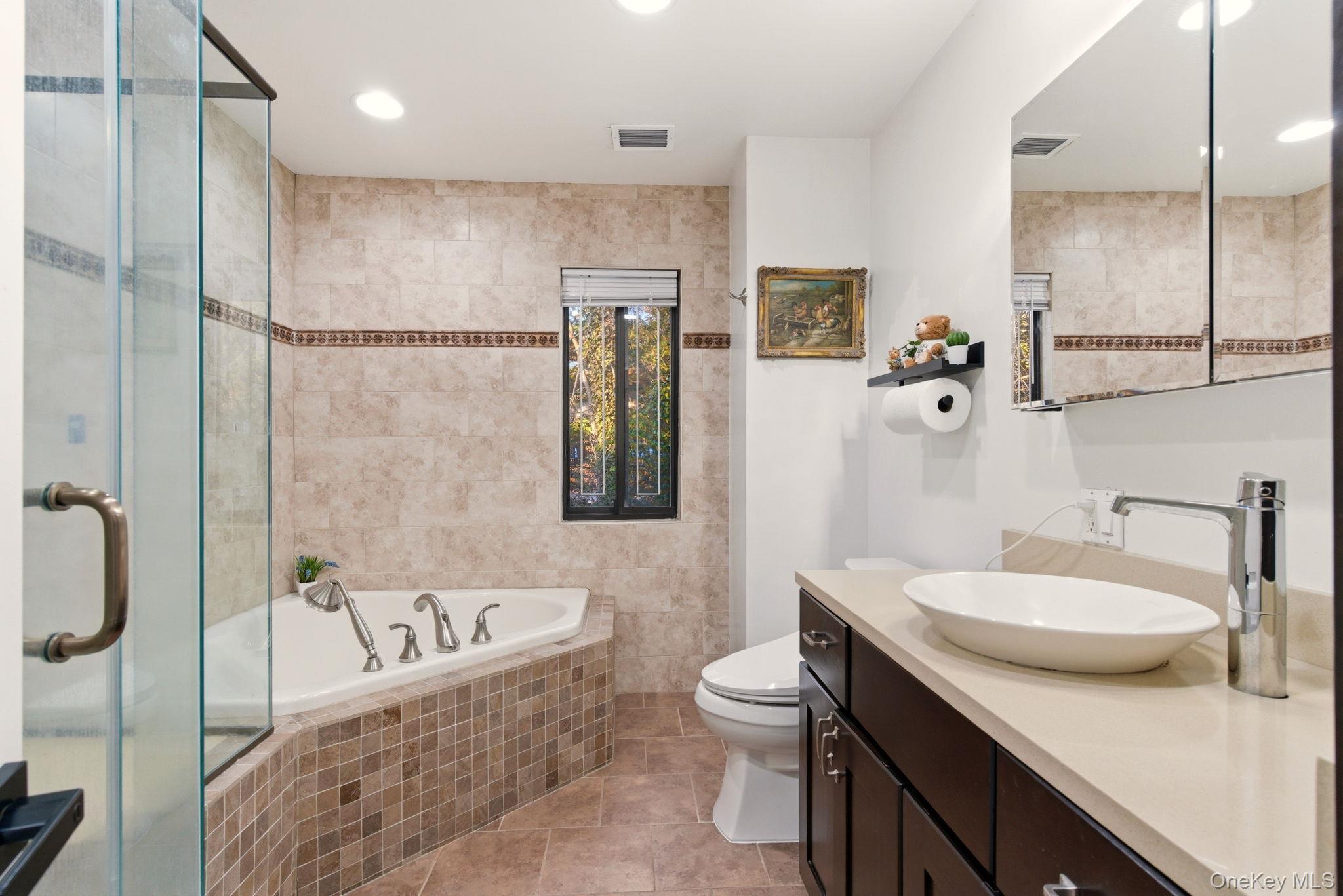 Don’t miss this stunning, recently fully updated and sun-drenched 4-bedroom, 4-bathroom residence located in the highly desirable Jericho community and award-winning Jericho School District. Designed with both comfort and sophistication in mind, the home features a bright, open floor plan and beautifully proportioned living spaces. The designer kitchen showcases custom cabinetry, quality finishes, and a spacious breakfast area that flows seamlessly into the living and dining areas — creating the perfect setting for everyday living and elegant entertaining. The oversized primary suite serves as a private retreat, complete with a spa-inspired bathroom and a generous walk-in closet and tons of build in closets. Three additional bedrooms are well-sized, and all bathrooms have been tastefully renovated with premium materials and modern finishes. The fully finished basement offers brand-new flooring, high-hat lighting, excellent ceiling height, and a private en-suite, making it ideal for an additional bedroom or guest quarters. This versatile level is perfect for a home gym, office, recreation lounge, or customized living area. A wood-burning fireplace and built-in wet bar elevate the space, while a dedicated exhaust system vents directly to the exterior for added functionality. From exterior to interior, virtually everything has been updated within the past two years, offering true turnkey peace of mind. Conveniently located just minutes from premier shopping, dining, and the renowned Gold Coast amenities — with the LIRR less than one mile away — this home delivers both luxury and accessibility. Situated within a gated community featuring 24-hour security, a clubhouse, swimming pool, and tennis courts, residents enjoy a refined lifestyle with comfort, privacy, and convenience.