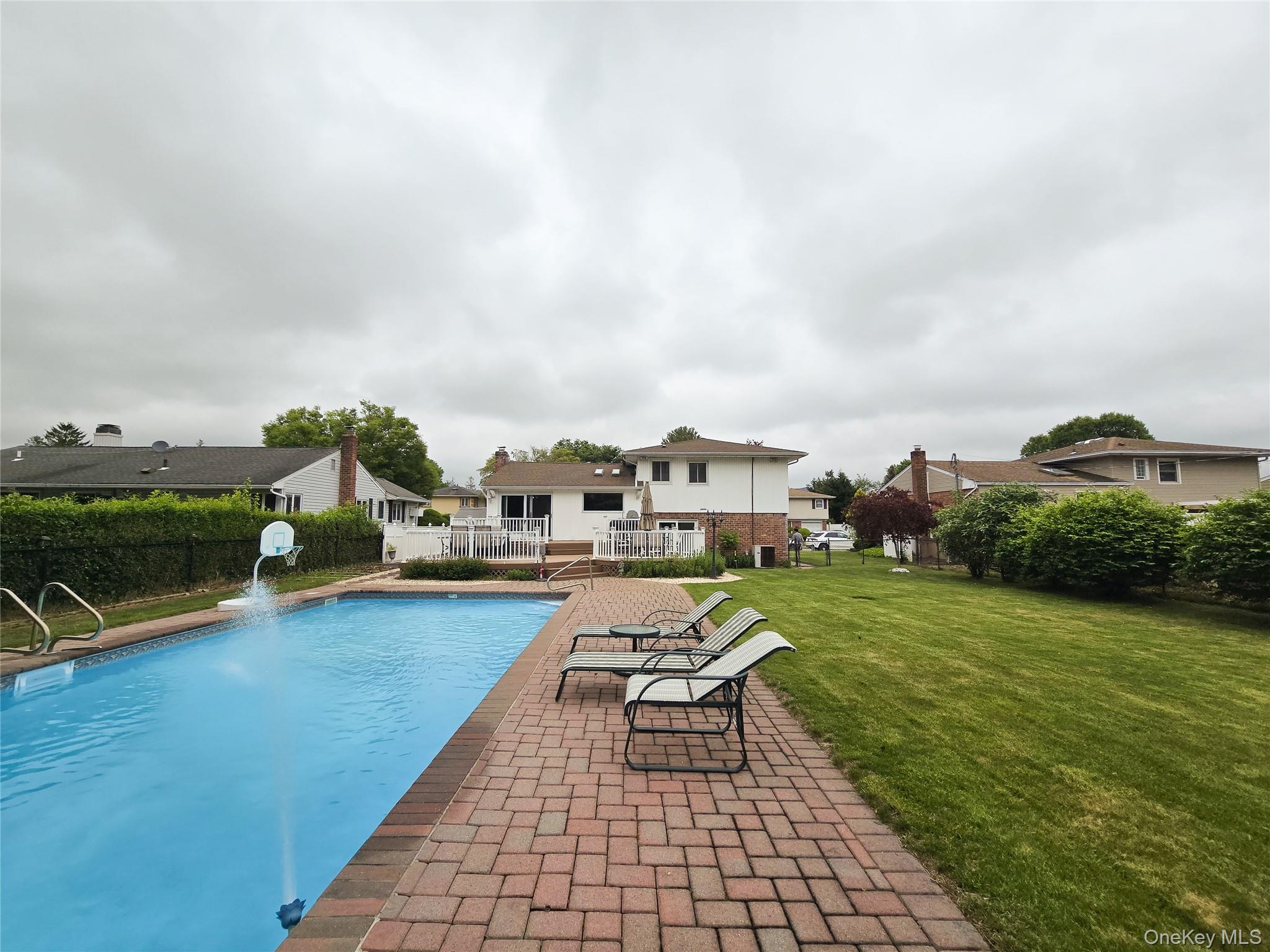 Well-maintained 4 bedroom, 2 bath one-family home offering comfort, space, and thoughtful features throughout. The house has a beautiful backyard with a salt water swimming pool and a large patio that is perfect for outdoor dining and lounging. The backyard also includes lots of grass, making the house especially ideal for those who enjoy spending time outdoors. The outdoor space provides a wonderful setting for relaxing and entertaining. It is located in the Syosset School District, which has great academic, arts, and athletic programs adding to the home’s overall appeal. Inside, all tile flooring is heated, creating a warm and comfortable living environment year-round. The home is filled with ample natural light, enhancing the spacious feel of the interior, and features generous bedroom sizes that provide plenty of room for rest, work, or study. The kitchen includes two skylights that bring in additional natural light, creating a bright and welcoming atmosphere. 10-minutes to the LIRR station, the home offers convenient access to transportation while still maintaining a peaceful residential setting.