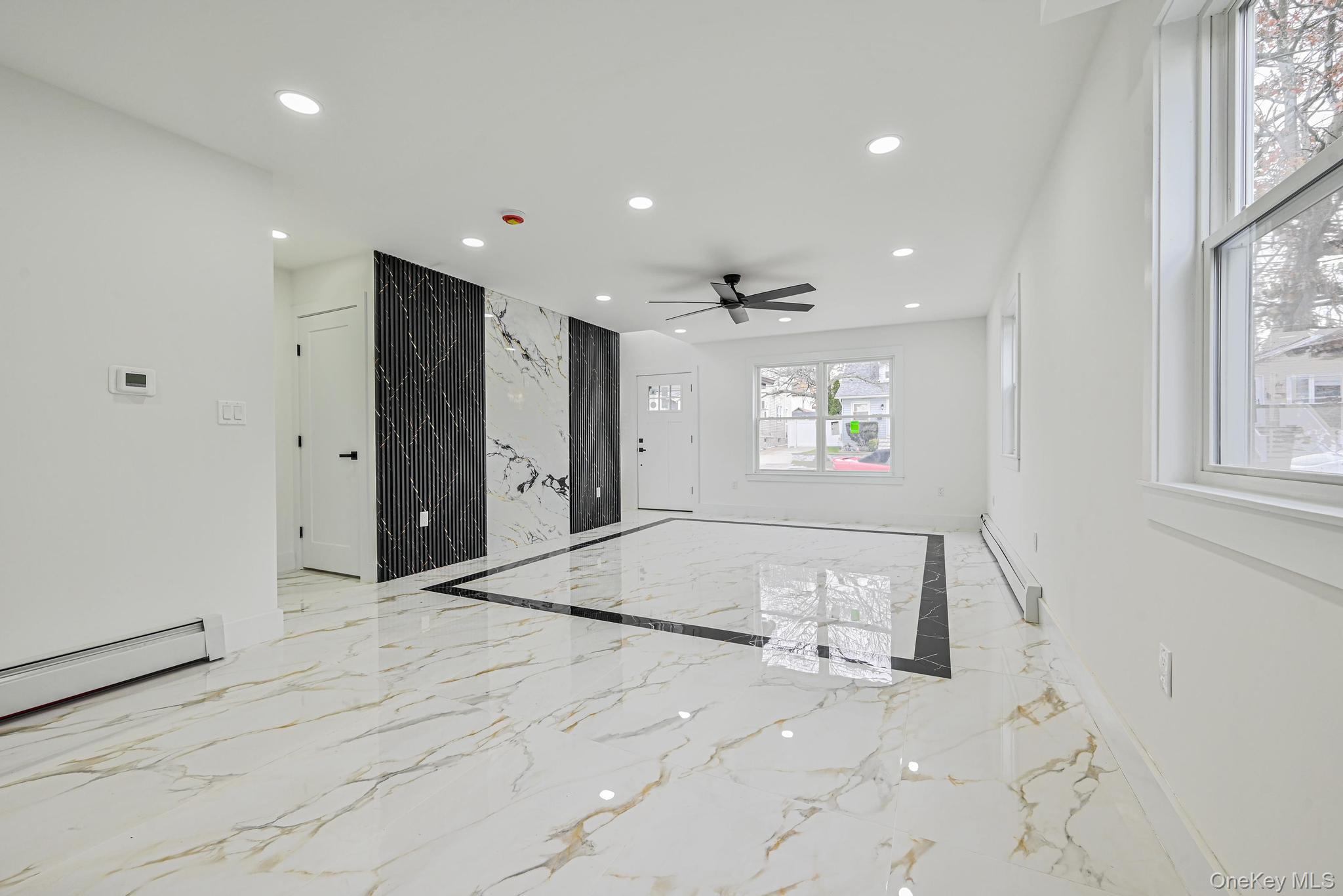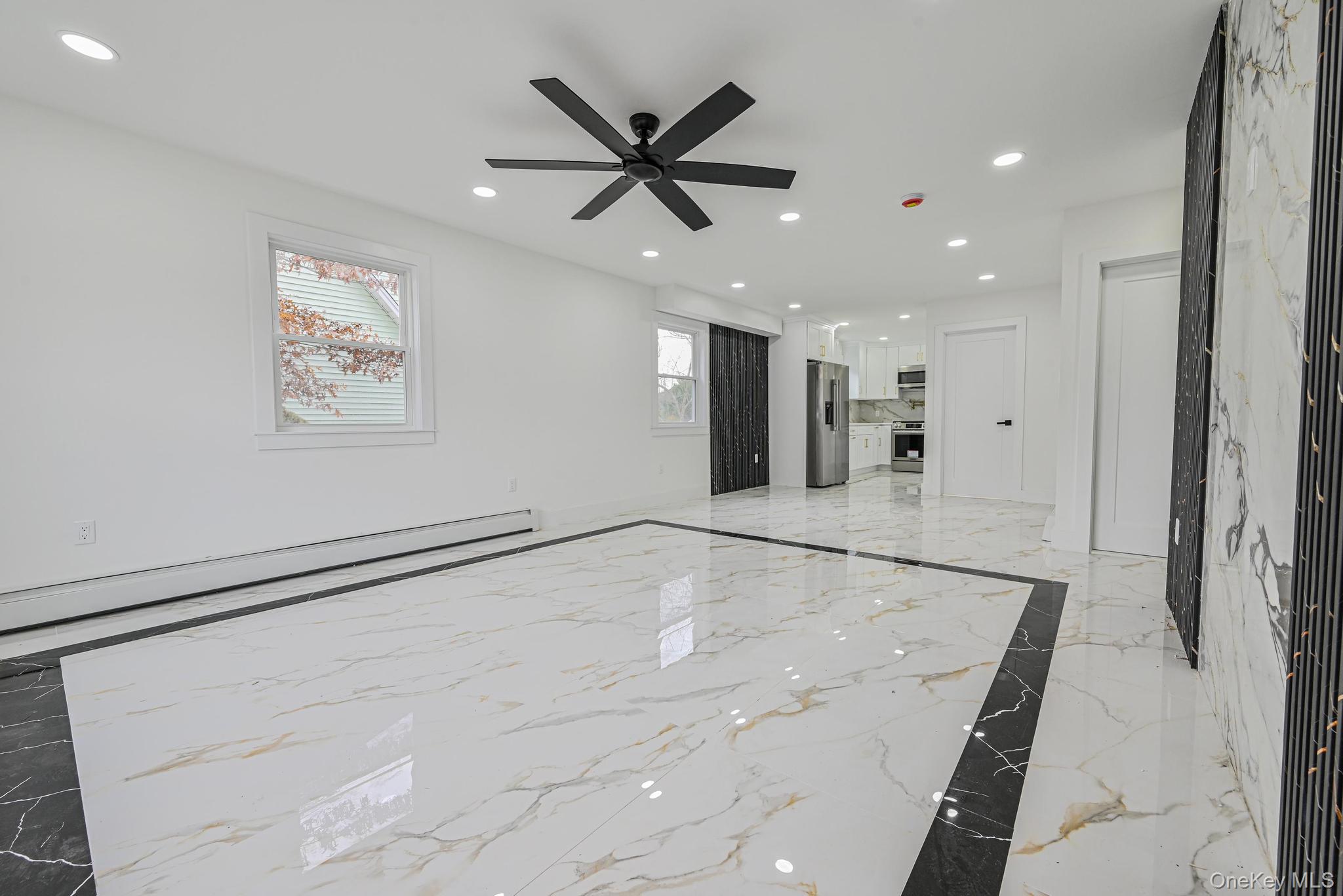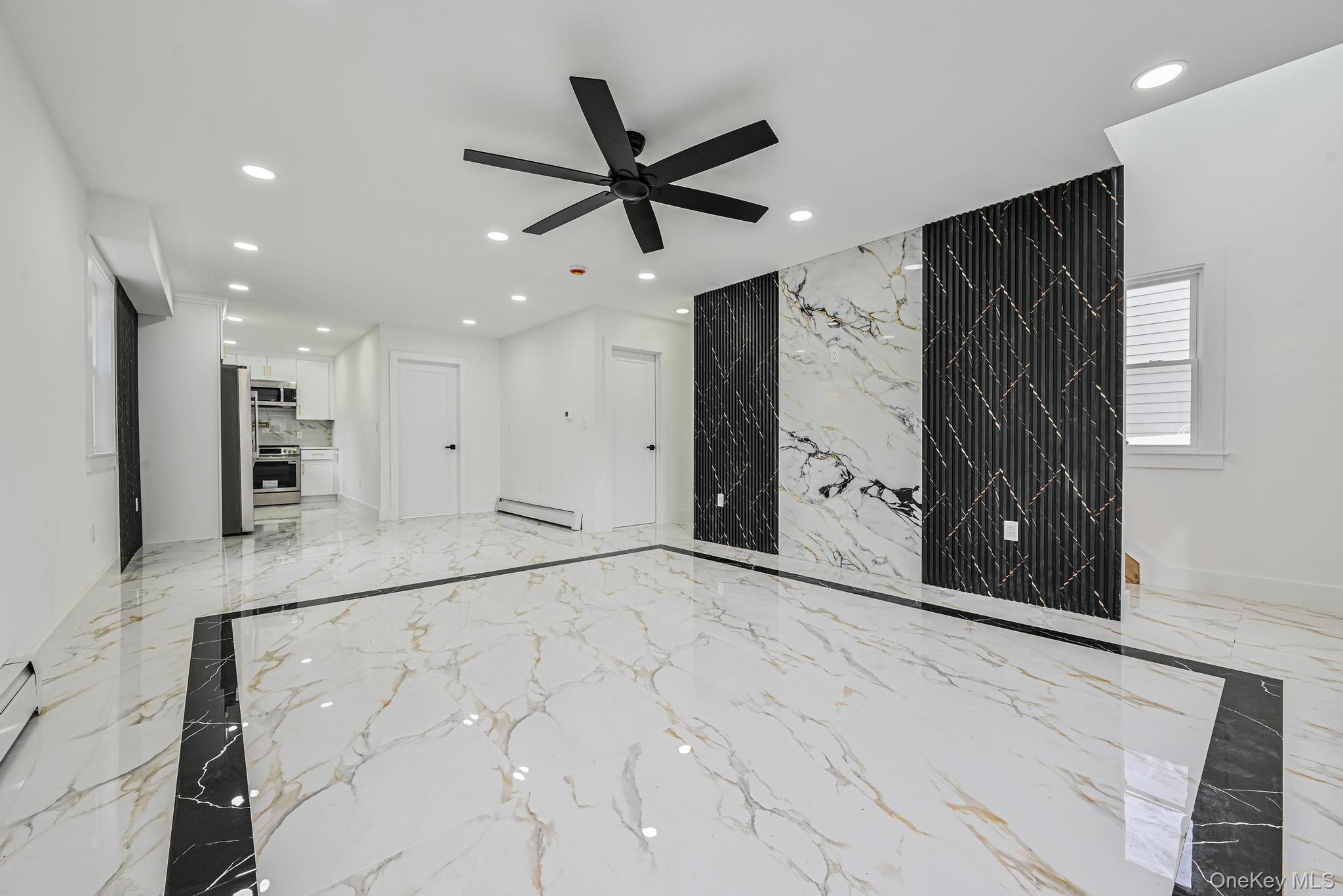 Welcome to 44 Catherine Avenue, a beautifully fully renovated home in the heart of Franklin Square that effortlessly combines modern luxury with thoughtful design. This bright, open-concept residence features sleek porcelain marble-style flooring, recessed LED lighting, and elegant designer accents throughout, creating a refined and inviting atmosphere. The stunning chef’s kitchen showcases crisp white shaker cabinetry, premium stainless steel appliances, stylish gold hardware, and striking marble-inspired countertops and backsplash, while the spa-like bathroom offers floor-to-ceiling stone tile, a frameless glass shower with rainfall head, matte black fixtures, and a modern illuminated mirror. Sun-filled bedrooms provide comfort and tranquility with wide-plank flooring, clean lines, and generous closet space. Completing the home is exceptional curb appeal with an updated facade, extended private driveway, detached garage, and a spacious fenced backyard perfect for entertaining or relaxing. Move-in ready and ideally located in one of Franklin Square’s most desirable neighborhoods, this is a rare opportunity to own a truly turnkey home.