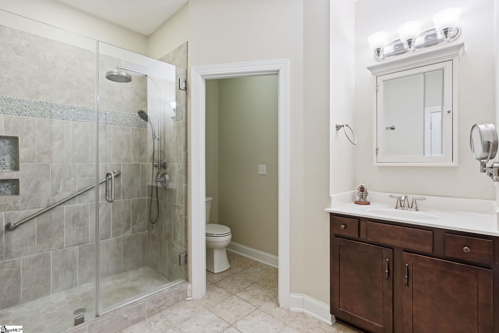 Located near Smithfield's Country Club, this thoughtfully designed Easley home offers the ideal blend of functionality, comfort, and entertaining space, all within an easy drive to downtown Easley and Greenville. The main level features two bedrooms, including a spacious primary suite, providing flexibility for guests or a dedicated home office. Upstairs, a third bedroom and bonus room create the perfect private retreat, media space, or playroom. Soaring ceilings and an open floor plan enhance the sense of space, while a formal dining room adds definition and sophistication, making this home equally suited for everyday living and hosting friends. Lovely hardwood floors anchor the main living areas, and the seamless flow between kitchen and living spaces makes gathering effortless. Outdoor living is equally inviting, with a covered front porch ideal for morning coffee or evening conversations, and a rear deck offering space to relax or entertain. Set in a great walking neighborhood, this home encourages an active, connected lifestyle. With proximity to golf, shopping, dining, and major commuter routes, this Easley home delivers the layout today's buyers want paired with the lifestyle they'll love.