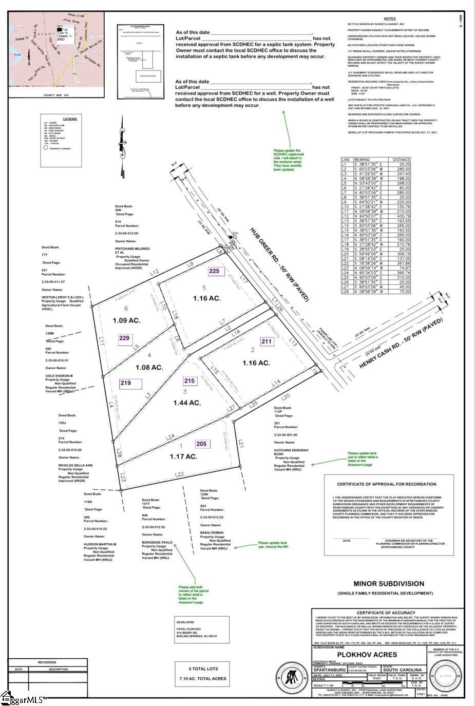 Discover an exceptional opportunity in the charming town of Chesnee — six spacious, already-subdivided lots totaling 7. 10 acres, each over an acre in size, offered together as a complete package. With more than 400 feet of road frontage and beautiful open land that has been fully surveyed, percolation tested, and prepared for construction, this property is truly build-ready. This rare offering provides outstanding flexibility: Ideal for a family compound, with room for multiple dream homes; Perfect for an investor or builder, with six individual lots ready for immediate development. Public water is available at the street, and the land’s gentle topography makes building straightforward. Large, ready-to-build parcels of this size and quality are increasingly hard to find—especially with no HOA and in such a peaceful, small-town setting. Whether you’re envisioning a private retreat or a thoughtfully planned mini-community, this property delivers the space, convenience, and potential you’ve been searching for. All that’s left is for the new owner to bring their vision to life.