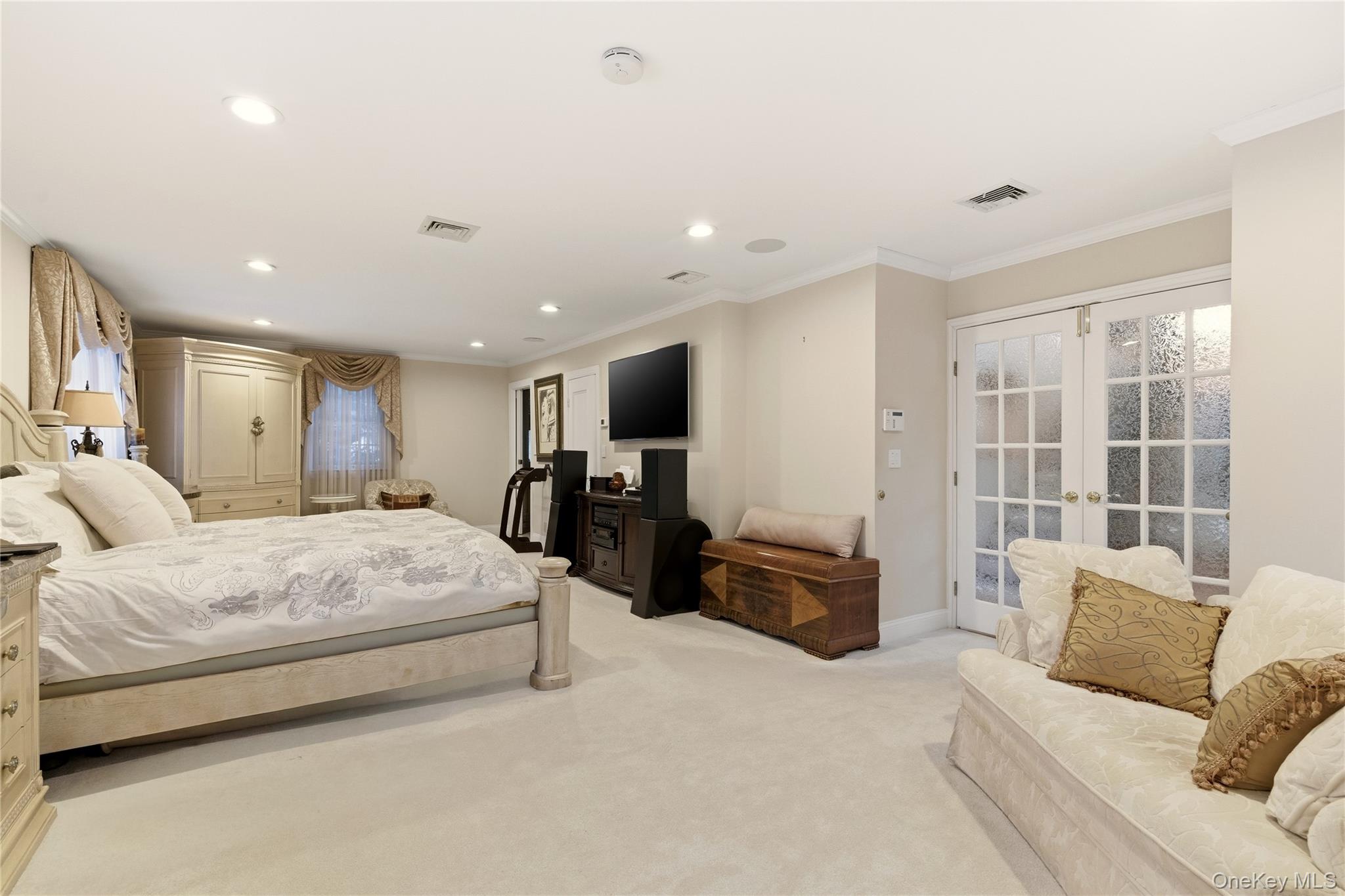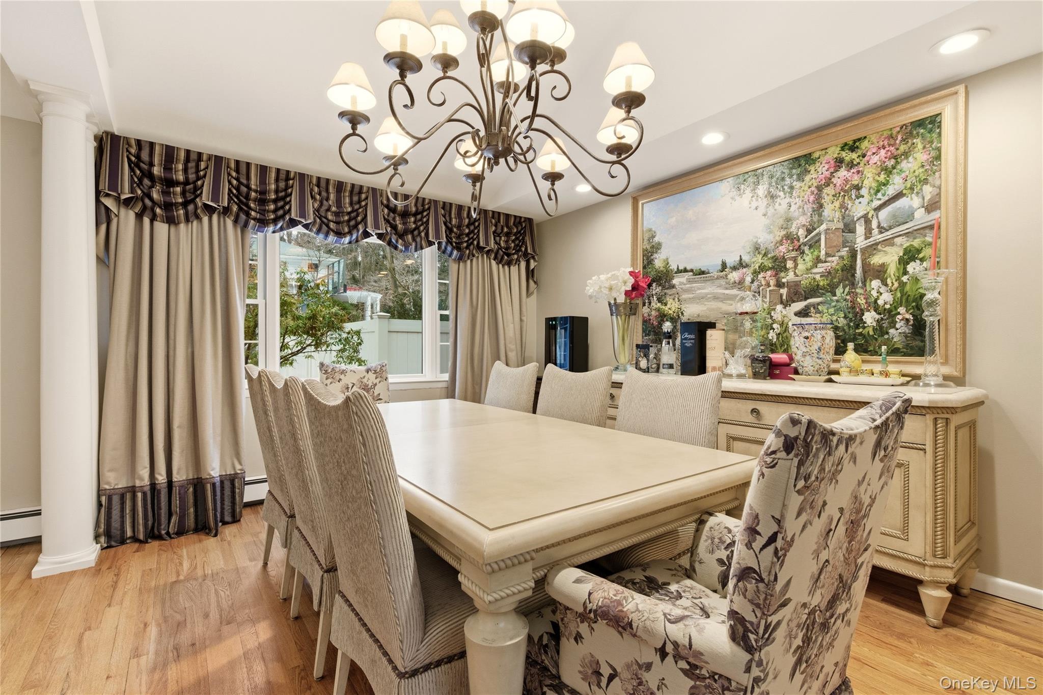 UPPER BROOKVILLE. Privately set behind sweeping lawns on over two acres in the Village of Upper Brookville, this elegant North Shore residence offers the privacy, scale, and timeless character synonymous with Gold Coast estate living. The home features 4 bedrooms, with primary suite on the main, and 3 full and 2 half baths, along with sun-filled living spaces, hardwood and tiled (radiant heated) floors, where seen, and classic architectural details throughout. A gracious entry leads to beautifully proportioned interiors designed for both everyday comfort and sophisticated entertaining. The formal living room with fireplace flows seamlessly into the dining room and adjoining sun room, creating an inviting setting for gatherings large or small. At the heart of the home, the chef’s kitchen features custom cabinetry, stone countertops, and a generous center island, opening naturally to the main living areas. The first-floor primary suite provides a private retreat complete with a walk in closet and a beautifully appointed bath with soaking tub and oversized shower. Additional bedroom/library on the first floor offers the perfect space for a home office or quiet relaxation. The second level includes additional bedrooms and bath, while the finished lower level offers exceptional entertaining amenities including a home theater, wine cellar, and bar/kitchenette. Outdoors, the property features expansive lawns and patios, mature landscaping, koi pond, fire pit, and an inground heated Gunite pool with detached guest/pool house (featuring full bath, kitchenette, living room with fireplace, and rec area), and 2 outdoor BBQ spaces, creating an ideal setting for summer entertaining and weekend gatherings. Conveniently located to world-class golf courses, equestrian estates, yacht clubs, and the charming villages of Locust Valley, Roslyn, and Manhasset, with Manhattan just a short commute away. A rare opportunity to enjoy refined estate living in the heart of Upper Brookville. Additional features: whole house generator, exterior lighting throughout, built in speakers throughout interior and exterior, 2 car attached heated garage, cul-de-sac location, and more.