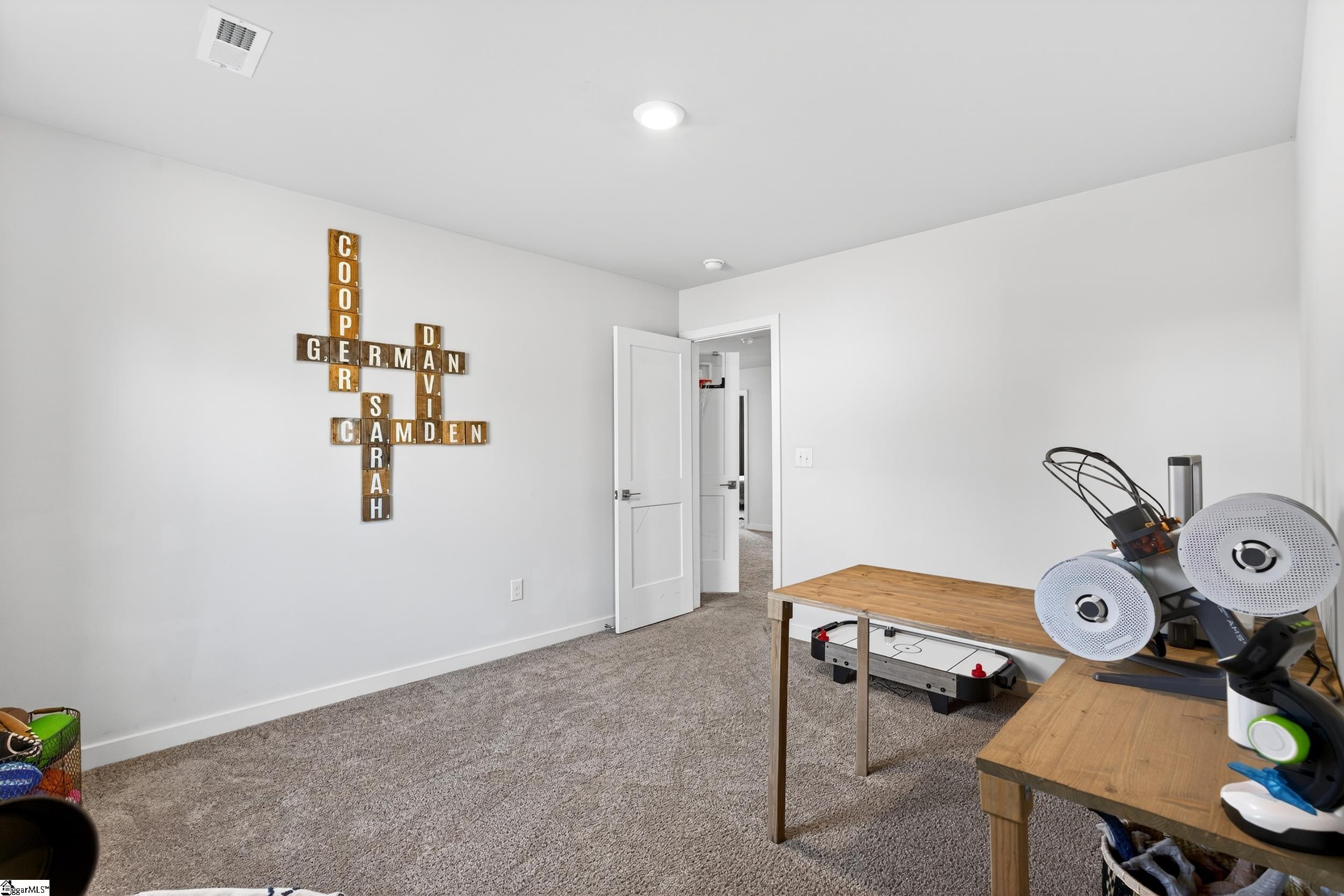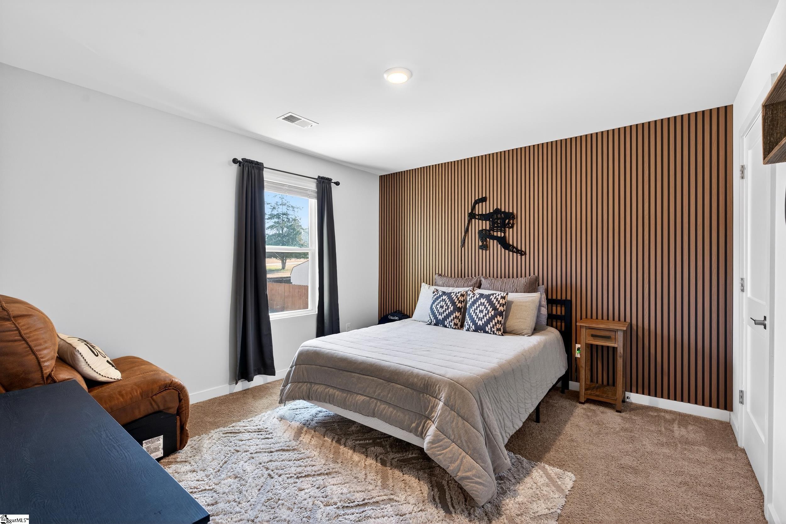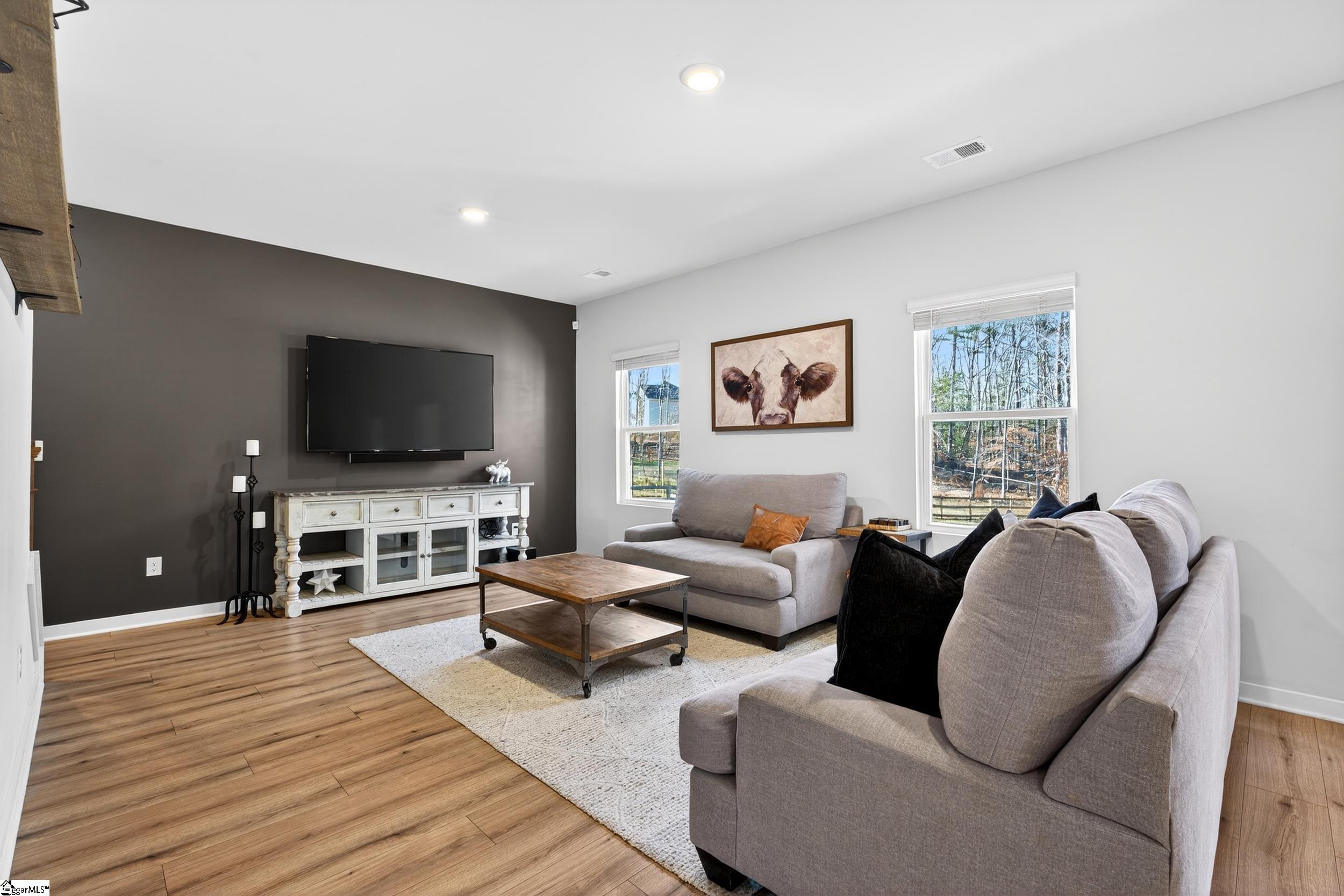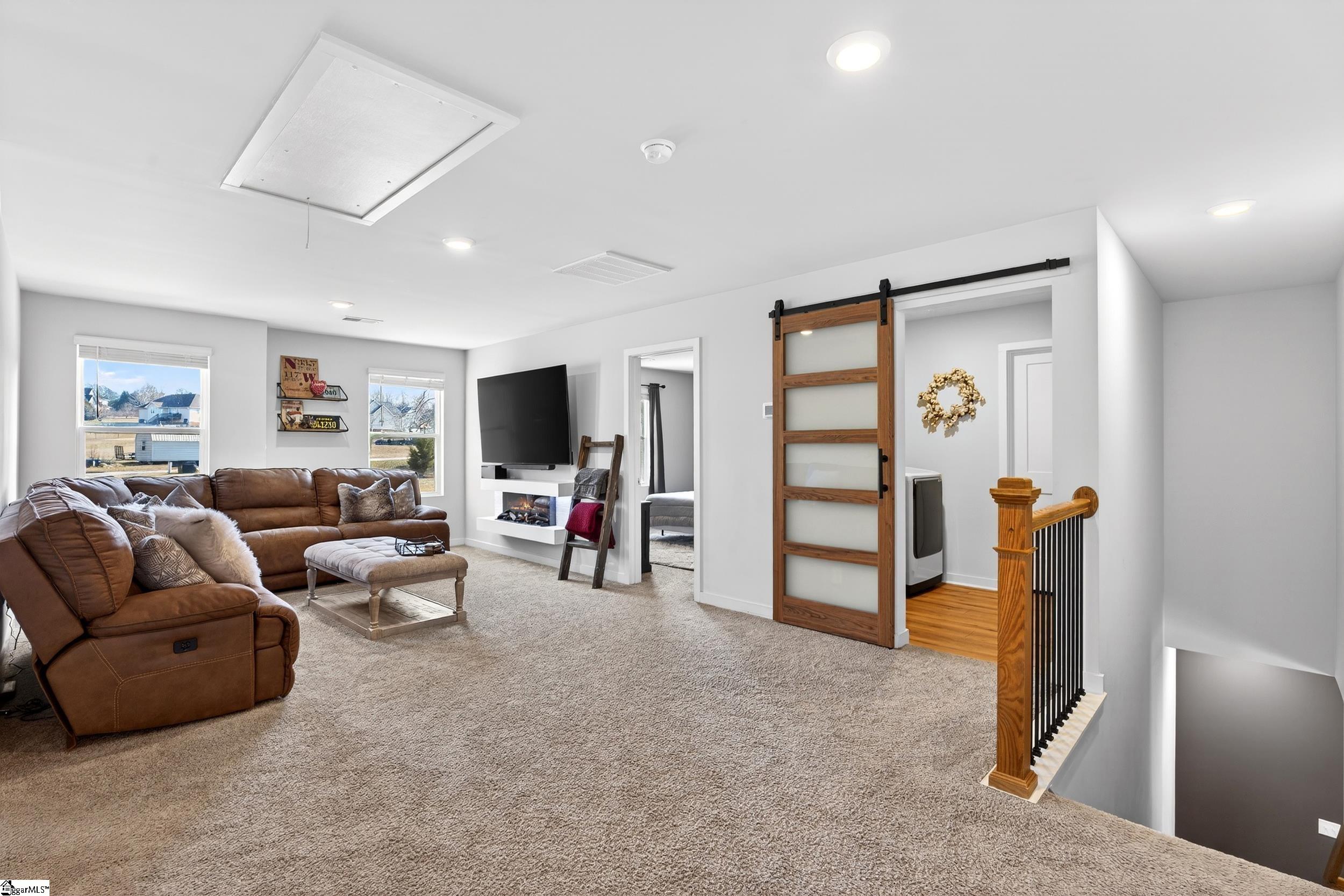 Set on over 4 acres in a neighborhood with no HOA, this 5-bedroom home offers a rare mix of open yard space, wooded privacy, and room to spread out. The homesite features a large front and backyard ideal for everyday living and entertaining, while wooded acreage behind the home leads to the North Tyger River at the rear of the property. A trail winds through the trees down toward the water where you’ll find a peaceful, private area with beautiful rock formations — perfect for relaxing, exploring, or a quiet picnic. The trail is wide enough for a side-by-side, while still allowing you to enjoy the natural beauty of your own wooded setting if you prefer to walk and take it all in. A welcoming covered front porch and detached workshop/garage add both charm and function, offering space for storage, hobbies, or equipment. Inside, the open floorplan feels bright and comfortable with 9-foot ceilings on the main level and durable flooring throughout. The living and dining areas flow easily into the spacious kitchen, where a hand-selected, one-of-a-kind countertop anchors the space and adds character you won’t find in a standard build. The kitchen also features white cabinetry, an oversized island with seating, stainless appliances, double wall ovens, and a walk-in pantry. One bedroom and full bath are located on the main level, offering flexibility for guests, office space, or multi-generational living. Upstairs, you’ll find additional bedrooms, a second living space with loft area, and a comfortable owner’s suite featuring a spacious bath with dual shower heads. Over 4 acres with open yard, wooded trails, North Tyger River frontage, and no HOA — all within a neighborhood setting.