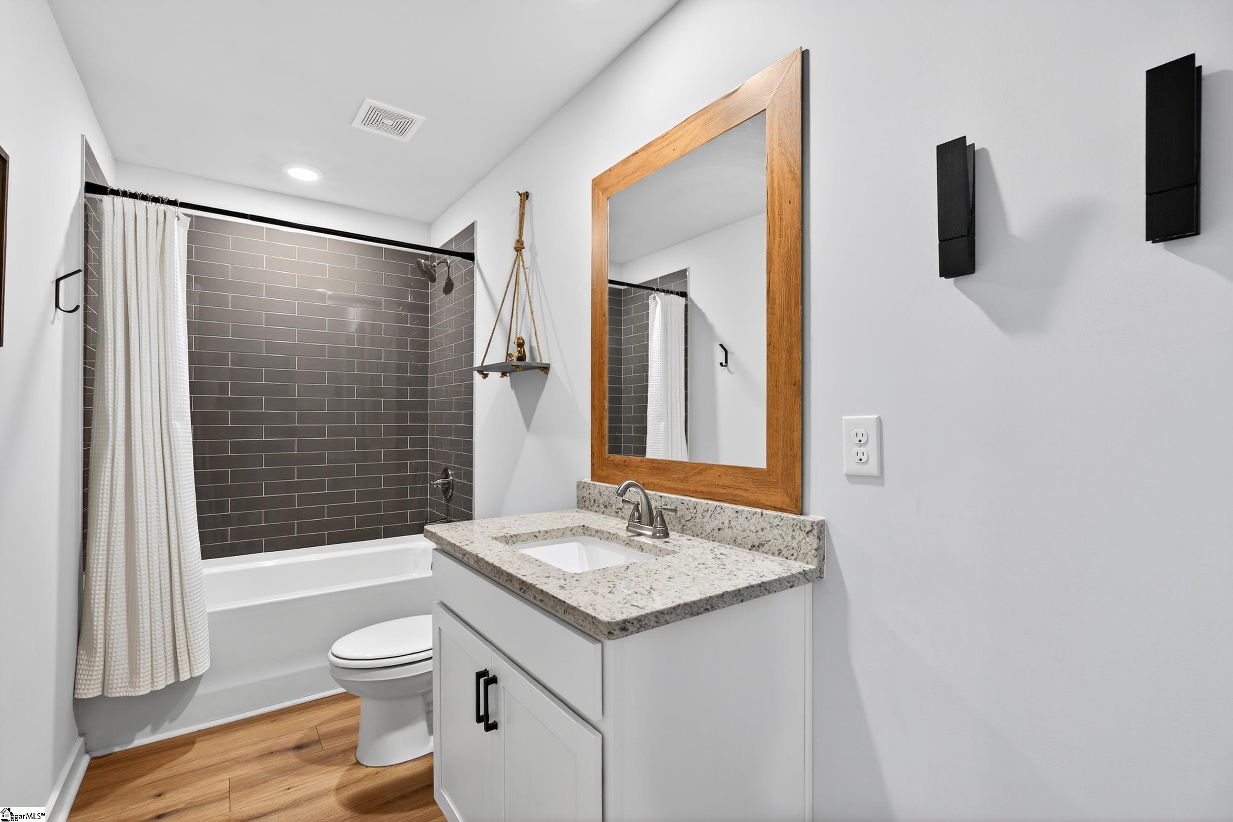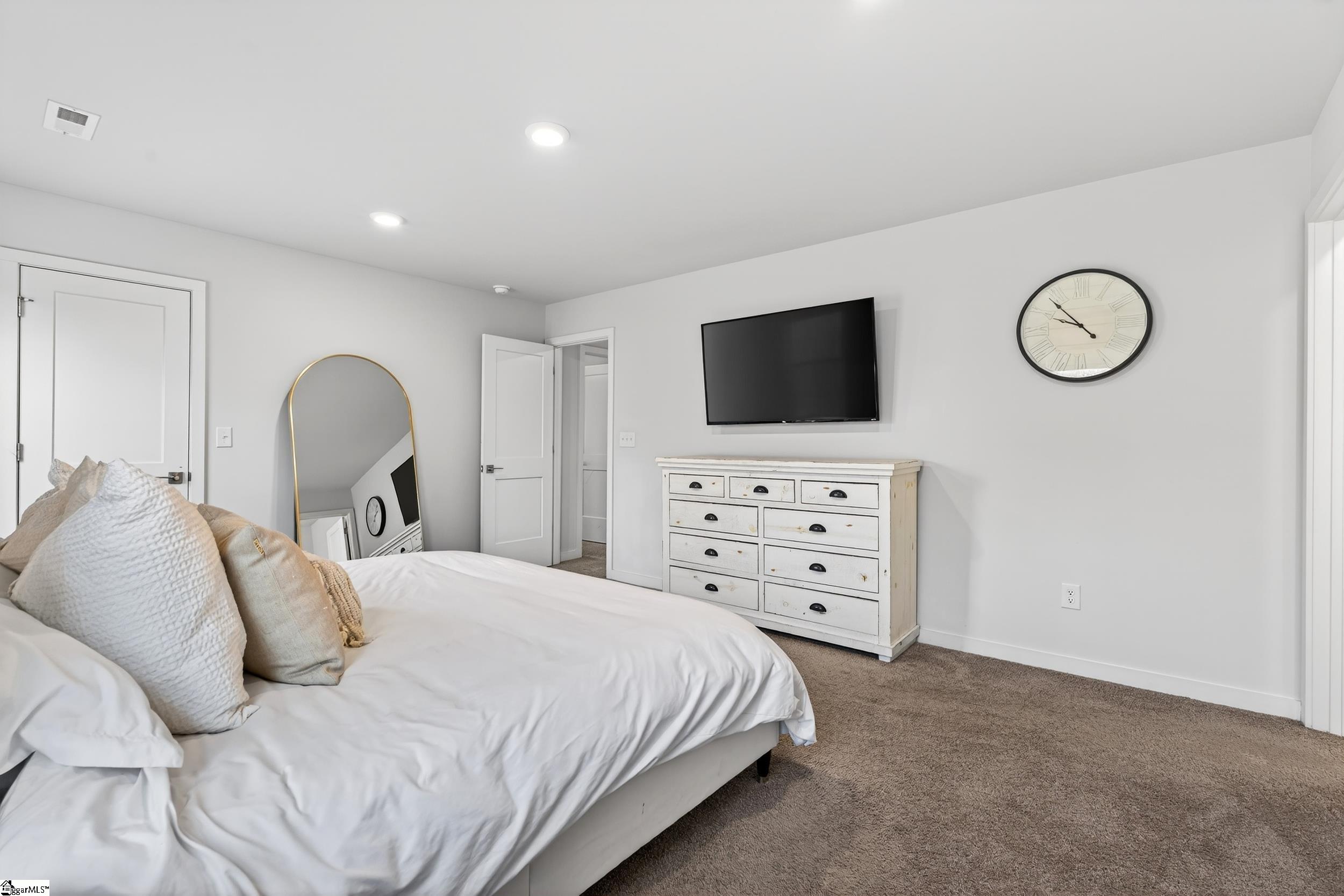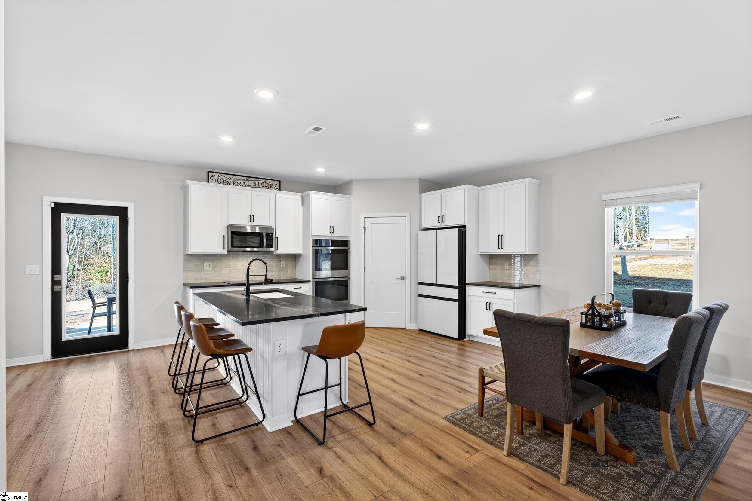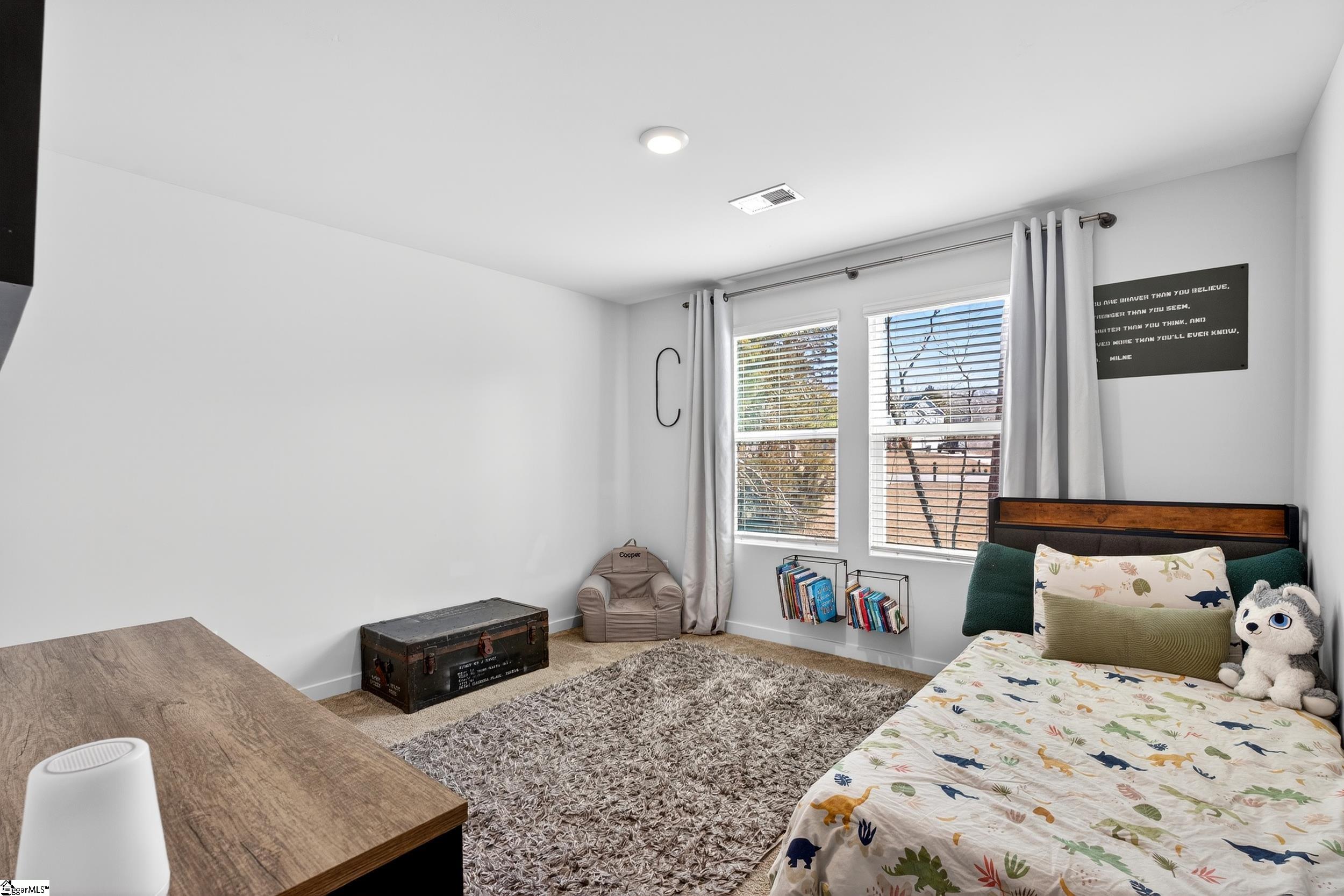Set on over 4 acres in a neighborhood with no HOA, this 5-bedroom home offers a rare mix of open yard space, wooded privacy, and room to spread out. The homesite features a large front and backyard ideal for everyday living and entertaining, while wooded acreage behind the home leads to the North Tyger River at the rear of the property. A trail winds through the trees down toward the water where you’ll find a peaceful, private area with beautiful rock formations — perfect for relaxing, exploring, or a quiet picnic. The trail is wide enough for a side-by-side, while still allowing you to enjoy the natural beauty of your own wooded setting if you prefer to walk and take it all in. A welcoming covered front porch and detached workshop/garage add both charm and function, offering space for storage, hobbies, or equipment. Inside, the open floorplan feels bright and comfortable with 9-foot ceilings on the main level and durable flooring throughout. The living and dining areas flow easily into the spacious kitchen, where a hand-selected, one-of-a-kind countertop anchors the space and adds character you won’t find in a standard build. The kitchen also features white cabinetry, an oversized island with seating, stainless appliances, double wall ovens, and a walk-in pantry. One bedroom and full bath are located on the main level, offering flexibility for guests, office space, or multi-generational living. Upstairs, you’ll find additional bedrooms, a second living space with loft area, and a comfortable owner’s suite featuring a spacious bath with dual shower heads. Over 4 acres with open yard, wooded trails, North Tyger River frontage, and no HOA — all within a neighborhood setting.