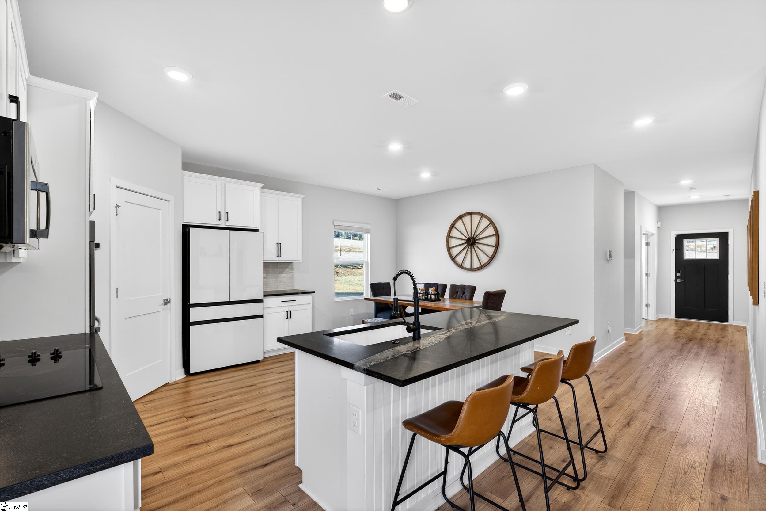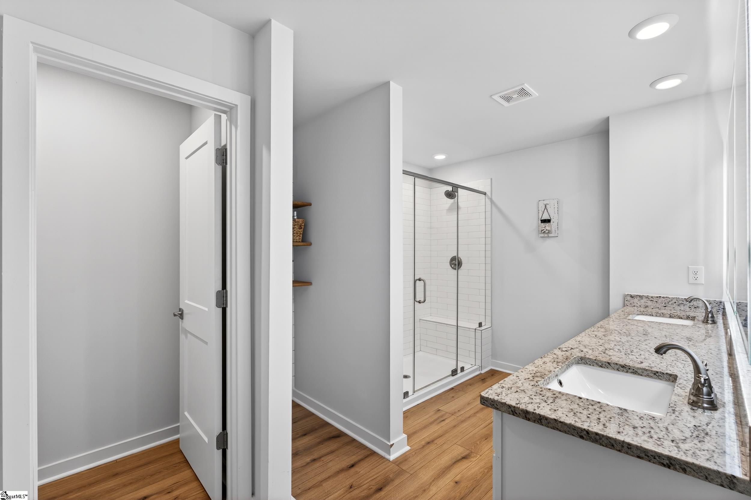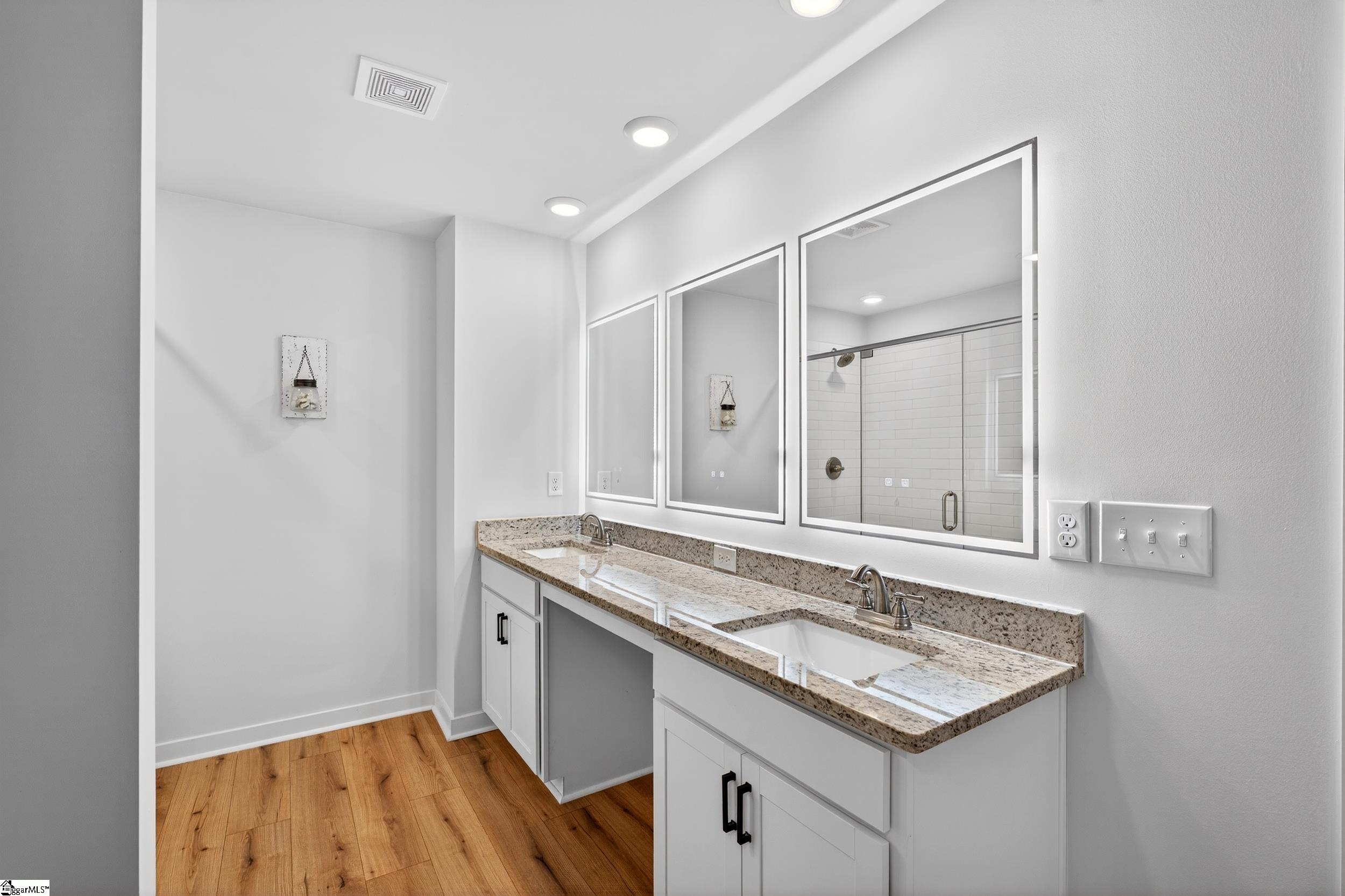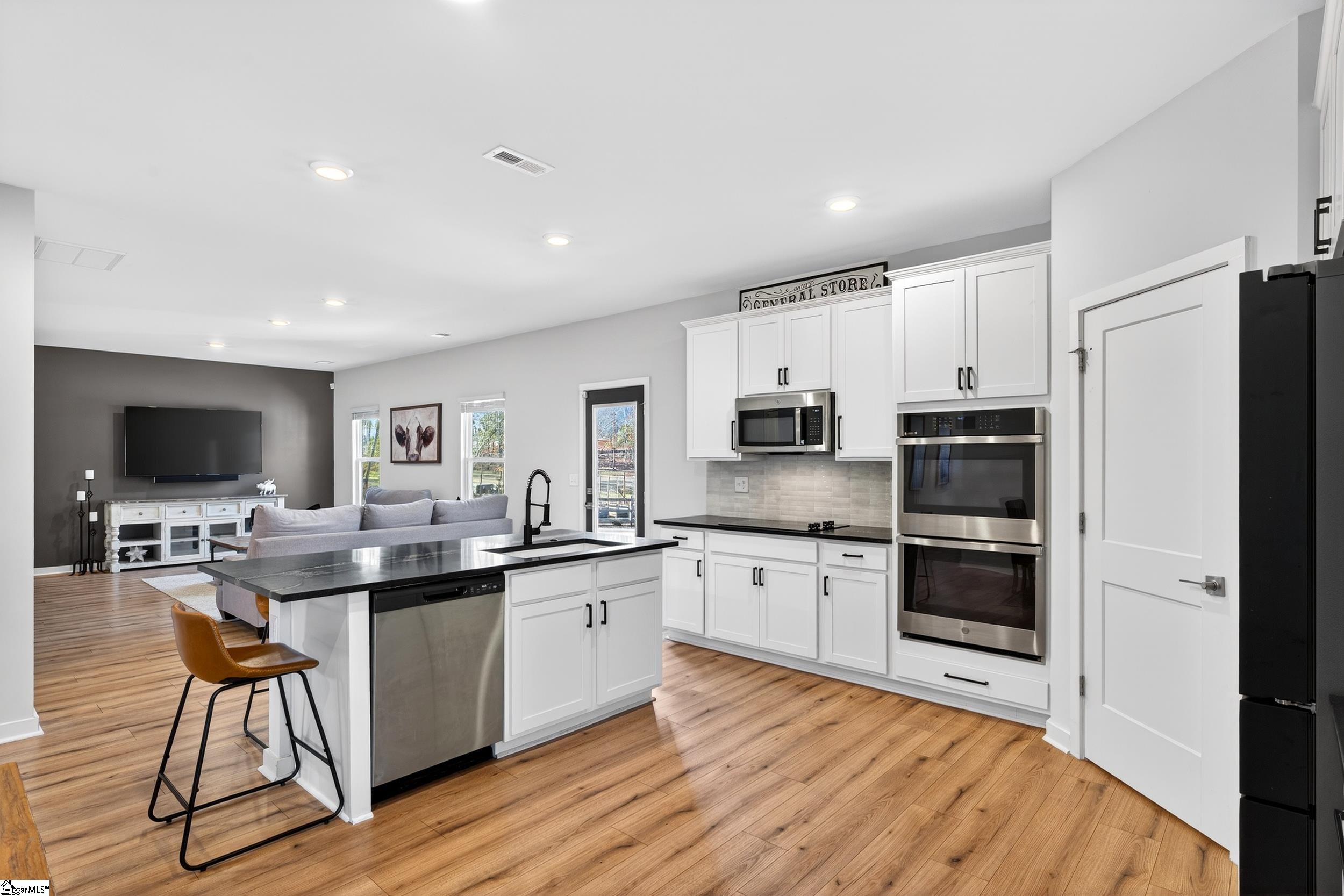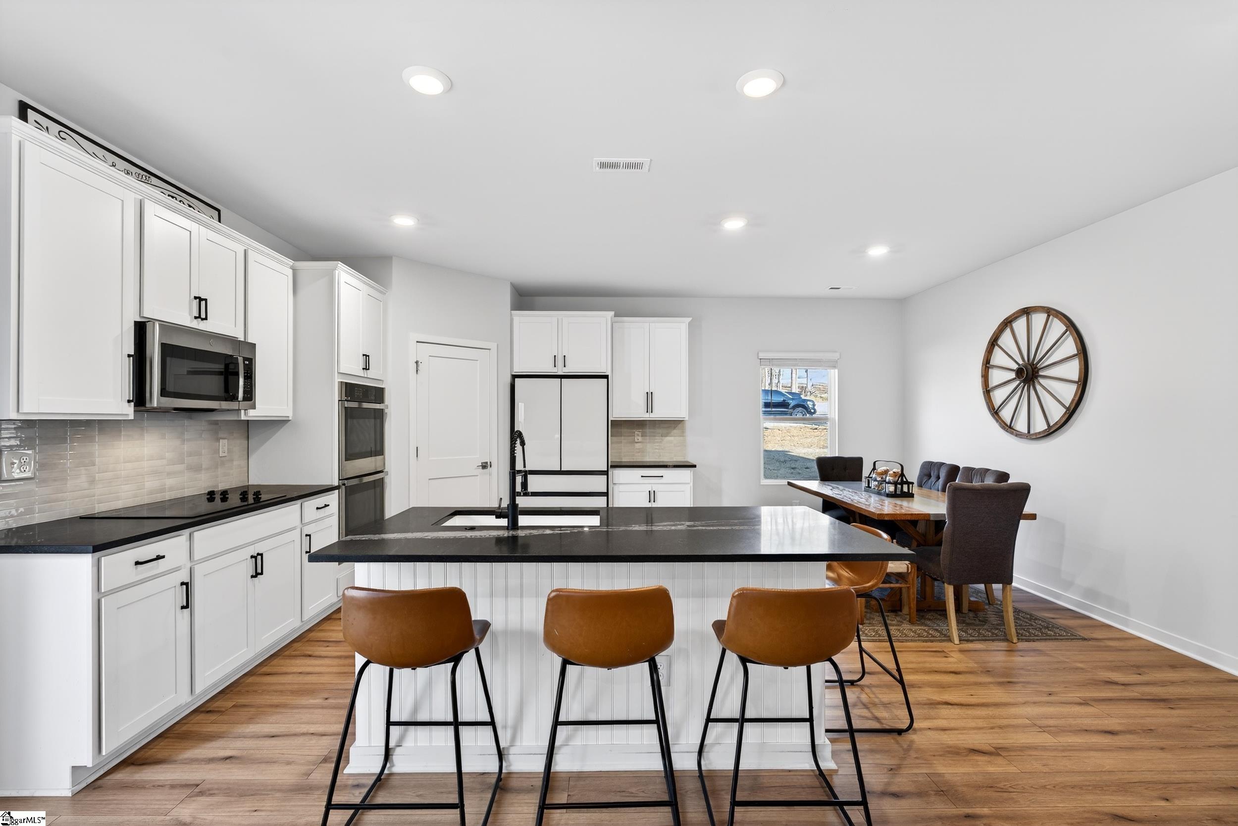 Set on over 4 acres in a neighborhood with no HOA, this 5-bedroom home offers a rare mix of open yard space, wooded privacy, and room to spread out. The homesite features a large front and backyard ideal for everyday living and entertaining, while wooded acreage behind the home leads to the North Tyger River at the rear of the property. A trail winds through the trees down toward the water where you’ll find a peaceful, private area with beautiful rock formations — perfect for relaxing, exploring, or a quiet picnic. The trail is wide enough for a side-by-side, while still allowing you to enjoy the natural beauty of your own wooded setting if you prefer to walk and take it all in. A welcoming covered front porch and detached workshop/garage add both charm and function, offering space for storage, hobbies, or equipment. Inside, the open floorplan feels bright and comfortable with 9-foot ceilings on the main level and durable flooring throughout. The living and dining areas flow easily into the spacious kitchen, where a hand-selected, one-of-a-kind countertop anchors the space and adds character you won’t find in a standard build. The kitchen also features white cabinetry, an oversized island with seating, stainless appliances, double wall ovens, and a walk-in pantry. One bedroom and full bath are located on the main level, offering flexibility for guests, office space, or multi-generational living. Upstairs, you’ll find additional bedrooms, a second living space with loft area, and a comfortable owner’s suite featuring a spacious bath with dual shower heads. Over 4 acres with open yard, wooded trails, North Tyger River frontage, and no HOA — all within a neighborhood setting.