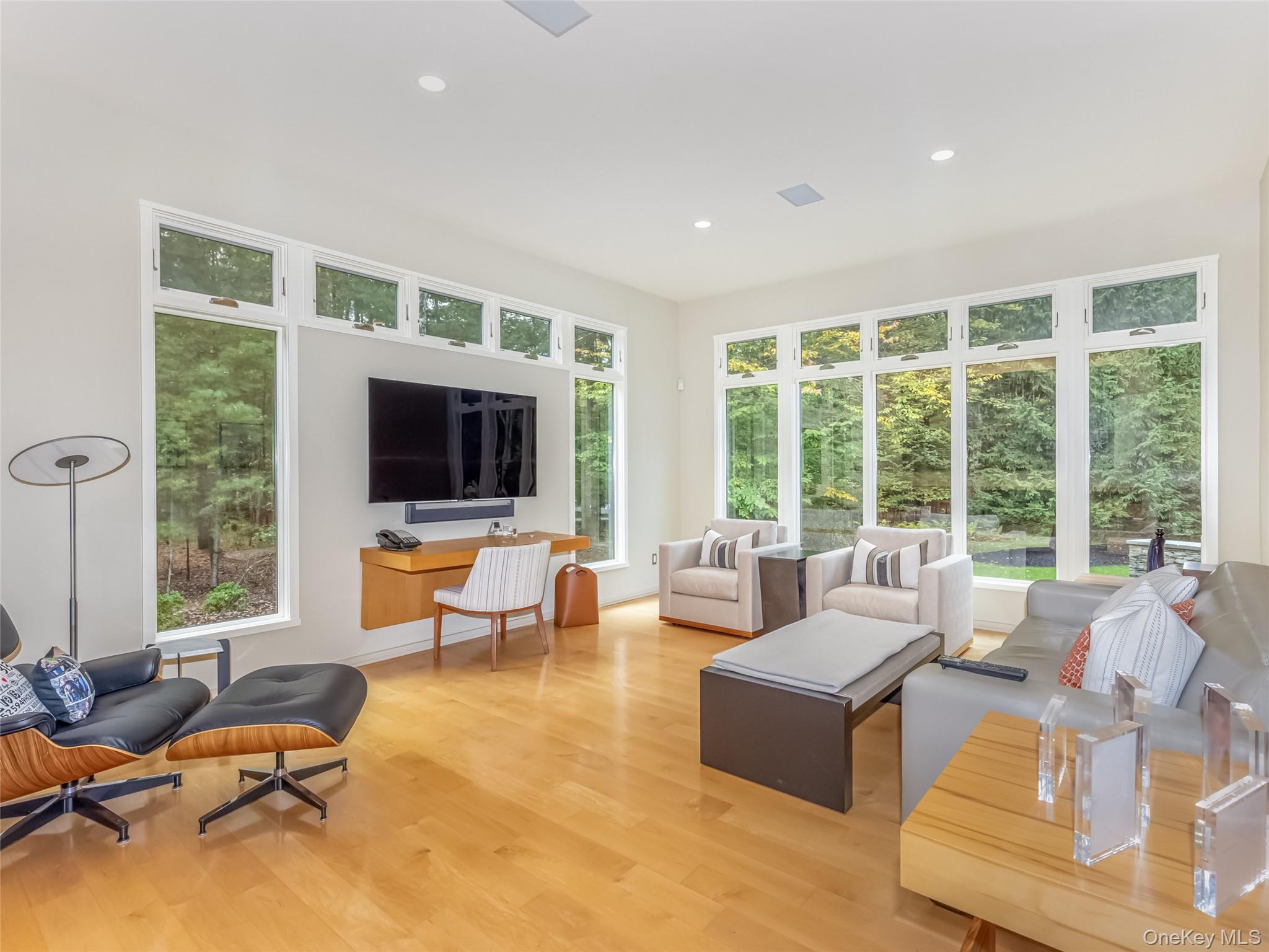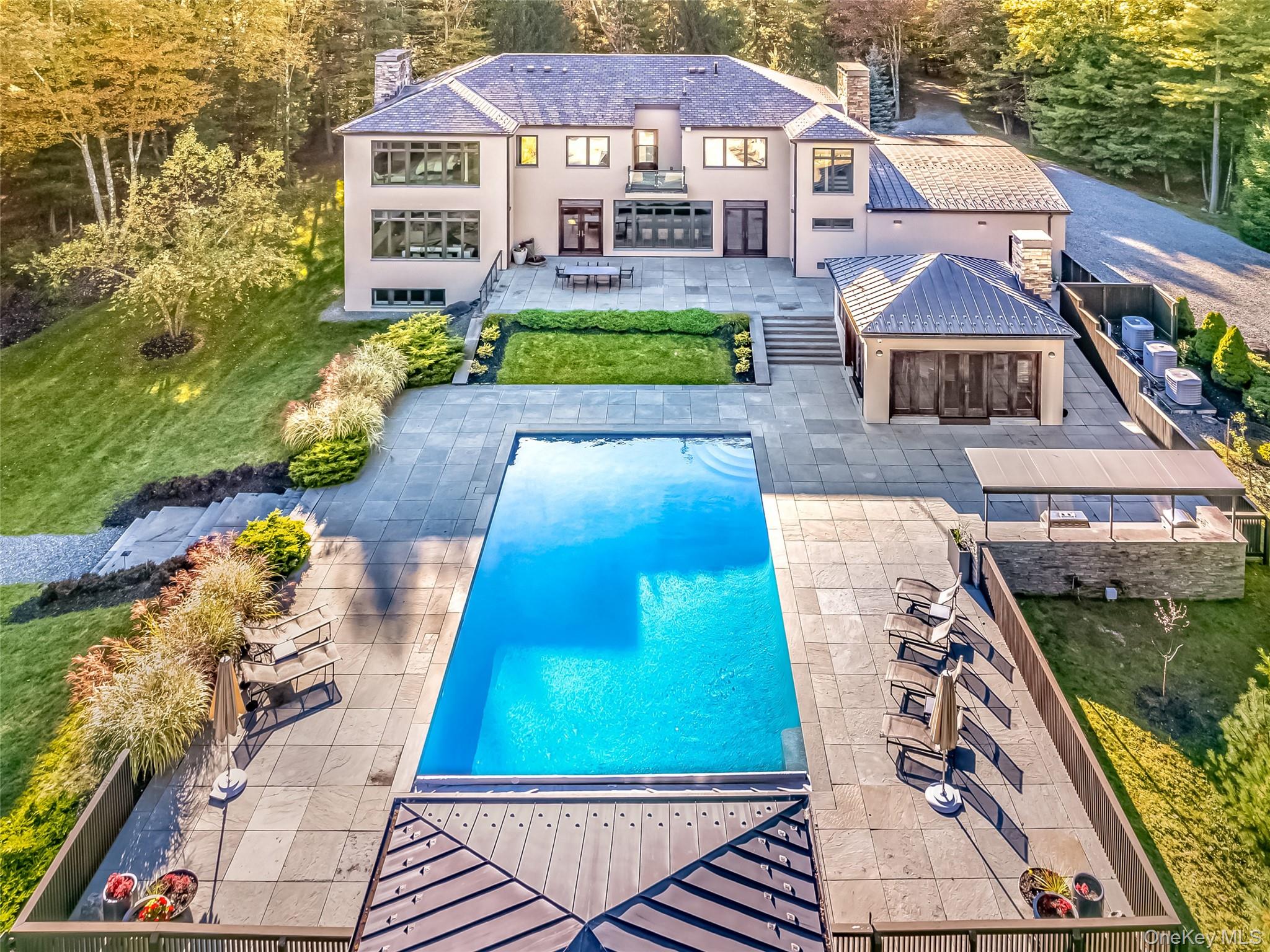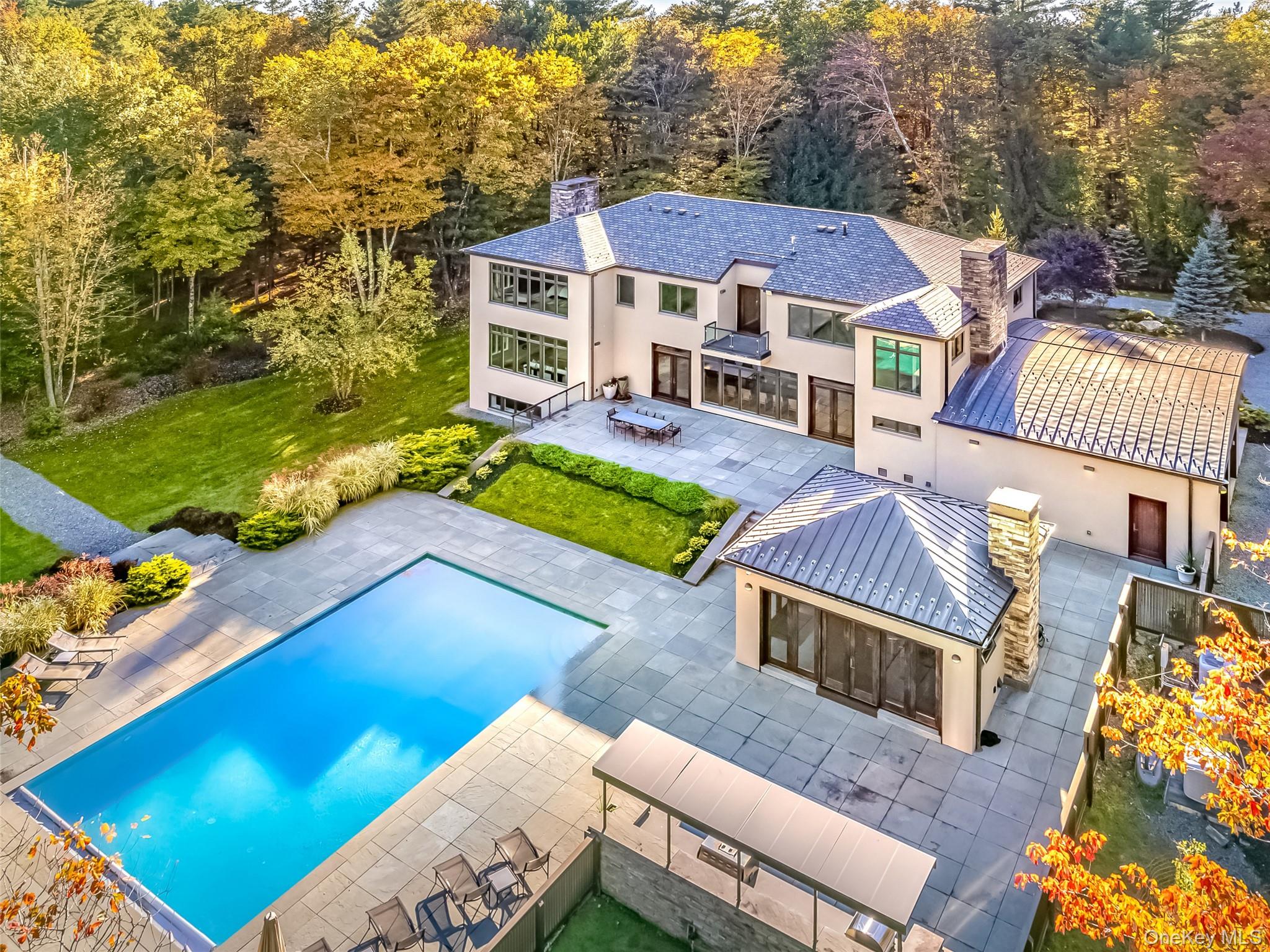 A mere two hours from New York City, The Top Ridge Retreat offers a rare combination of modern elegance, natural beauty, and complete privacy within the exclusive 2, 500-acre gated community of The Chapin Estate. Set on more than eleven acres, this contemporary residence delivers a refined lifestyle designed for comfort, sophistication, and seamless indoor-outdoor living. Inside, the layout balances openness with intimacy. The home is offered fully furnished, with carefully curated furniture and artwork included to complement its contemporary design and elevate the overall living experience. The primary suite includes a private sitting area, fireplace, and spa-like bath, creating a true sanctuary. Additional bedrooms are spacious and well-appointed for guests. A sunken living room and library—each with a fireplace—add warmth and architectural interest, while a dedicated gym, massage room, and wellness area enhance the home’s retreat-like atmosphere. Every element of the home has been thoughtfully crafted. With 205 oversized windows, natural light fills each space and creates a continuous connection to the surrounding forest. The expansive chef’s kitchen and dining room overlook the saltwater Gunite pool, pool house, and a fully equipped indoor/outdoor kitchen featuring a fireplace, pizza oven, and dining gazebo—an ideal setting for effortless entertaining. A short stroll from the pool leads to a world-class tennis court with its own cabana, offering resort-level recreation right at home. The residence is built with uncompromising attention to quality. Features include a 12-zone radiant and solar heating system, a 12-ton central air conditioning system, custom cabinetry, and bespoke tile work throughout. From the solid wood doors to the precision-crafted finishes, every detail reflects a commitment to excellence. Life within The Chapin Estate offers unmatched access to nature and amenities. The community spans more than 2, 500 acres of pristine forest and borders an additional 14, 000 acres of protected conservation land. Residents enjoy miles of hiking, biking, and snowshoe trails; freshwater reservoirs and trout streams; concierge services; security patrols; and a members-only Lake Club. From within the community, owners have direct access to both Toronto Reservoir and Swinging Bridge Reservoir, ideal for boating, kayaking, fishing, and quiet days on the water. Just one mile away, the Chatwal Lodge provides elevated dining and hospitality. Located in the hamlet of White Lake, part of historic Bethel—home of the 1969 Woodstock concert—this region is rich with culture and recreation. The Bethel Woods Center for the Arts offers world-class performances and a renowned museum. Nearby, the Monticello Motor Club provides a premier private automotive experience. Farm-to-table dining, boutique cafés, craft breweries, lake activities, skiing, and endless outdoor adventures complete the lifestyle. A true escape from city life, The Top Ridge Retreat delivers privacy, beauty, and resort-style amenities in one of Sullivan County’s most coveted luxury communities. This is contemporary living at its finest—without the stress of the Long Island Expressway.
