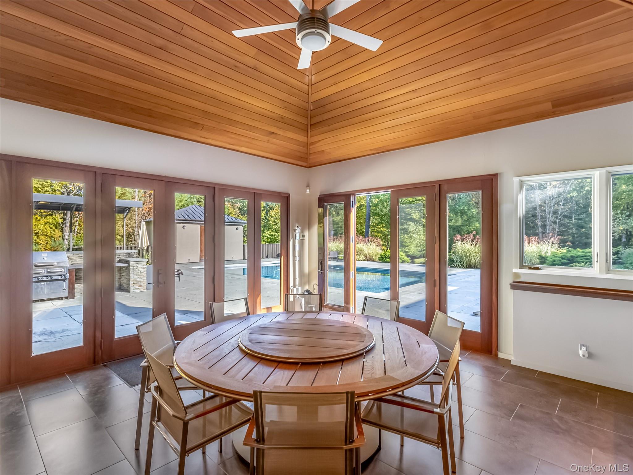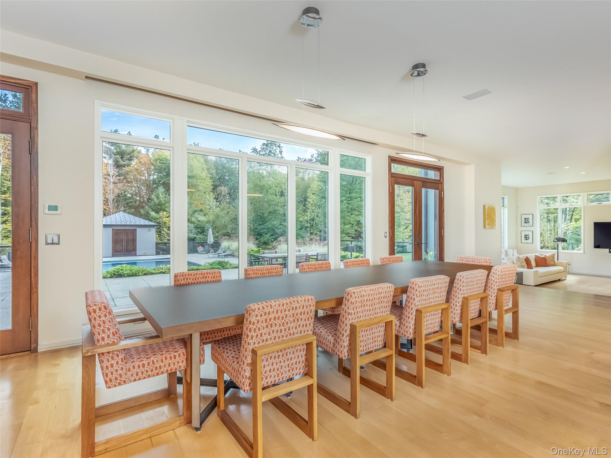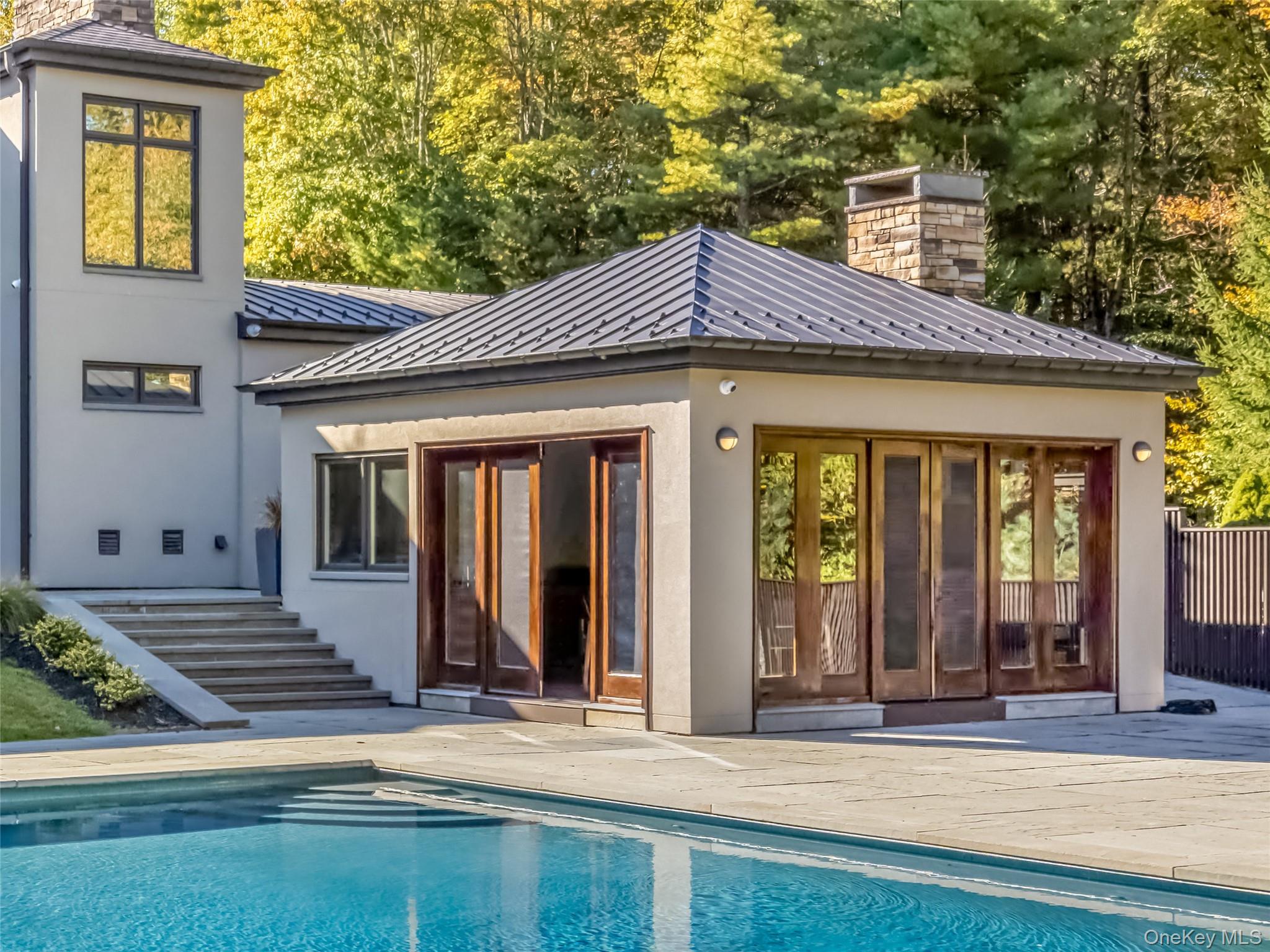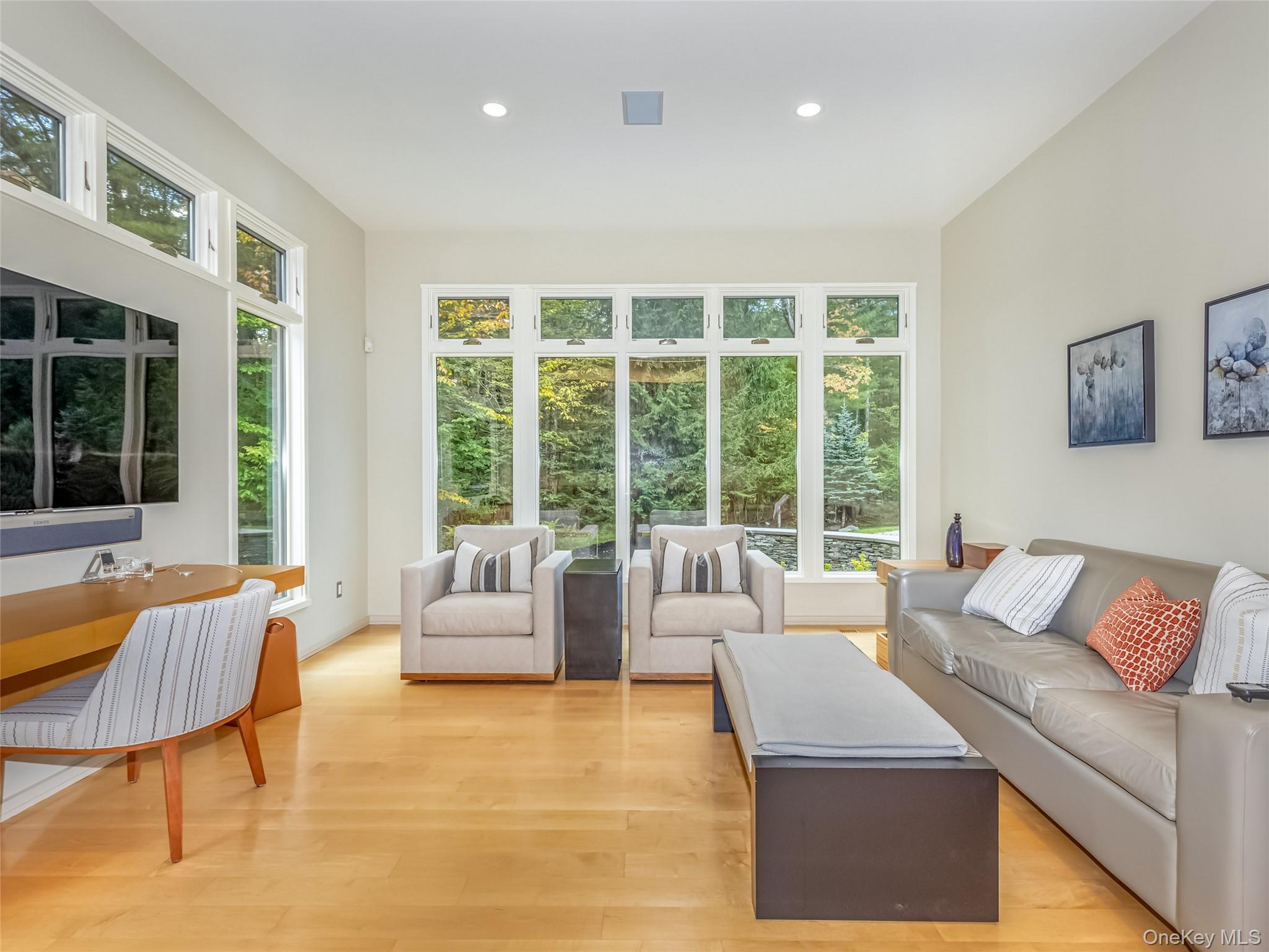 A mere two hours from New York City, The Top Ridge Retreat offers a rare combination of modern elegance, natural beauty, and complete privacy within the exclusive 2, 500-acre gated community of The Chapin Estate. Set on more than eleven acres, this contemporary residence delivers a refined lifestyle designed for comfort, sophistication, and seamless indoor-outdoor living. Inside, the layout balances openness with intimacy. The home is offered fully furnished, with carefully curated furniture and artwork included to complement its contemporary design and elevate the overall living experience. The primary suite includes a private sitting area, fireplace, and spa-like bath, creating a true sanctuary. Additional bedrooms are spacious and well-appointed for guests. A sunken living room and library—each with a fireplace—add warmth and architectural interest, while a dedicated gym, massage room, and wellness area enhance the home’s retreat-like atmosphere. Every element of the home has been thoughtfully crafted. With 205 oversized windows, natural light fills each space and creates a continuous connection to the surrounding forest. The expansive chef’s kitchen and dining room overlook the saltwater Gunite pool, pool house, and a fully equipped indoor/outdoor kitchen featuring a fireplace, pizza oven, and dining gazebo—an ideal setting for effortless entertaining. A short stroll from the pool leads to a world-class tennis court with its own cabana, offering resort-level recreation right at home. The residence is built with uncompromising attention to quality. Features include a 12-zone radiant and solar heating system, a 12-ton central air conditioning system, custom cabinetry, and bespoke tile work throughout. From the solid wood doors to the precision-crafted finishes, every detail reflects a commitment to excellence. Life within The Chapin Estate offers unmatched access to nature and amenities. The community spans more than 2, 500 acres of pristine forest and borders an additional 14, 000 acres of protected conservation land. Residents enjoy miles of hiking, biking, and snowshoe trails; freshwater reservoirs and trout streams; concierge services; security patrols; and a members-only Lake Club. From within the community, owners have direct access to both Toronto Reservoir and Swinging Bridge Reservoir, ideal for boating, kayaking, fishing, and quiet days on the water. Just one mile away, the Chatwal Lodge provides elevated dining and hospitality. Located in the hamlet of White Lake, part of historic Bethel—home of the 1969 Woodstock concert—this region is rich with culture and recreation. The Bethel Woods Center for the Arts offers world-class performances and a renowned museum. Nearby, the Monticello Motor Club provides a premier private automotive experience. Farm-to-table dining, boutique cafés, craft breweries, lake activities, skiing, and endless outdoor adventures complete the lifestyle. A true escape from city life, The Top Ridge Retreat delivers privacy, beauty, and resort-style amenities in one of Sullivan County’s most coveted luxury communities. This is contemporary living at its finest—without the stress of the Long Island Expressway.