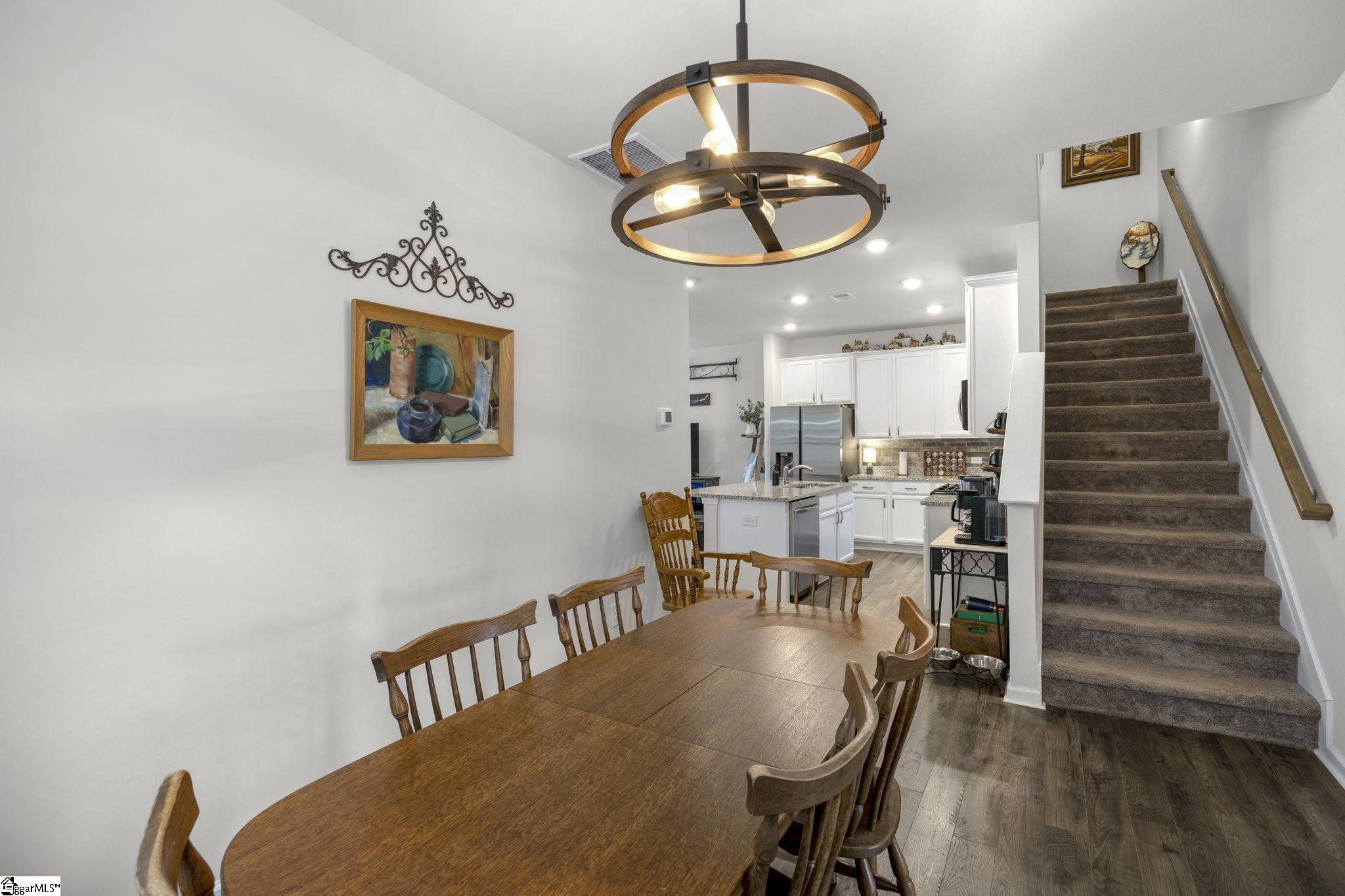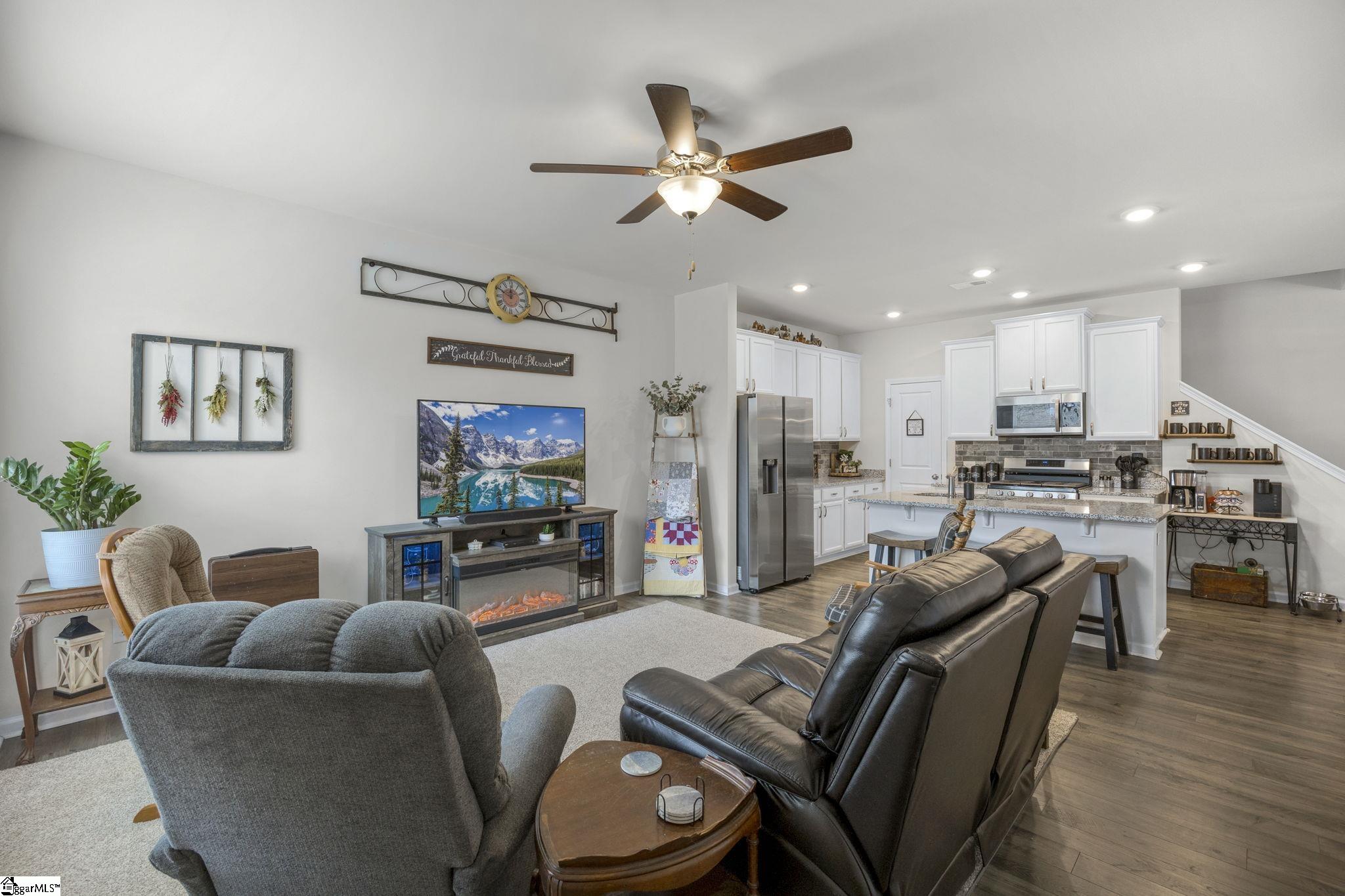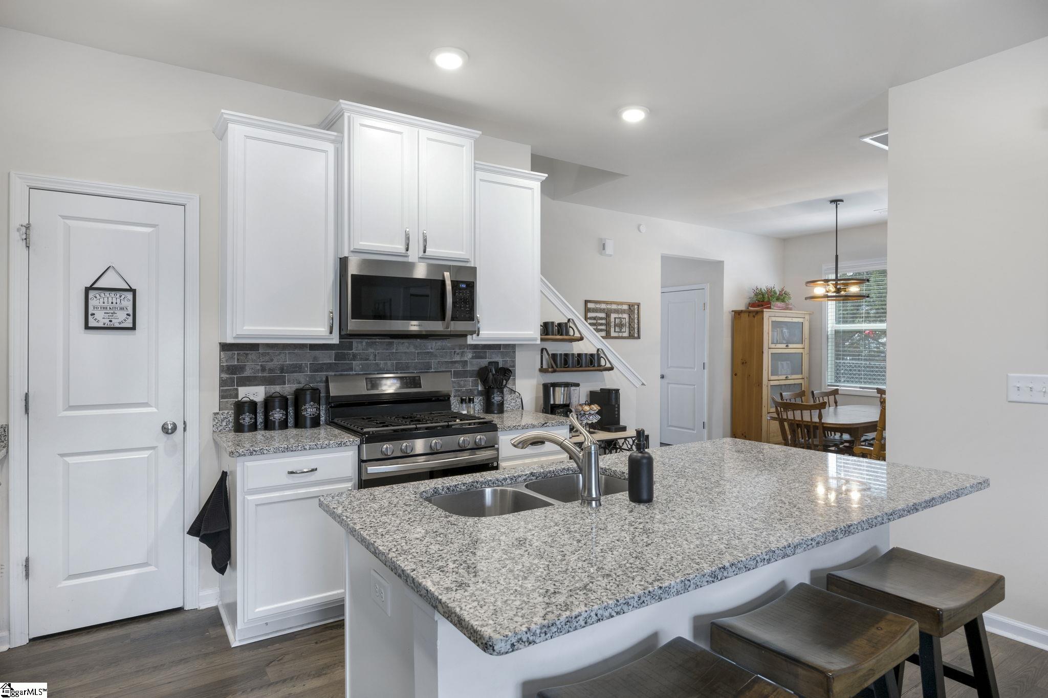 Located in the desirable Northmede Townhome community just off Hwy 81, this well-maintained 3 bedroom, 2. 5 bath home offers both convenience and privacy. All homes in the neighborhood feature rear-facing garages, and this property includes a 2-car attached garage with a large parking area in the rear. As the final home in the neighborhood, it enjoys a nice private side yard and a peaceful front view overlooking a lightly used cul-de-sac and wooded area. Inside, the main level is bright and inviting. The living area opens to the kitchen, creating a comfortable space for everyday living and entertaining. The kitchen features ample counter space, plenty of cabinetry, and a pantry for additional storage. Also on the main level are the dining area, laundry room, half bath, and the primary suite. The spacious primary bedroom is large enough to accommodate a king-size bed and is filled with natural light from two windows. The primary bath includes granite countertops, a walk-in shower, and a walk-in closet. Upstairs you will find two generously sized bedrooms with ample closet space, a full bath with double sinks and granite countertops, a large loft area that offers flexible living space, and a spacious linen closet. Northmeade is conveniently located near shopping, dining, and everyday conveniences along Hwy 81. Zoned for North Pointe Elementary, McCants Middle, and TL Hanna High School.