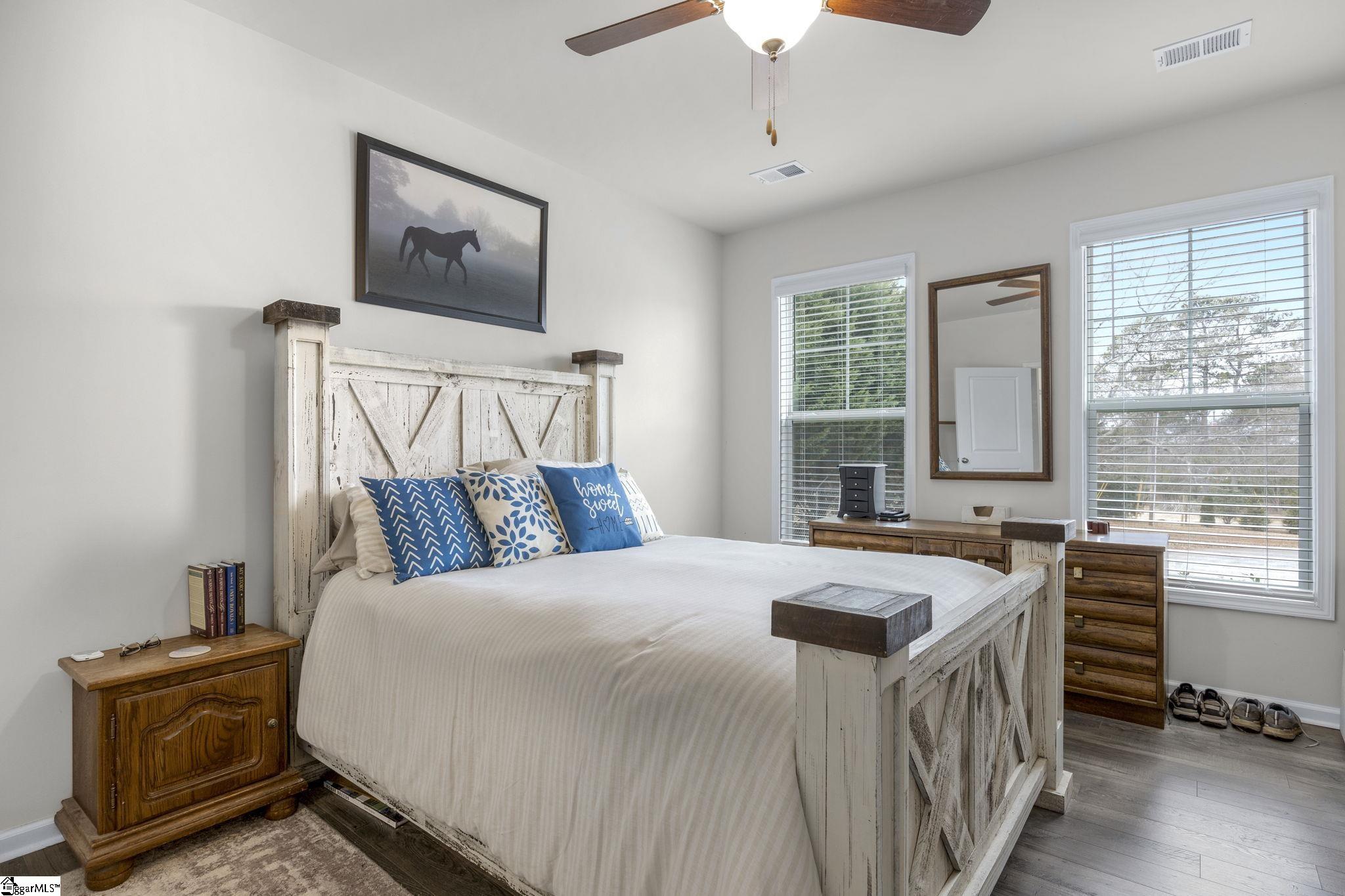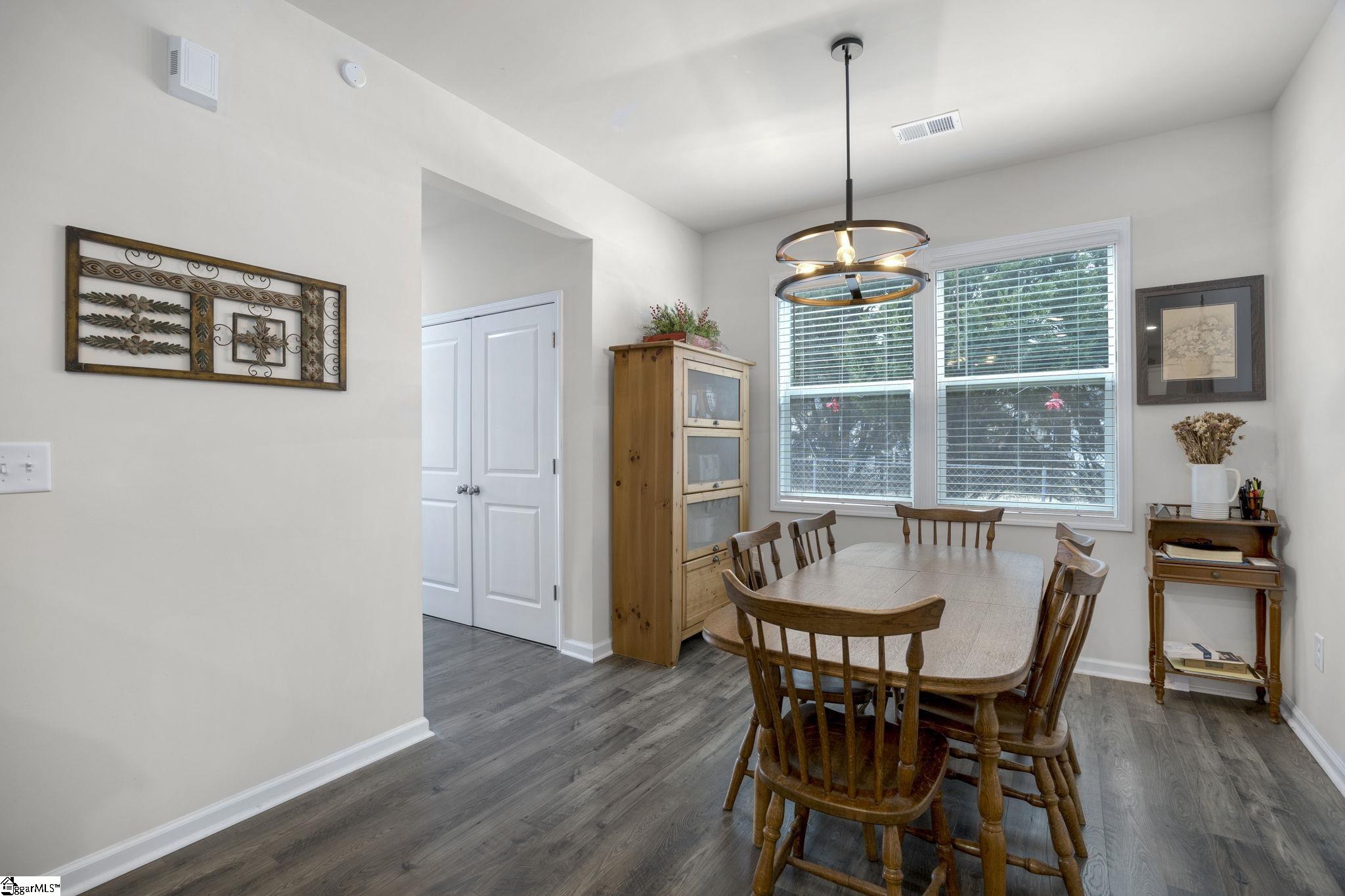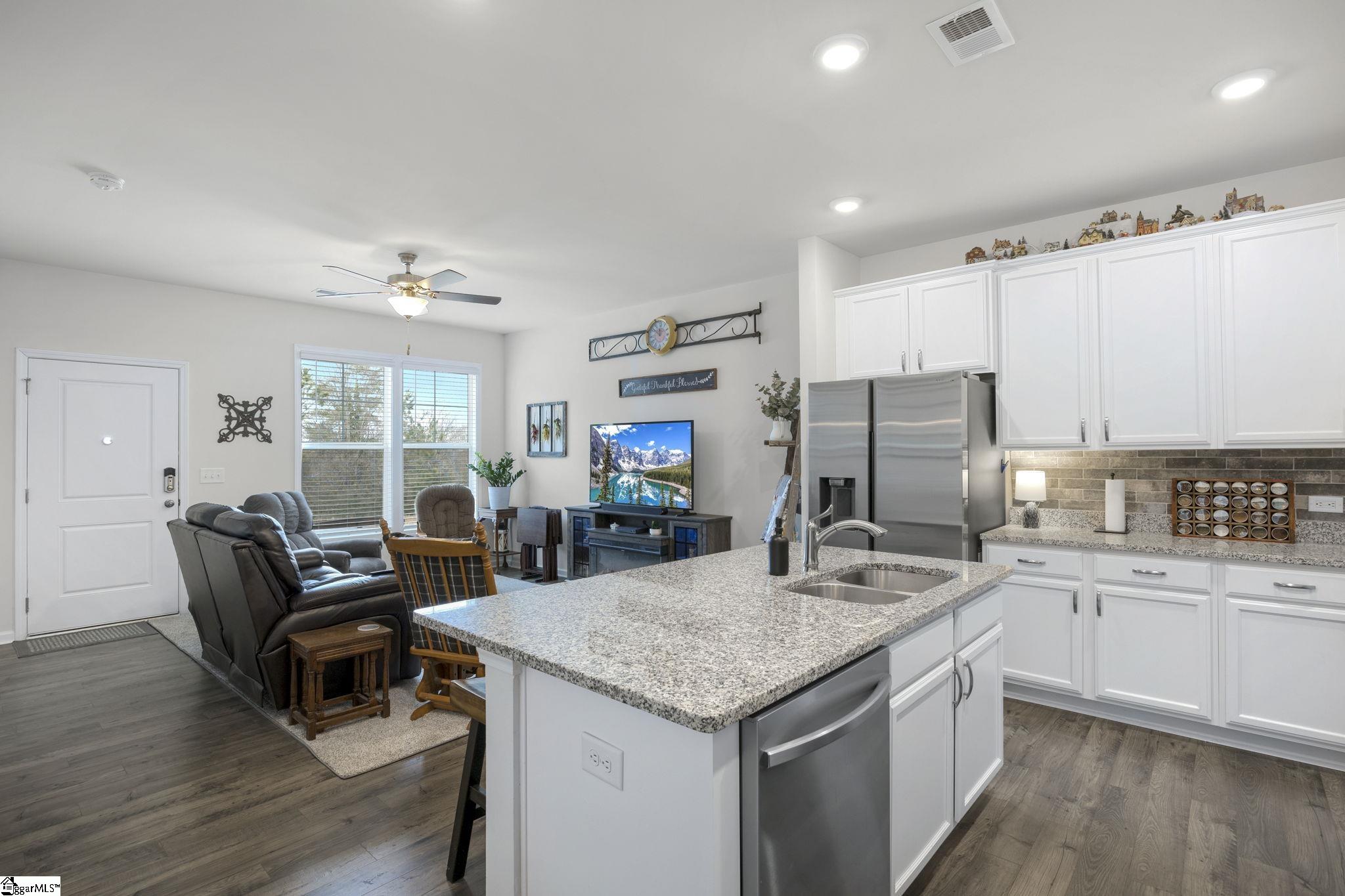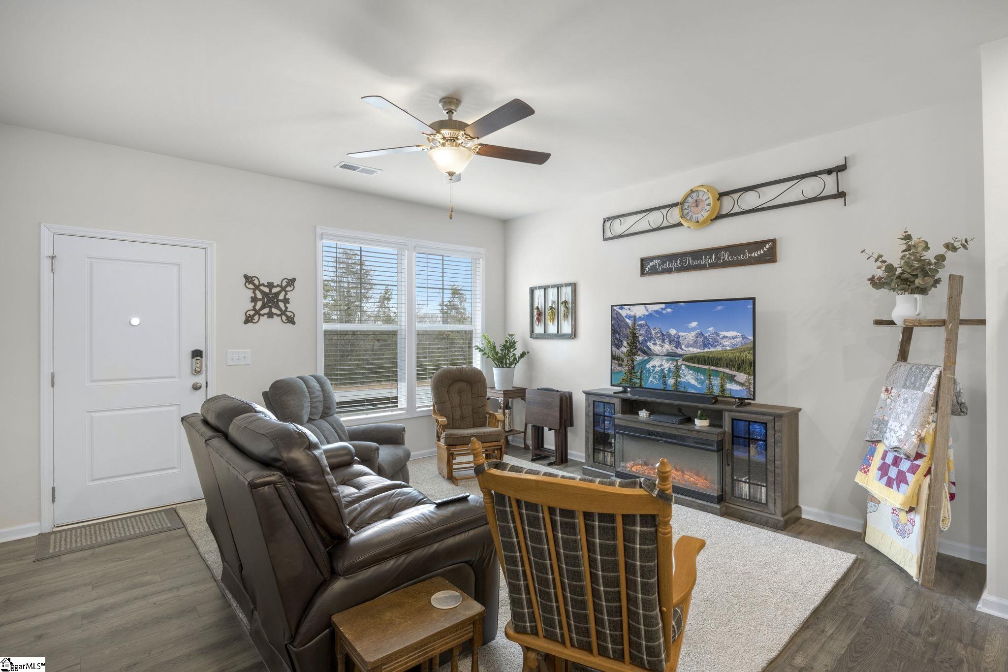 Located in the desirable Northmede Townhome community just off Hwy 81, this well-maintained 3 bedroom, 2. 5 bath home offers both convenience and privacy. All homes in the neighborhood feature rear-facing garages, and this property includes a 2-car attached garage with a large parking area in the rear. As the final home in the neighborhood, it enjoys a nice private side yard and a peaceful front view overlooking a lightly used cul-de-sac and wooded area. Inside, the main level is bright and inviting. The living area opens to the kitchen, creating a comfortable space for everyday living and entertaining. The kitchen features ample counter space, plenty of cabinetry, and a pantry for additional storage. Also on the main level are the dining area, laundry room, half bath, and the primary suite. The spacious primary bedroom is large enough to accommodate a king-size bed and is filled with natural light from two windows. The primary bath includes granite countertops, a walk-in shower, and a walk-in closet. Upstairs you will find two generously sized bedrooms with ample closet space, a full bath with double sinks and granite countertops, a large loft area that offers flexible living space, and a spacious linen closet. Northmeade is conveniently located near shopping, dining, and everyday conveniences along Hwy 81. Zoned for North Pointe Elementary, McCants Middle, and TL Hanna High School.