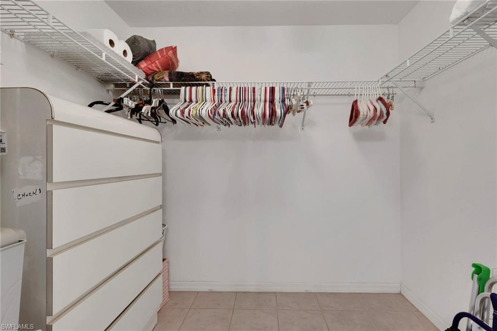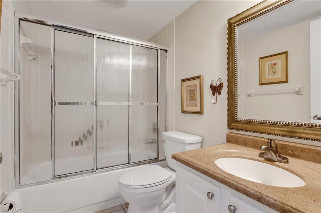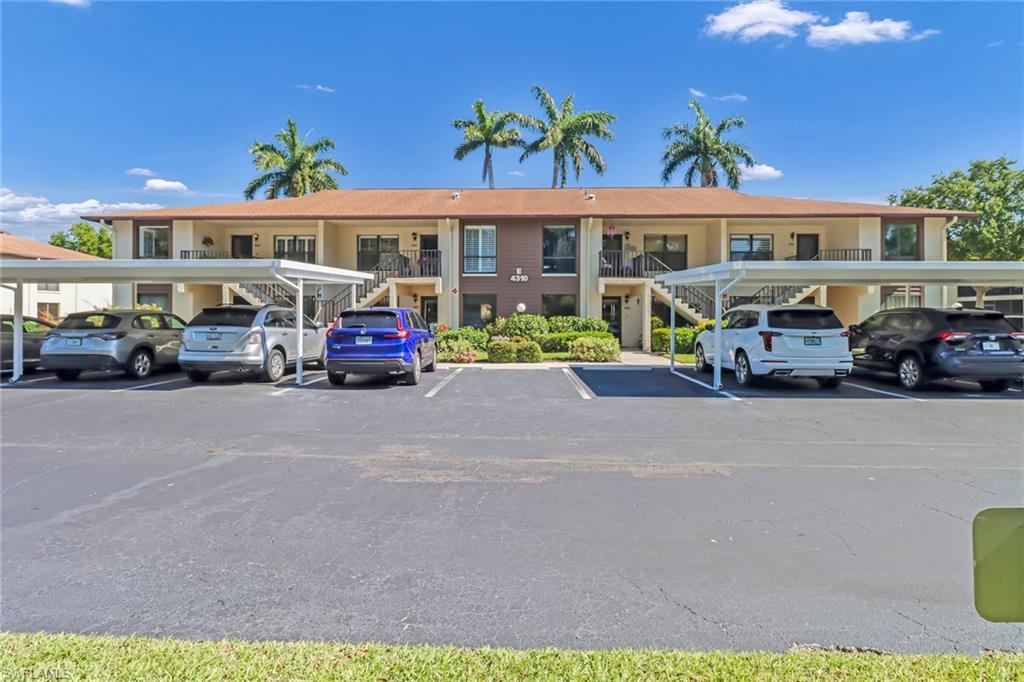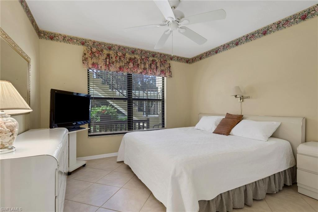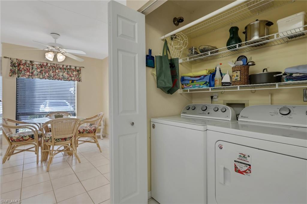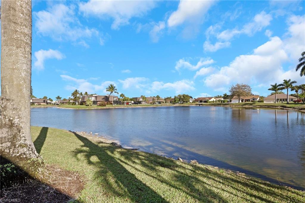 This desirable first floor condo has stunning lake views from the expansive lanai and almost every room. Offered as a turnkey property, it includes all essentials for a comfortable start in your new home. As you enter the condo, you are greeted by the patio with a spacious seating area. The kitchen has been updated with white cabinetry and large pull-out drawers for pots/pans and small appliances. Also in the kitchen, you will find a sizable pantry and laundry closet. Off the kitchen is a large flex space, which is perfect for a breakfast nook, den or home office. The living and dining area offer an open concept giving you options for furniture placement. The spacious owner's suite features direct lanai access and picturesque lake vistas. The en-suite bathroom is equipped with a step-in shower, dual sinks, and a large walk-in closet. Fountains V, set in a serene neighborhood, offers well-maintained grounds, two community pools, and a variety of social activities, all with reasonable association fees that cover cable and water. It is conveniently located, just a block from the Hibiscus Golf Course, less than a mile from US 41 and the Shoppes at Hammock Cove, and under five miles from downtown Naples, renowned for its pristine beaches, gourmet dining, and sophisticated shopping.