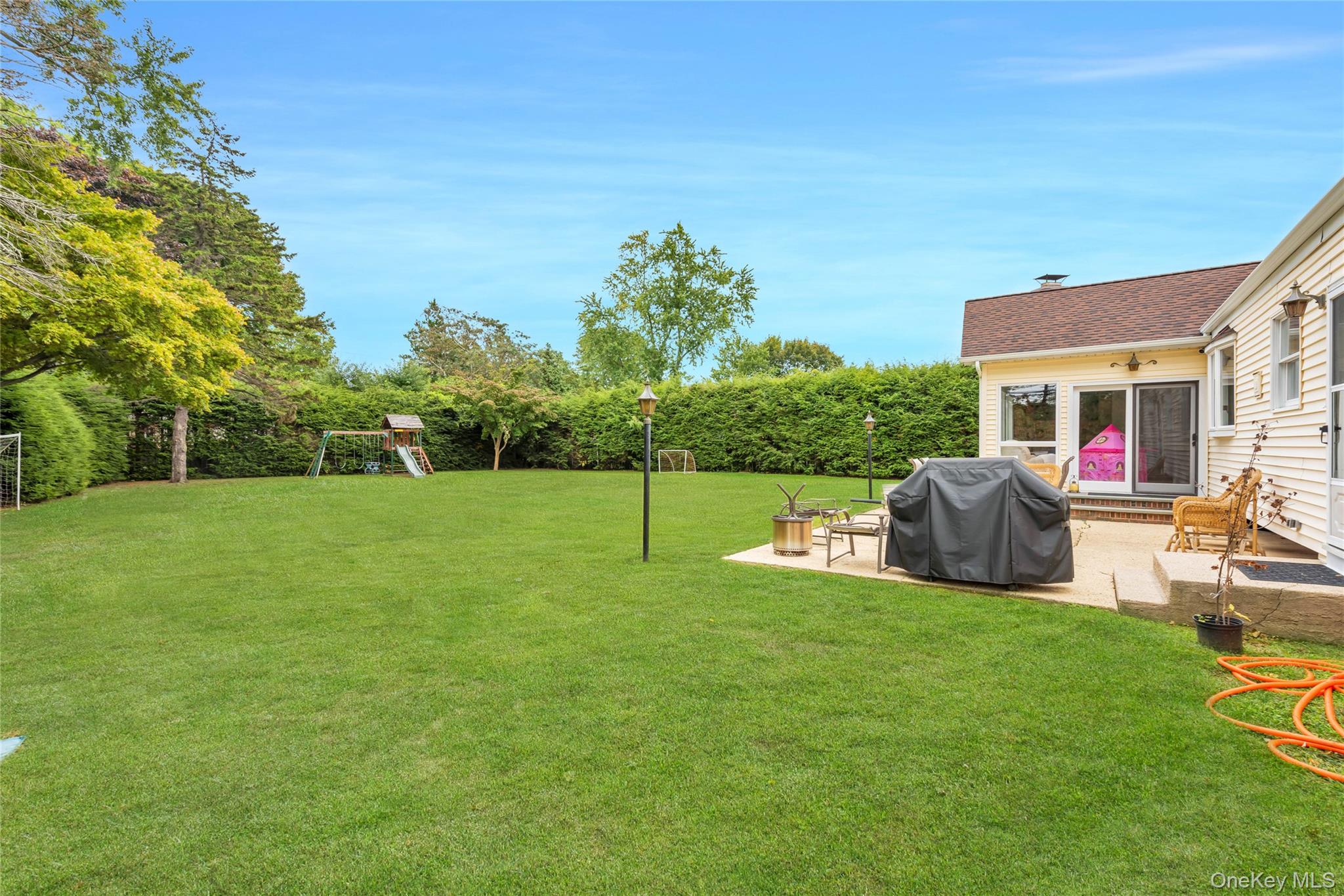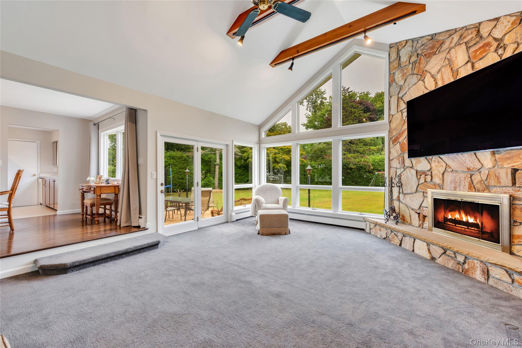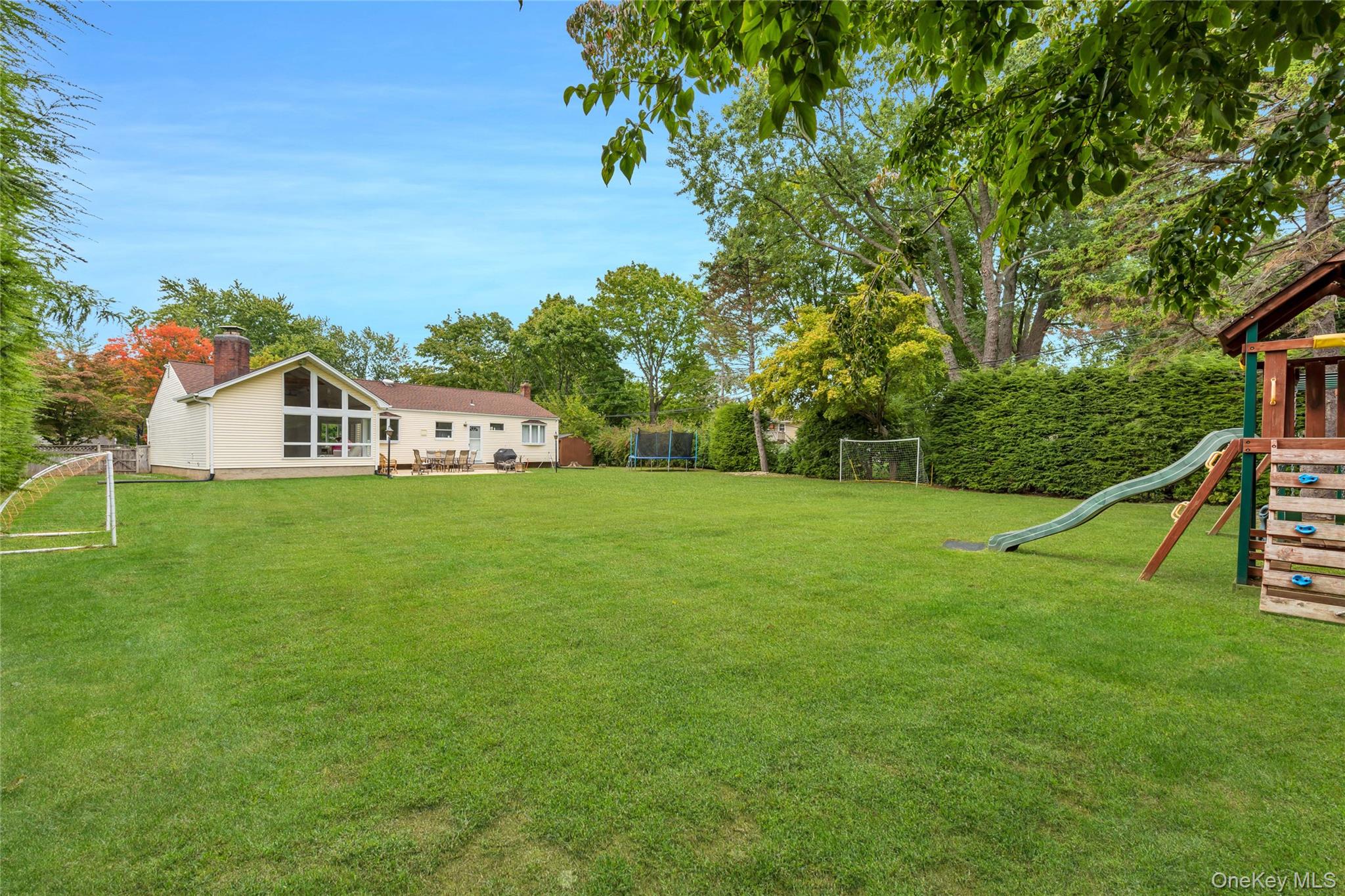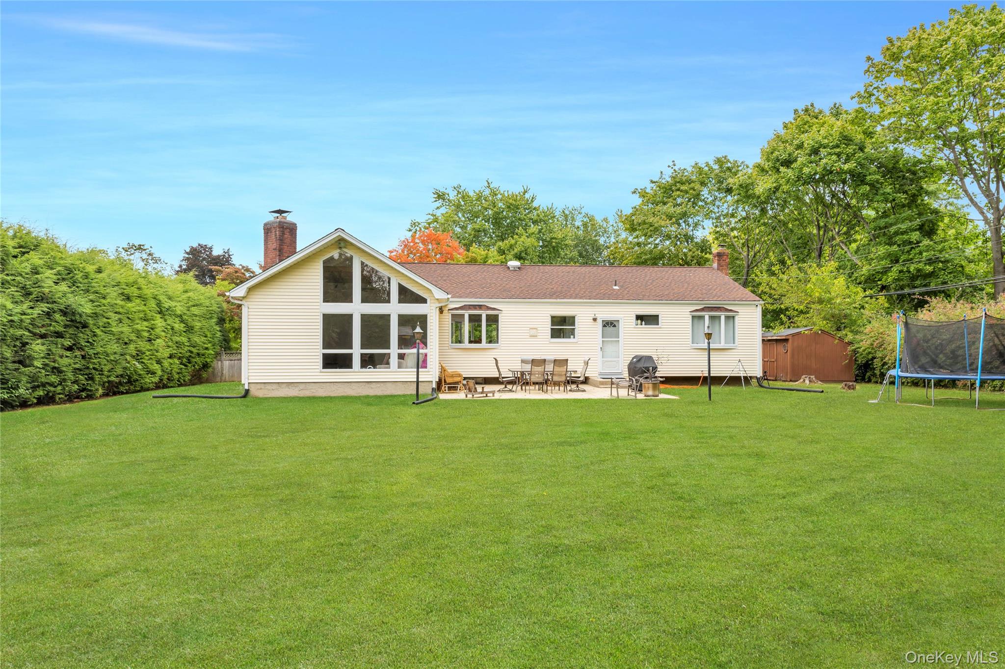 Convenient one story living in this expanded ranch style home. Spacious 19' X 11' den addition with vaulted ceiling, wood burning fireplace, exposed beams, and capped off by soaring floor to ceiling windows overlooking the backyard. Features include 200 AMP electric panel, turbo max high efficiency indirect hot water heater, young roof, smart home/security system, updated septic system, led high hat lighting throughout, CAC, and more! This home is incredibly well maintained and situated on a private . 48 acre lot surrounded by ever greens. All this conveniently located near Larkfield Rd and Jericho Turnpike for all your shopping needs. True taxes before exemptions 15888. 86. Commack school district. Gas on Eastover.