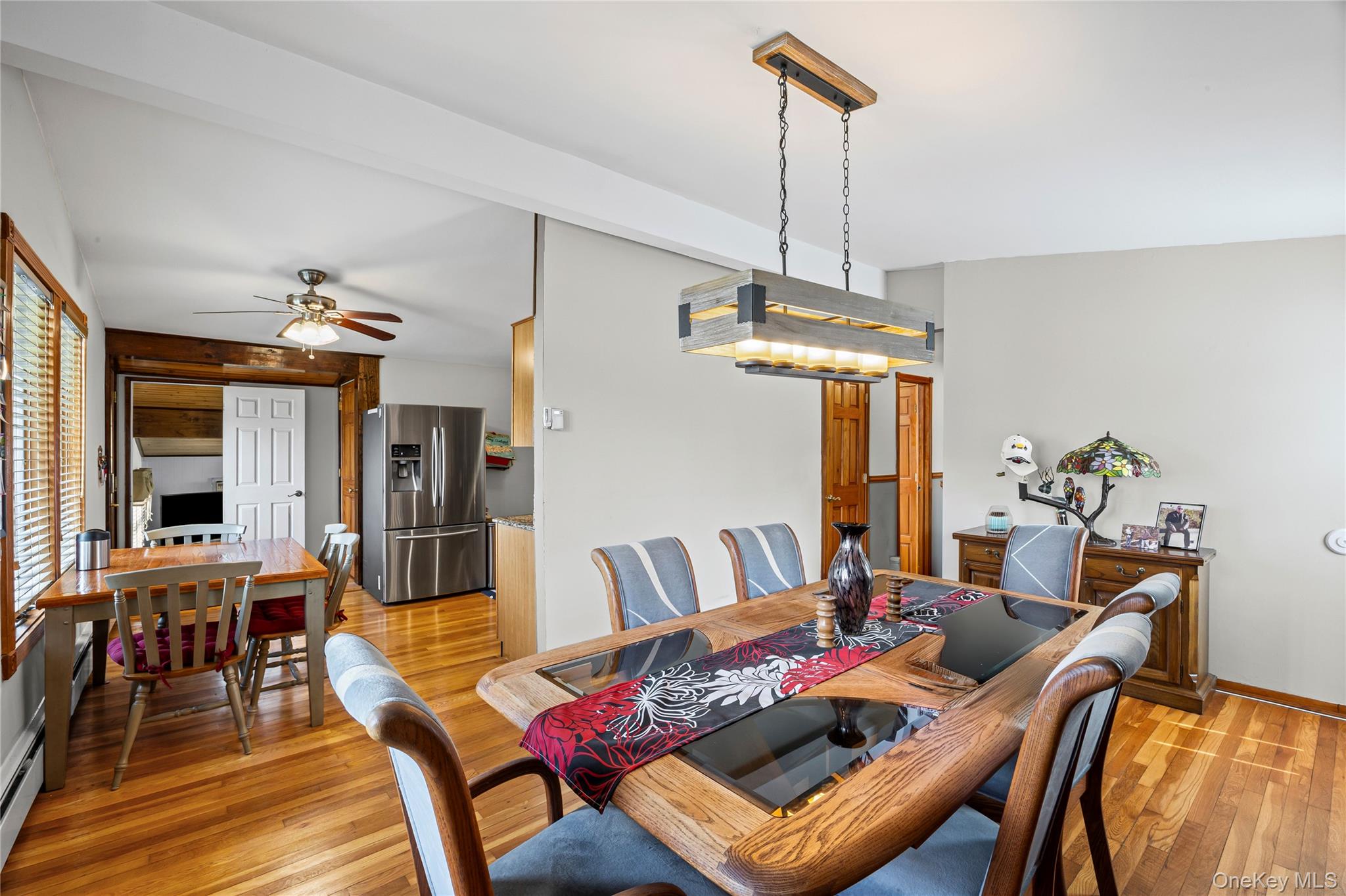Welcome to this well maintained, 3 bedroom, 2 full bath Expanded Ranch. Located mid block, this home has so much to offer. Light and bright Eat in Kitchen, w/granite counters and Newer SS Applicances, (2-3years), complete w/Gas Cooking! Formal Dining room w/outside access to private deck. Extended Primary bedroom with plenty of closets/storage space. Two additional spacious bedrooms and Full bath round out the main floor of this home. Oversized Family room w/ Full bath and wood burning fireplace are located on ground level. With direct access to your private rear yard, patio, garden, this makes for a wonderful entertaining space. Hardwood flooring (recently refinished), Roof (8 Years), Gas Burner, (3 Years), Updated Anderson windows, Vinyl fencing, ING Sprinklers in front yard. Full unfinished basement. Close to shopping, restaurants, schools, major roads, train stations.