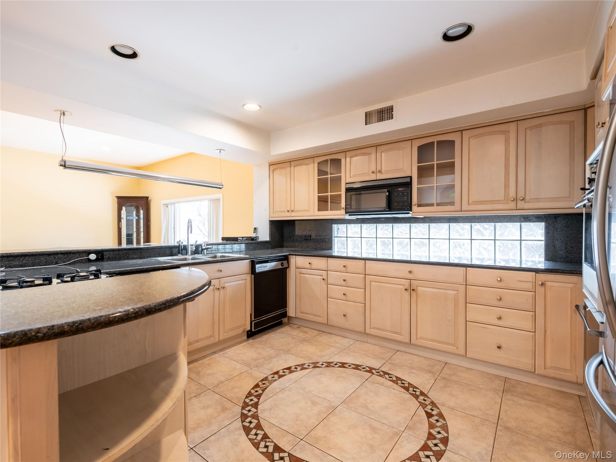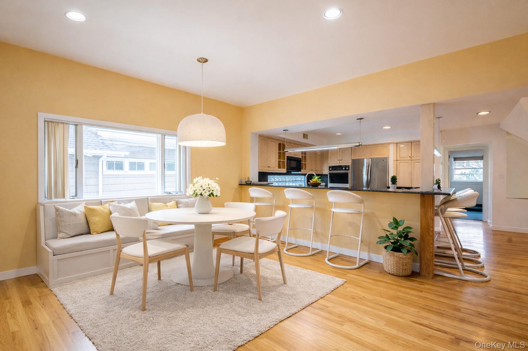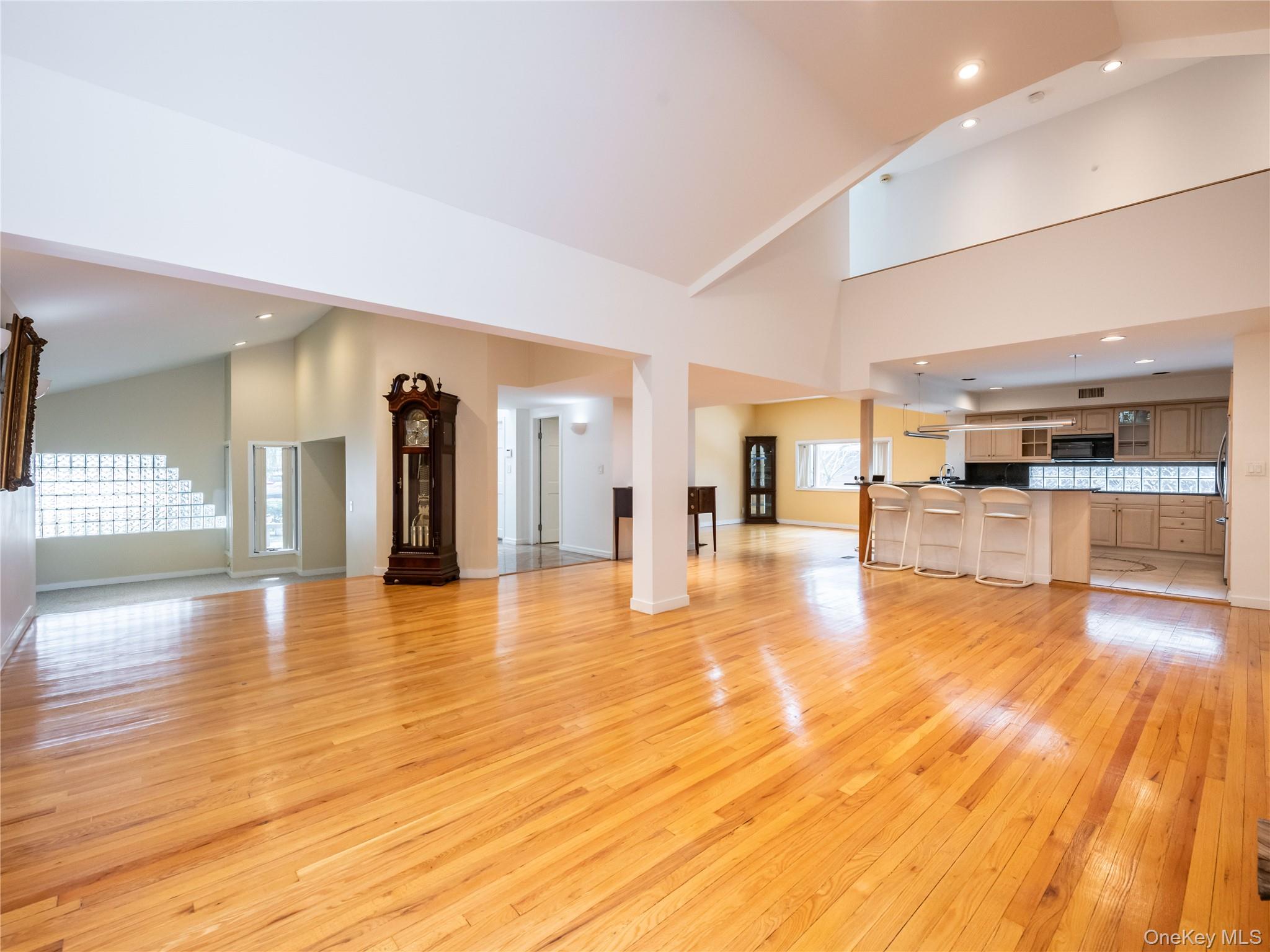 Sun drenched, south-facing contemporary set on a flat, oversized property in the desirable Allenwood neighborhood of Great Neck. This home boasts 4 bedrooms and 4. 5 baths with a spacious, versatile layout. A covered front porch welcomes you into an entry foyer with marble floors and a coat closet. The main level features hardwood floors, high ceilings, a powder room, and a bright living room with a wood-burning fireplace, skylights, and Andersen sliding door leading to the deck and flat spacious backyard. A den provides flexible living space, while the dining area flows into the open-concept kitchen with custom wood cabinetry. Two bedrooms and a full marble bath complete this level. Upstairs provides a generous primary suite with a walk-in closet and full bath, plus an additional bedroom and hall bath. The full finished basement offers recreation space, a full bath, laundry room, windows, and storage. Additional highlights include a two car attached garage, central air, recessed lighting, alarm system, and Nest thermostat. Zoned for E. M. Baker Elementary and North Middle/High School, and conveniently located near parks, town, and the LIRR. Great Neck Park District amenities: Parkwood Pool, Tennis Center, Ice Skating, and Steppingstone Waterfront Park. MUST SEE!