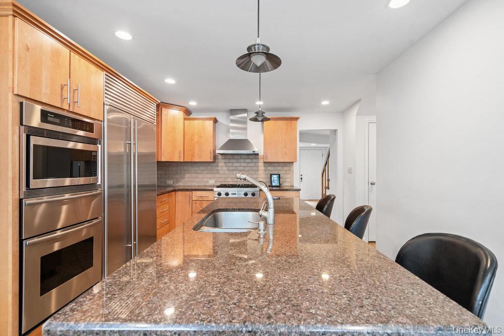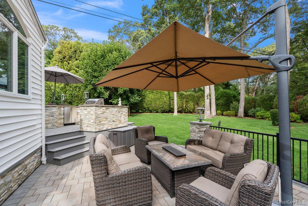 Welcome to 4 Newport Drive, located in highly desirable Plainview — a spacious 4-bedroom, 2. 5-bath Colonial set on a beautiful flat half-acre property. This well-maintained home offers generous living space perfect for everyday living and entertaining. The eat-in kitchen features high-end appliances, a center island, ample cabinet and countertop space, gas cooking, and much more. The main level offers an ideal layout, featuring a formal living room, elegant dining room, and a comfortable den/family room, creating multiple spaces for relaxing or entertaining. A convenient powder room is also located on the main level. Upstairs you will find four spacious bedrooms, including a primary suite with its own private bathroom and plenty of closet space. The additional bedrooms are generously sized and share a full hall bathroom. Gas heating with baseboard heat and central air conditioning provide year-round comfort. A finished basement offers additional versatile space ideal for a recreation room, home office, gym, or playroom. Step outside to your expansive private backyard, complete with a beautiful deck, paver patio, and built-in BBQ with bar area, creating the perfect setting for hosting gatherings or enjoying peaceful outdoor living. The flat half-acre property offers plenty of space for recreation, relaxation, and future possibilities. Located in the heart of Plainview, this is a wonderful opportunity to make this home your own.
