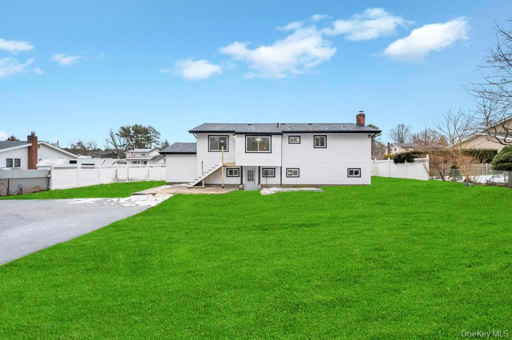Welcome to this spacious 5-bedroom, 3-bath raised ranch located in Wheatley Heights within the highly desirable Half Hollow Hills School District. The upper-level features 3 bedrooms and 2 full baths, including a primary ensuite, along with a modern eat in kitchen, formal dining room, and a bright living room with high hats and hardwood floors throughout. The home also boasts a new roof and new siding. The lower level with outside entrance offers 2 additional bedrooms, 1 full bath, and an open living area, making it ideal for extended family or a potential mother-daughter setup with proper permits. With a well-designed layout and move-in ready condition, this home presents a fantastic opportunity.