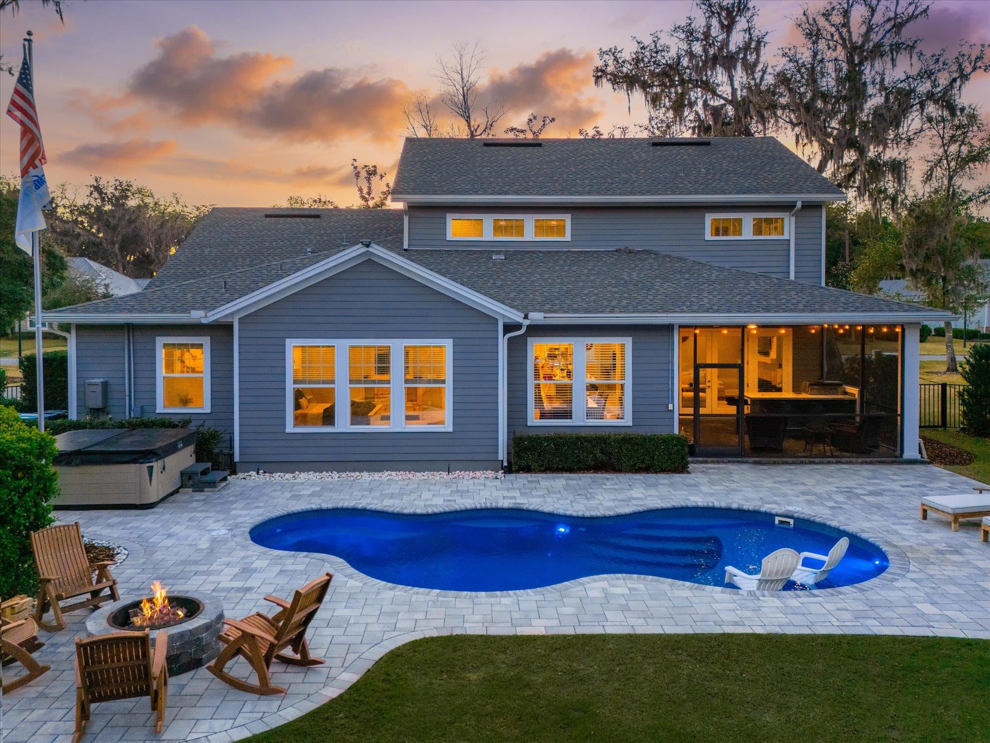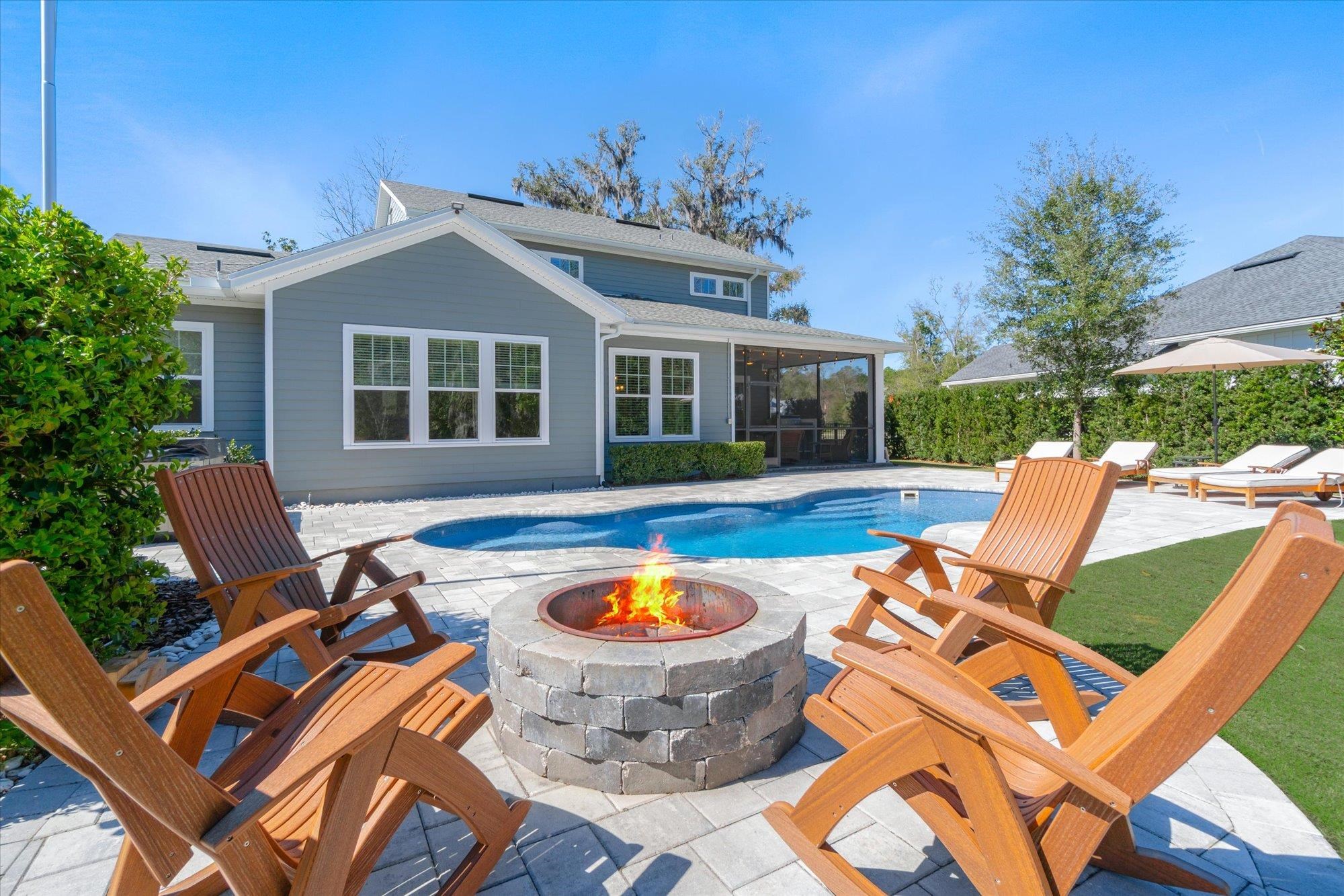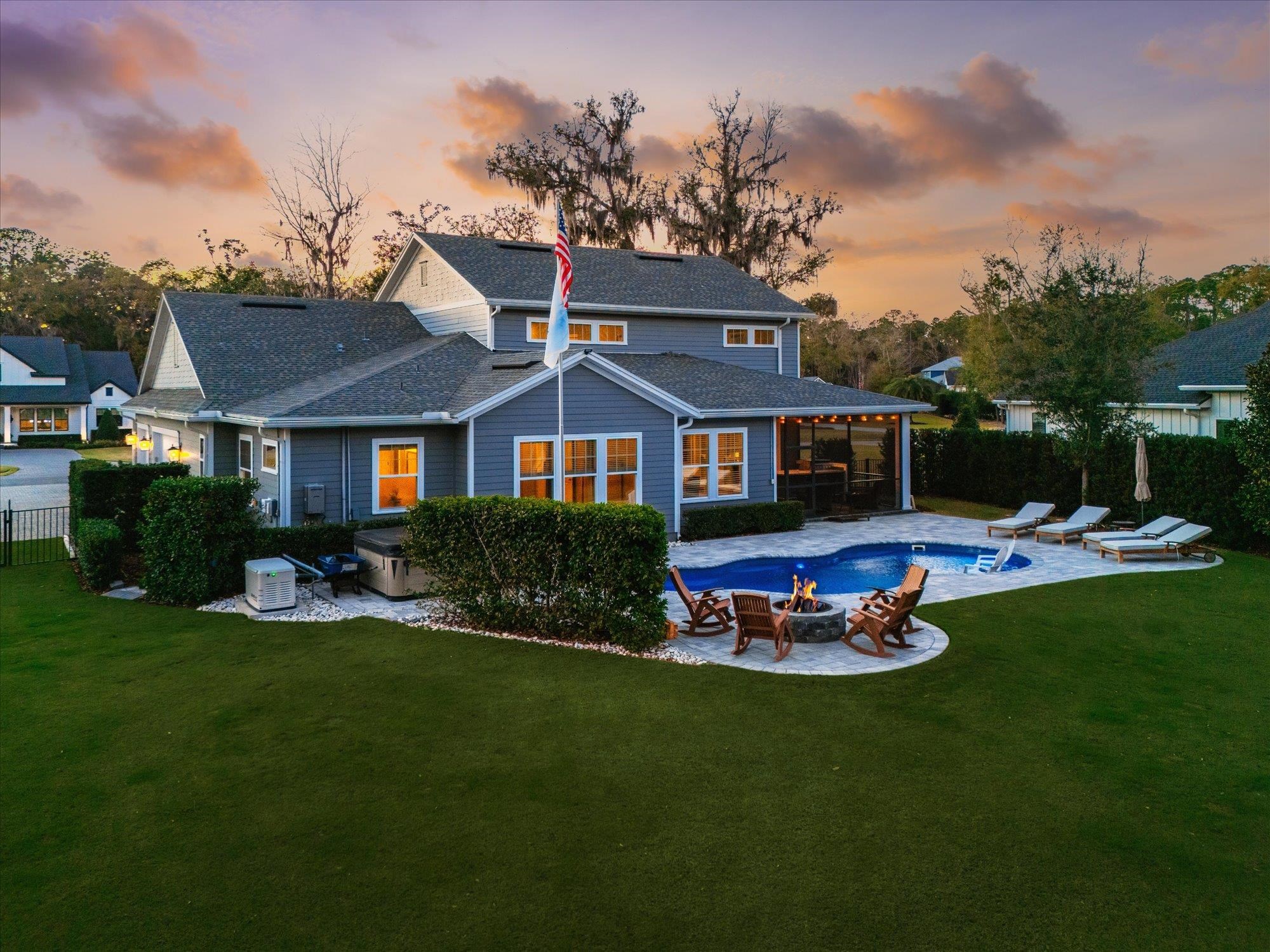 Welcome to 145 Fells Cove, a custom residence located within the private, gated Riverside section of RiverTown—an exclusive enclave of just 20 homes. Set on an estate-sized lot of over half an acre, this 3, 163 square foot property offers exceptional privacy with peaceful preserve views as its backdrop. Designed with both everyday comfort and elevated entertaining in mind, the home features 4 bedrooms and 3 bathrooms arranged in a thoughtful layout that balances open gathering spaces with private retreats. The main living areas flow seamlessly to a screened paver lanai complete with a summer kitchen, overlooking a sparkling pool and spa—creating a true outdoor extension of the home. Inside, the kitchen is appointed with Thermador and Bosch appliances, complemented by a spacious butler’s pantry with a secondary dishwasher for added functionality. Extensive upgraded finishes and exceptional storage solutions are found throughout, reflecting quality craftsmanship and attention to detail. Located within a community offering a refined setting, this property blends privacy, luxury, and thoughtful design in one distinctive Saint Johns address. Welcome home.