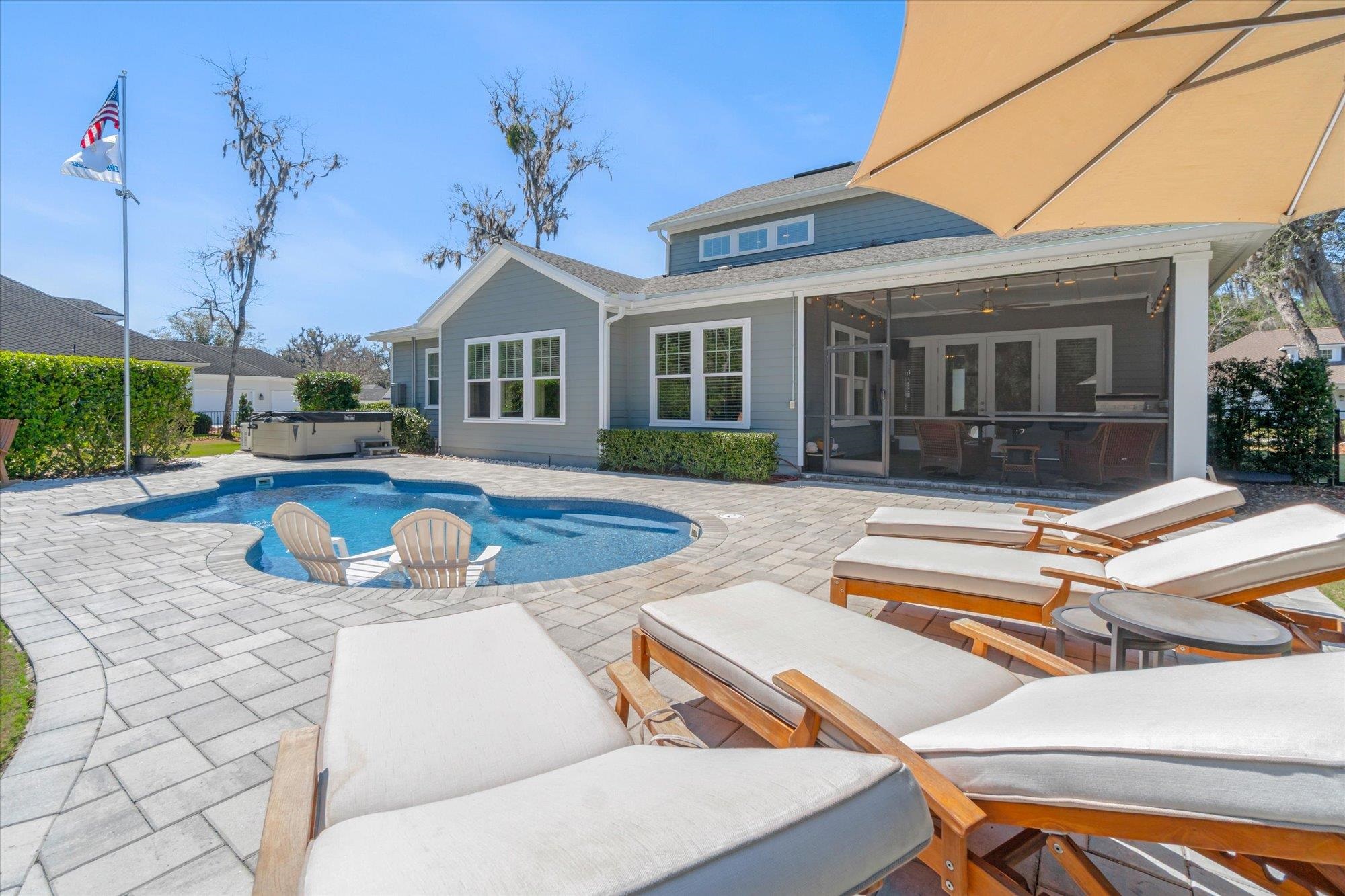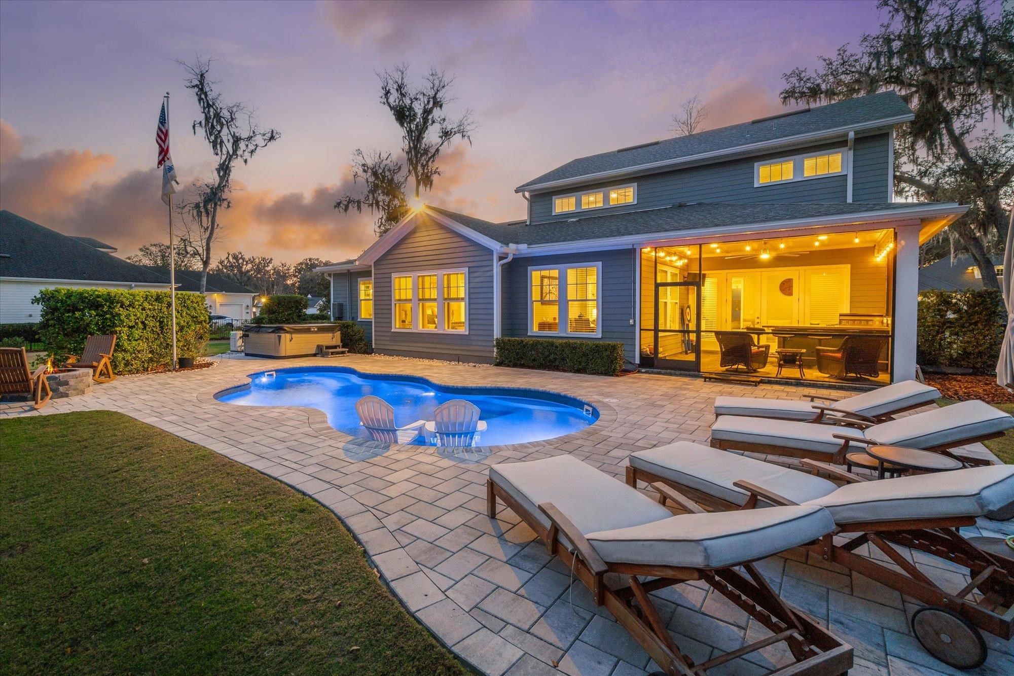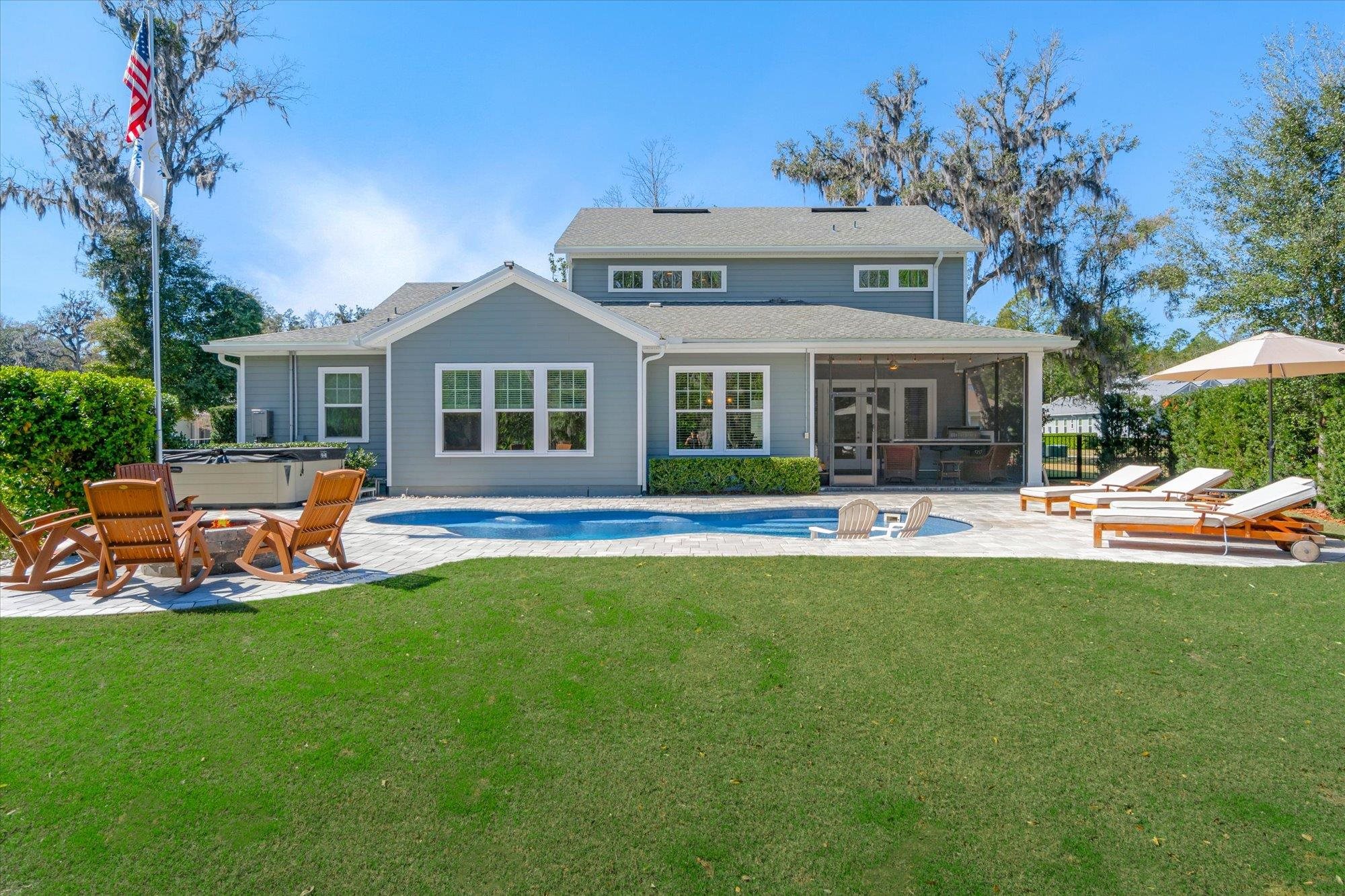 Welcome to 145 Fells Cove, a custom residence located within the private, gated Riverside section of RiverTown—an exclusive enclave of just 20 homes. Set on an estate-sized lot of over half an acre, this 3, 163 square foot property offers exceptional privacy with peaceful preserve views as its backdrop. Designed with both everyday comfort and elevated entertaining in mind, the home features 4 bedrooms and 3 bathrooms arranged in a thoughtful layout that balances open gathering spaces with private retreats. The main living areas flow seamlessly to a screened paver lanai complete with a summer kitchen, overlooking a sparkling pool and spa—creating a true outdoor extension of the home. Inside, the kitchen is appointed with Thermador and Bosch appliances, complemented by a spacious butler’s pantry with a secondary dishwasher for added functionality. Extensive upgraded finishes and exceptional storage solutions are found throughout, reflecting quality craftsmanship and attention to detail. Located within a community offering a refined setting, this property blends privacy, luxury, and thoughtful design in one distinctive Saint Johns address. Welcome home.
