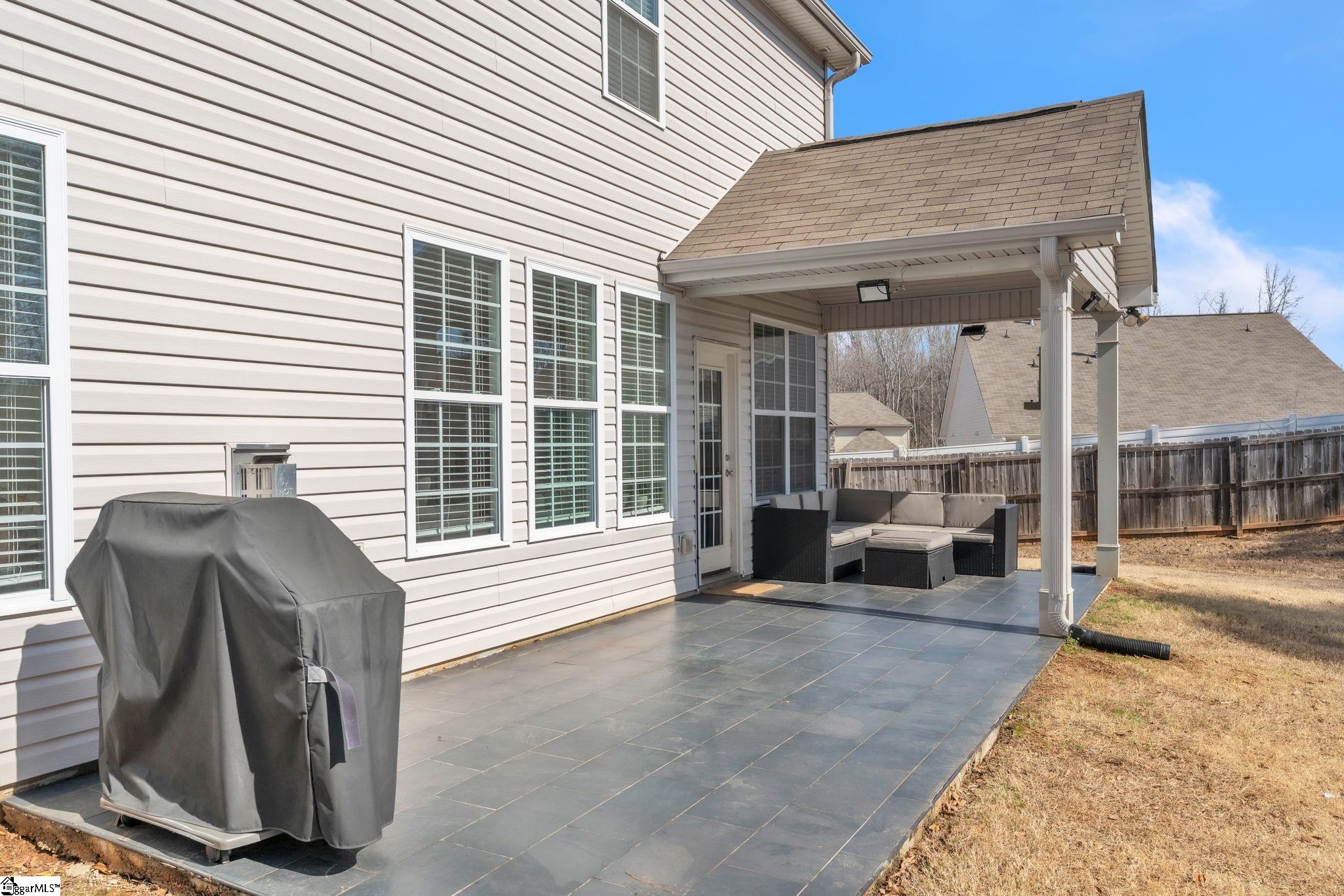 The preferred lender offers assistance towards closing! Located on a quiet cul-de-sac in the beautiful Meadow Ridge community in Easley, this spacious 5-bedroom home offers a layout that works well for everyday life and entertaining. A bright two-story foyer welcomes you inside, with a versatile room just off the entry that can serve as a dining room, home office, or flex space. The main living area features an open layout where the kitchen and living room flow seamlessly, filled with natural light and centered around a beautiful granite island. The kitchen features granite countertops, a subway tile backsplash, a spacious pantry, and room for casual dining, while a cozy corner gas-log fireplace anchors the living room. A main-level bedroom and full bathroom offer convenient space for guests. A small mud area and additional storage closets add practical everyday functionality. Upstairs, you'll find four additional bedrooms, including the primary suite, which features double doors, a tray ceiling, a large walk-in closet, and a spacious bathroom with dual sinks, a garden tub, and a separate shower. The fifth bedroom is currently used as a flex space but easily functions as a spacious bedroom, giving the home the option of five bedrooms or four bedrooms plus a bonus room. The additional bedrooms share a full hall bathroom upstairs. Granite countertops continue throughout the bathrooms, and a laundry room is conveniently located just outside the primary bedroom. Outside, the covered patio and extended tiled seating area create a great space for relaxing or entertaining. The backyard sits on a generously sized lot, offering more outdoor space than many newer homes in similar communities. Located just minutes from Easley’s shopping and dining, this centrally located home offers convenient access across the Upstate, including Greenville’s shopping and dining just 20 minutes away. Come see for yourself!