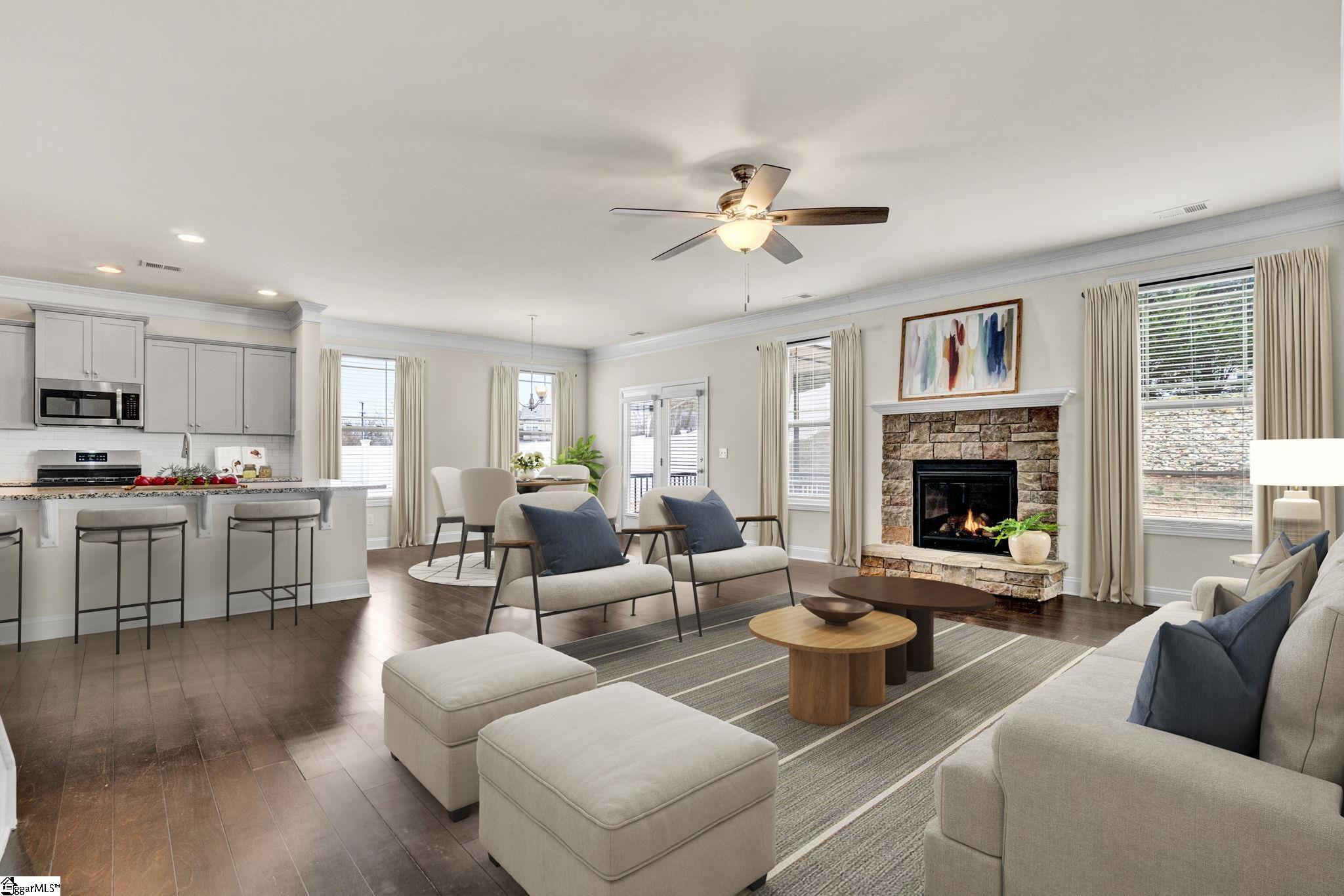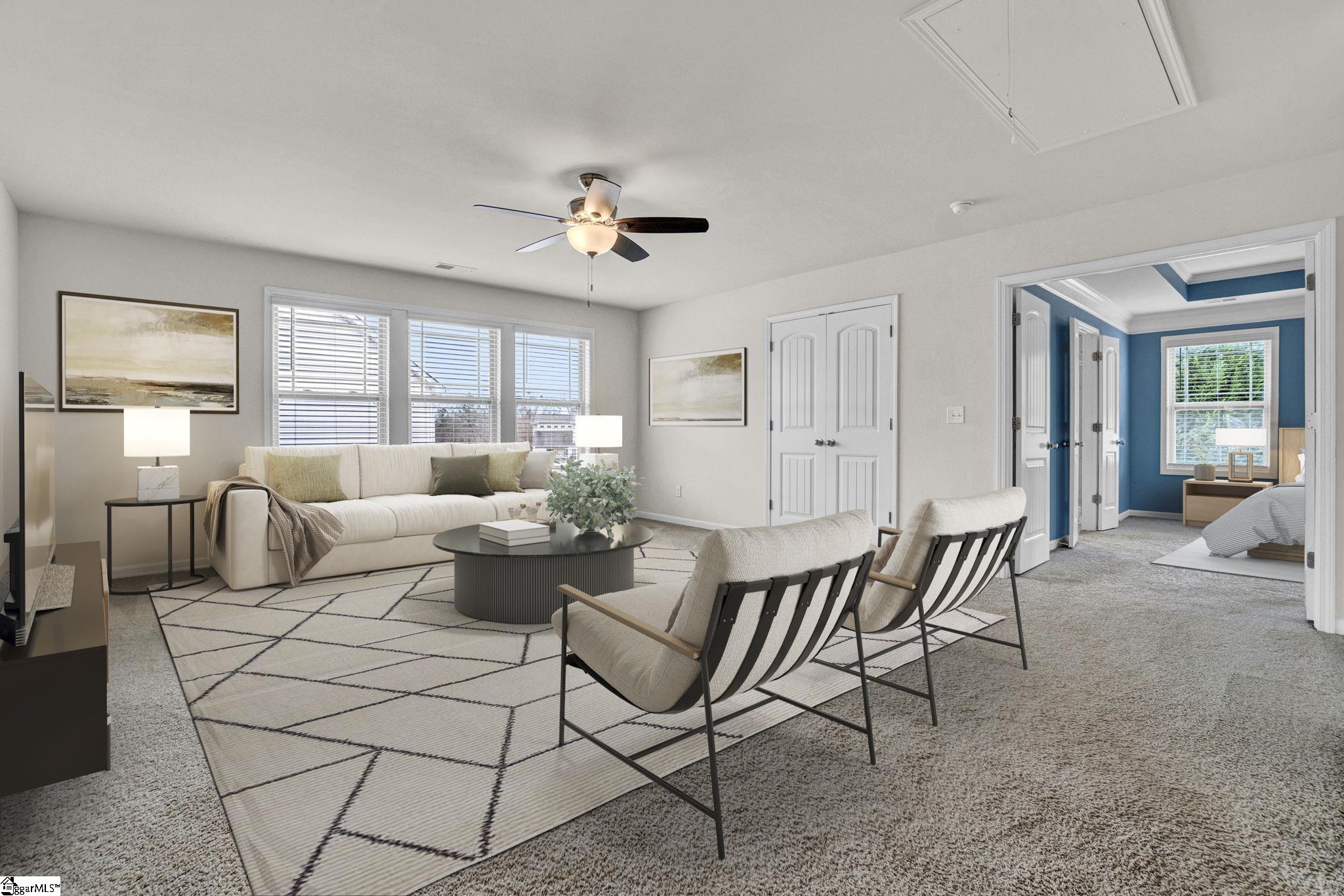 This spacious 3, 200± sq ft home truly has everything you’ve been looking for! You’ll fall in love with the open-concept living spaces, gorgeous hardwood floors throughout much of the main level, and a backyard designed for relaxing and entertaining, complete with a screened-in covered porch and an added patio. The perfect spots to unwind on a beautiful evening. From the moment you arrive, the charming front porch welcomes you inside. The main level offers a wonderful layout for everyday living and entertaining, beginning with a dining room just off the entry and opening into expansive living spaces that connect the kitchen, breakfast area, and great room. Imagine gathering with family and friends during the holidays while cooking in the kitchen and still being part of the conversation in the great room, highlighted by a stunning stacked-stone gas log fireplace. The main level also includes a full bathroom with a walk-in shower and a versatile secondary bedroom that can easily serve as a guest room, home office, or playroom. Upstairs, you’ll find an enormous loft area that offers endless possibilities. Create a media room, playroom, exercise space, or cozy reading area. The second floor also features the spacious primary suite, a large walk-in laundry room, two additional bedrooms, and another full bathroom. The primary suite is truly impressive in both size and utility. The bedroom includes a generous sleeping area plus an extended sitting space perfect for a private retreat. You’ll also enjoy a huge walk-in closet and a spa-like bathroom featuring a tiled walk-in shower, large soaking tub, dual vanities, and a private water closet. Enjoy low Pickens county taxes and easy access/close proximity to shopping, dining, and other great amenities Easley, SC has to offer. Dining, great room, loft, and primary bedroom have been virtually staged.