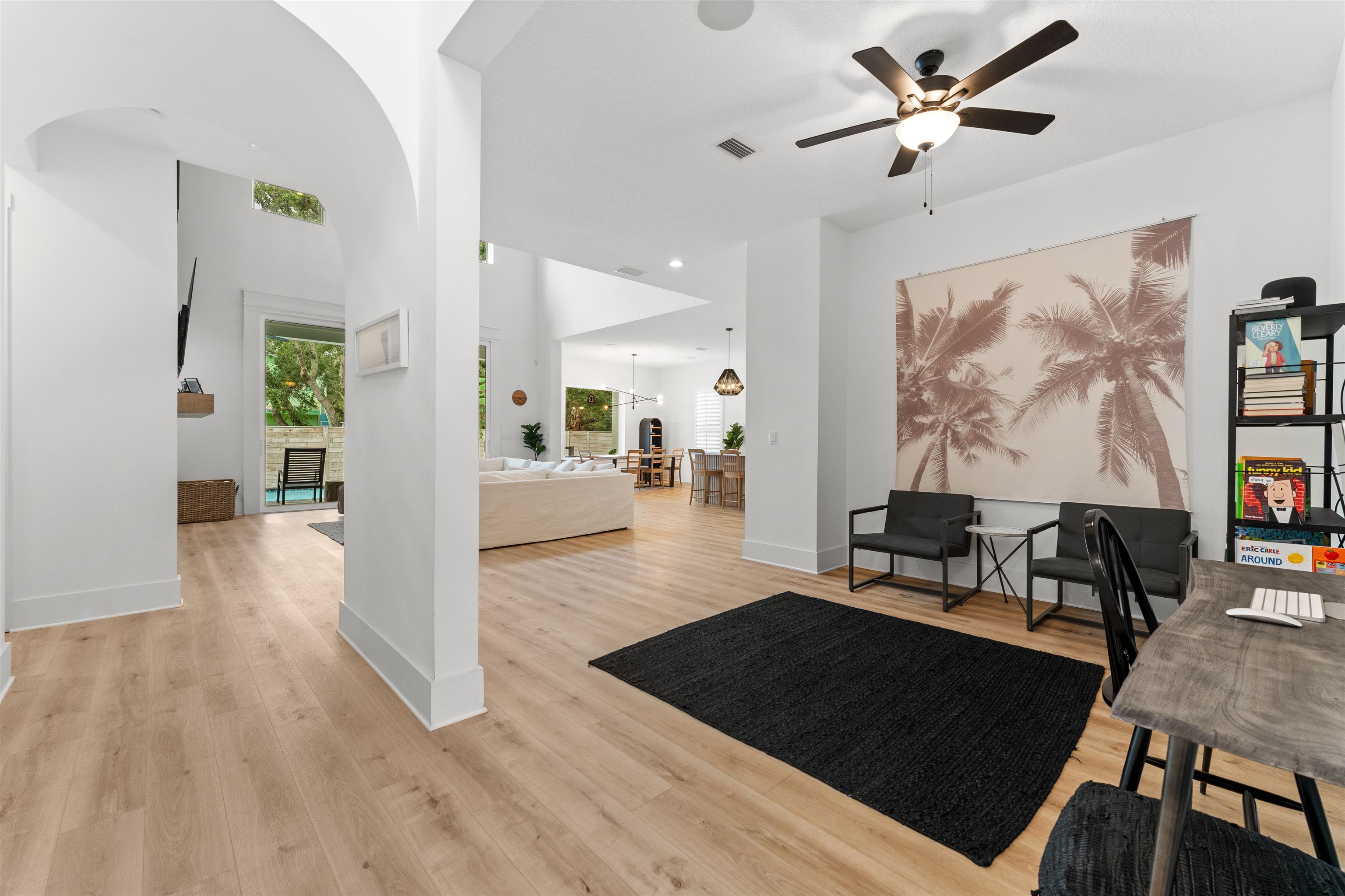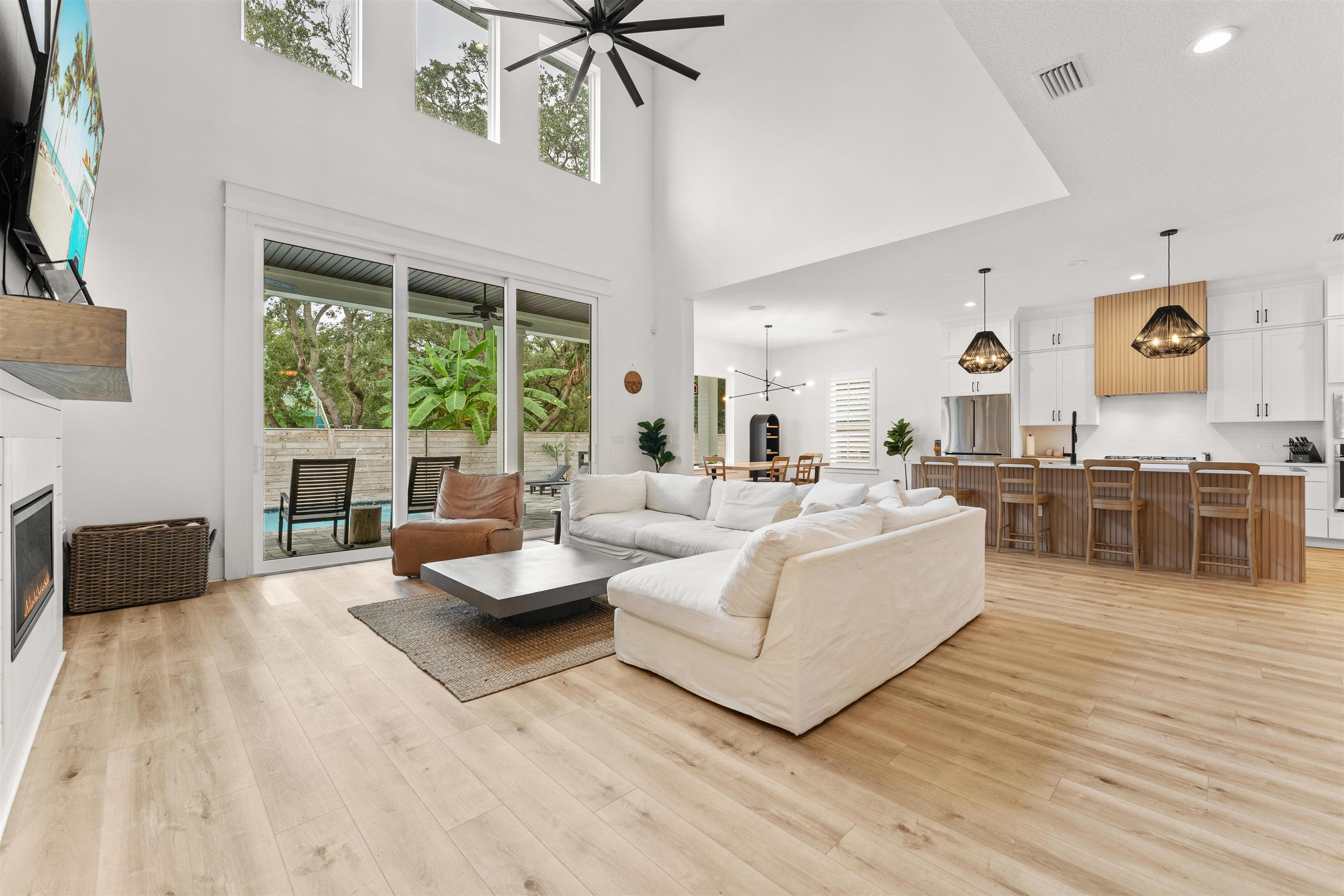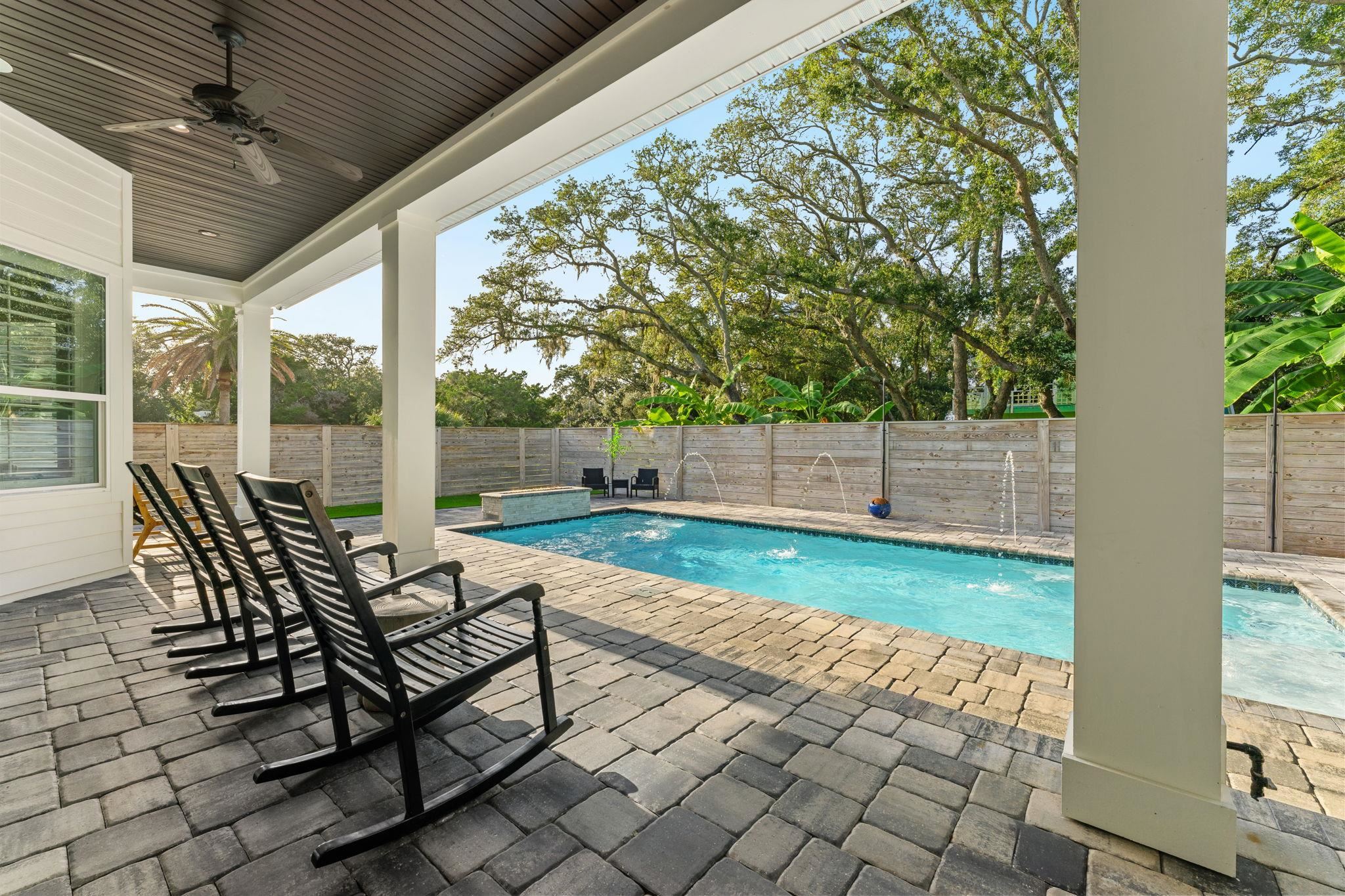 Located in the heart of Vilano Beach, this home offers the perfect blend of luxury, space, and a coastal lifestyle. Just a short walk to both the Atlantic Ocean and the Intracoastal Waterway, and minutes from historic downtown St. Augustine, this beautifully designed home is ideally positioned to enjoy everything the area has to offer. Situated on a 75'x125' lot, the home features 4, 402 soft underair (5, 367 total) with 5 bedrooms, 3. 5 baths, a private office, flex room, and a dedicated theater room with projector and screen. The kitchen is equipped with a gas stove, and the home is enhanced by a Control 4 whole-home sound system. The outdoor living space is designed with a heated pool & chiller, gas fireplace, paver lanai, and low maintenance turf yard. Additional features include a 24'x25' garage, security system, and perimeter security cameras. A rare opportunity to own a spacious, well-appointed home just steps from the ocean in a desirable coastal community.