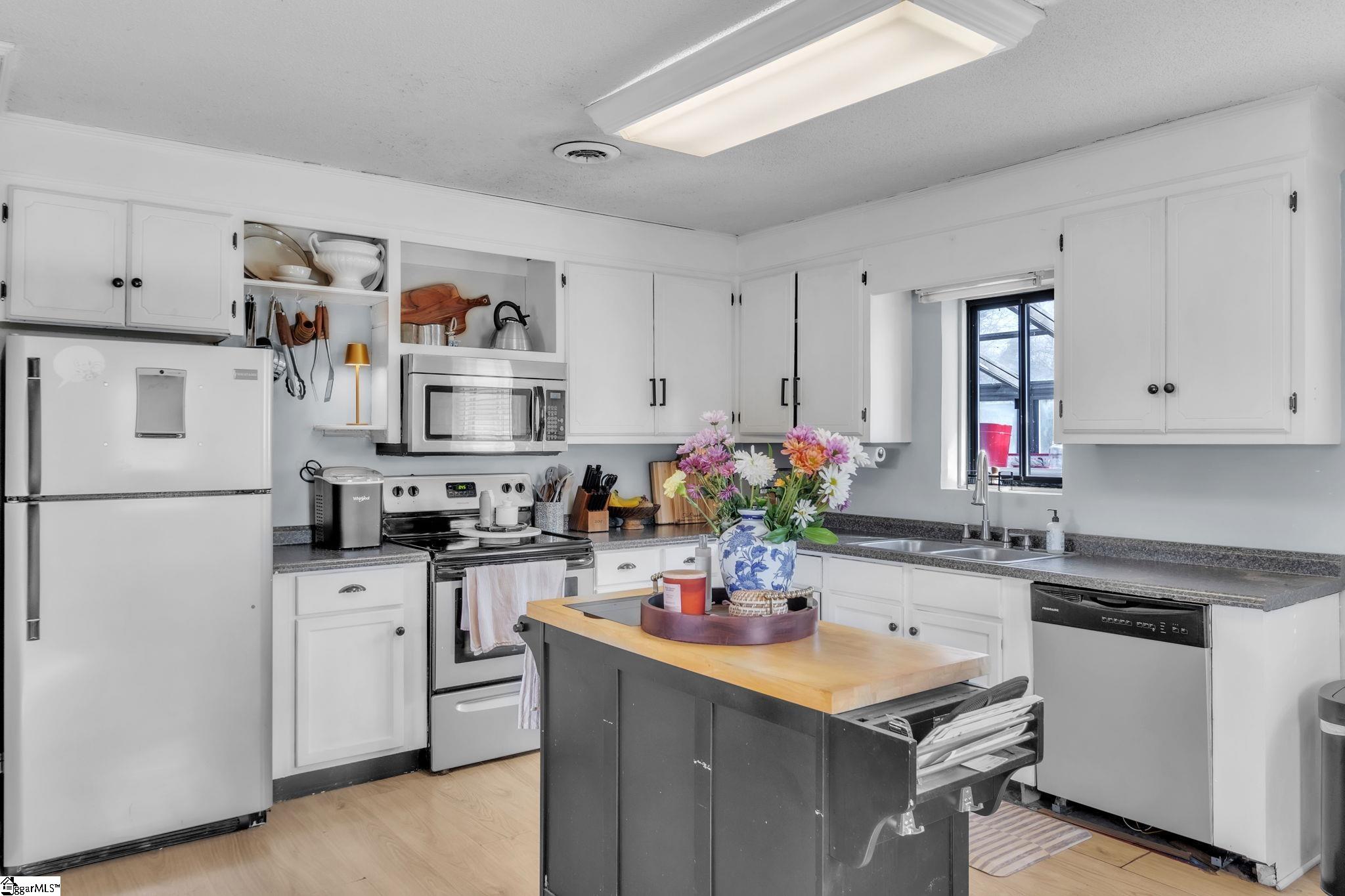 Tucked away on a quiet cul-de-sac in Pendleton, this move-in ready ranch home sits on a spacious . 69-acre lot and offers the kind of space and privacy that is hard to find this close to town. The convenient location is tough to beat with less than 5 minutes to downtown Pendleton, about 15 minutes to Clemson University, and under 15 minutes to I-85, giving you easy access to Clemson, Seneca, Easley, and Anderson. Inside you will find a comfortable layout that feels bright and inviting. The living room centers around a classic wood-burning fireplace, creating a warm gathering spot during cooler months. The kitchen and living area flow together, making everyday living and entertaining easy. Both bedrooms are generously sized and the layout makes the home feel open and functional. Step outside and enjoy the fenced yard with mature trees and plenty of room to spread out. The property also includes a greenhouse and outbuilding, perfect for gardening, hobbies, or extra storage. A front porch and patio give you great spots to relax and enjoy the peaceful setting.