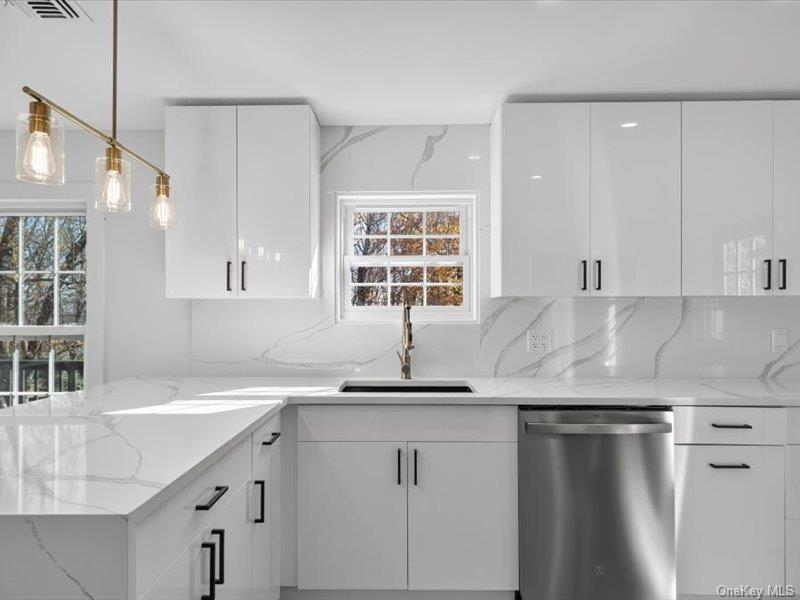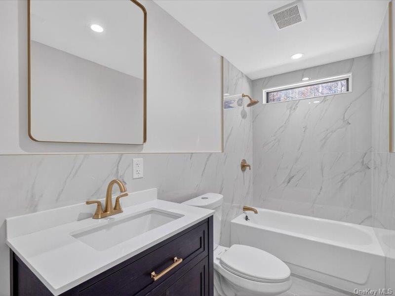 Welcome to “The Glenford” – a stunning newly renovated ranch home that perfectly blends modern comfort with timeless charm. Nestled just minutes away from the picturesque Village of Woodstock this delightful property offers a serene escape with all the amenities you desire. The floor plan consists of 3 spacious bedrooms and 2. 5 bathrooms; each designed with comfort and relaxation in mind. Abundant natural light fills the rooms, creating a warm and inviting atmosphere with woodland views. The bathrooms feature contemporary fixtures and finishes. The primary bedroom also includes it’s own tub, perfect for unwinding after a long day. An open-concept living area that flows seamlessly into the dining space, is ideal for entertaining . The modern kitchen is equipped with brand-new stainless-steel appliances, quartz countertops, and ample storage, making it a chef's delight. There is even a wine fridge! Enjoy additional living space in the finished basement, perfect for a home theater, family room and including a bonus room which can be used as a spare bedroom or office. This versatile area provides endless possibilities to suit your lifestyle and also contains super-efficient split units for maximum energy savings. Expand your outdoor living onto a sprawling wrap around deck and lovely front & back yards that offer a peaceful retreat for outdoor gatherings or quiet contemplation all while surrounded by lush landscaping and mature trees. Just minutes from the vibrant arts scene, eclectic shops, and gourmet dining of Woodstock, you’ll enjoy the perfect balance of rural tranquility and cultural richness. Nothing to do but move right in to renovated interiors with modern finishes, new paint throughout , hardwood floors and, new siding. There is plenty of ample parking space with a very long driveway . Within close proximity to hiking trails and local attractions. This charming home is a rare find, combining comfort, style, and an enviable location. Schedule your private tour today and experience the unique allure of this exceptional home! Imagine your new life in “The Glenford” —where every day feels like a getaway!
