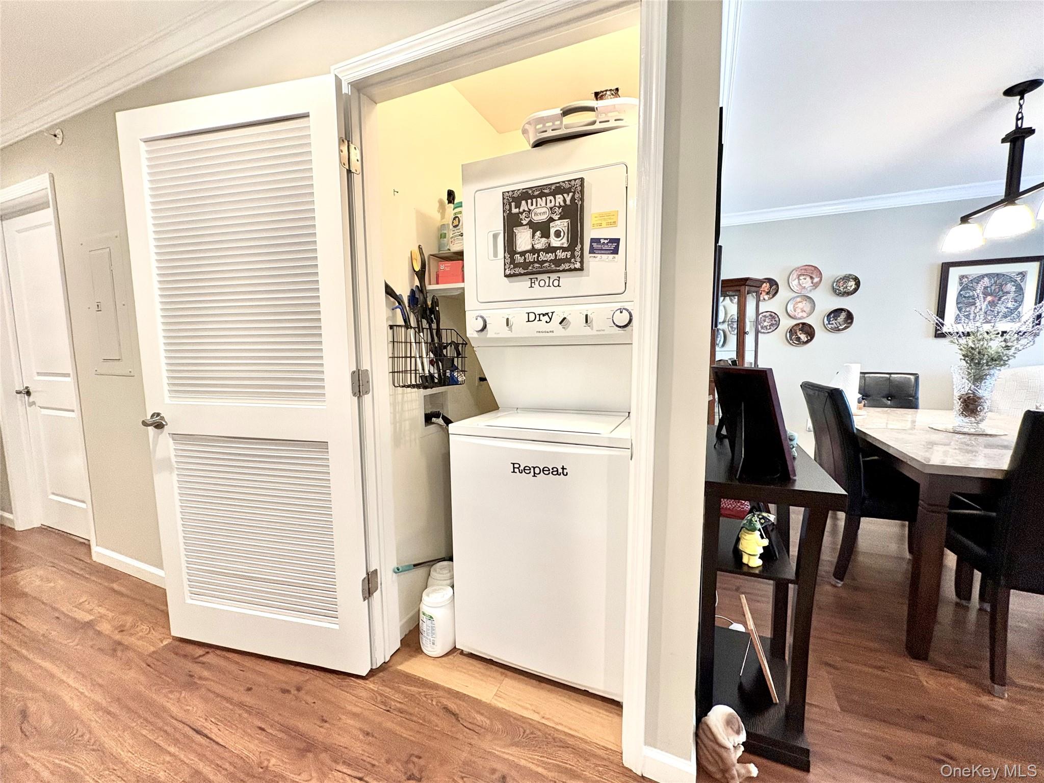 Welcome to 11 Hunter Drive! This 2 BR/2 BA Briar model is conveniently located in a gated community situated in desirable Foxgate of Islip. 11 Hunter Drive Features an inviting space, an updated kitchen with stainless steel appliances, Large Pantry, Crown Molding in LR/Kitchen along with high-hat lighting, in unit washer/dryer, Large walk-in closet located in primary bedroom & an updated primary full bath. Additional bedroom offers you a convenient glass door with access to the back patio where you will find elegant views of the pond and fountain, a perfect place to unwind and relax. Back patio also features a newly installed retractable awning to keep you in the shade and out of the elements. This unit also offers you large closets for ample storage, along with an unfinished 24'X50' basement with 10 ft ceilings, egress window & endless potential. Foxgate of Islip offers homeowners plenty of amenities including a heated pool, a modern gym, walking paths, party room and clubhouse included in this community. Turn the key and move right into this elegant home! HOA fees cover Landscaping, Snow Removal, access to amenities in clubhouse(pool , fitness center, community rooms). Includes one assigned parking space and separate guest parking spaces available.