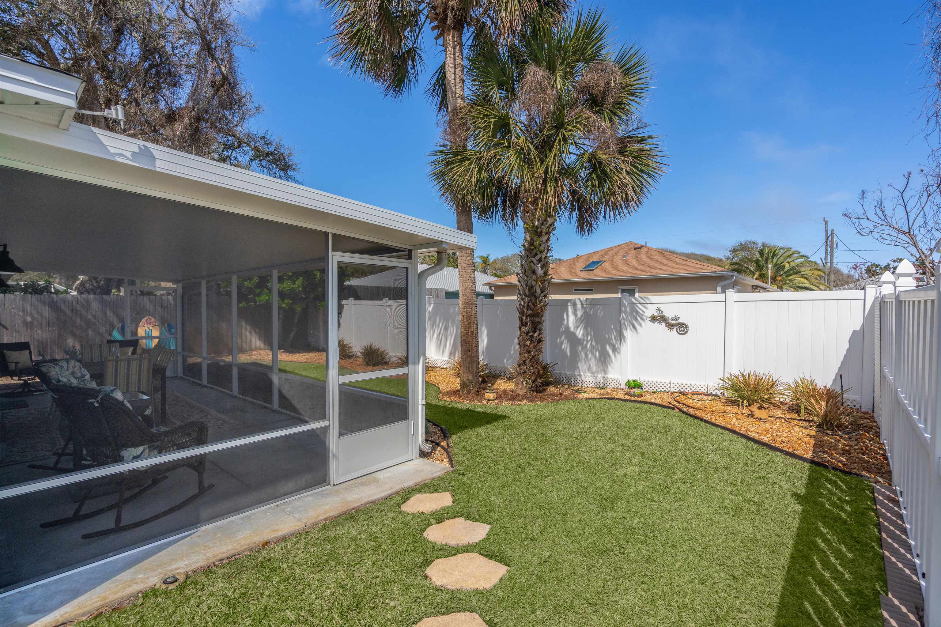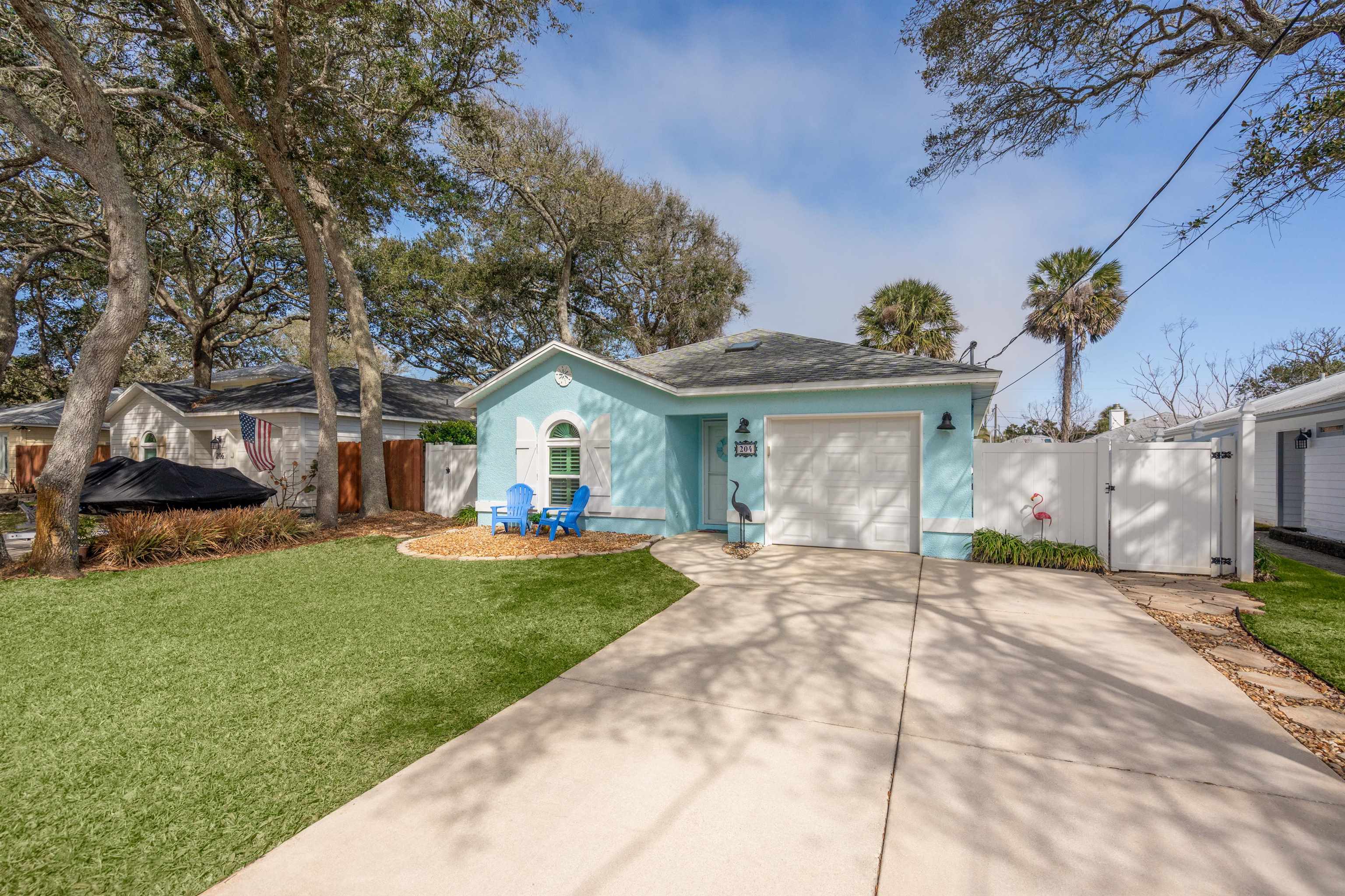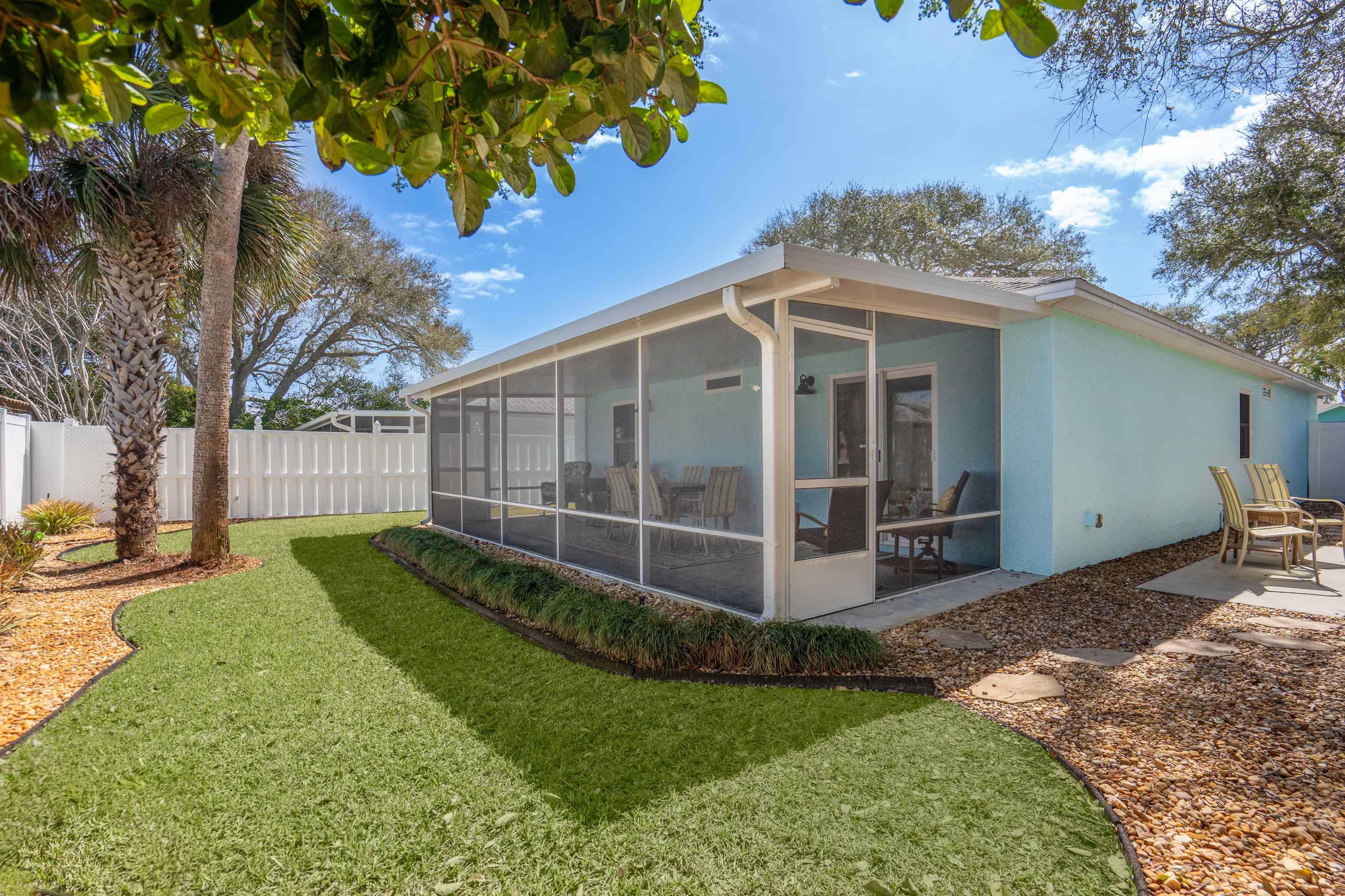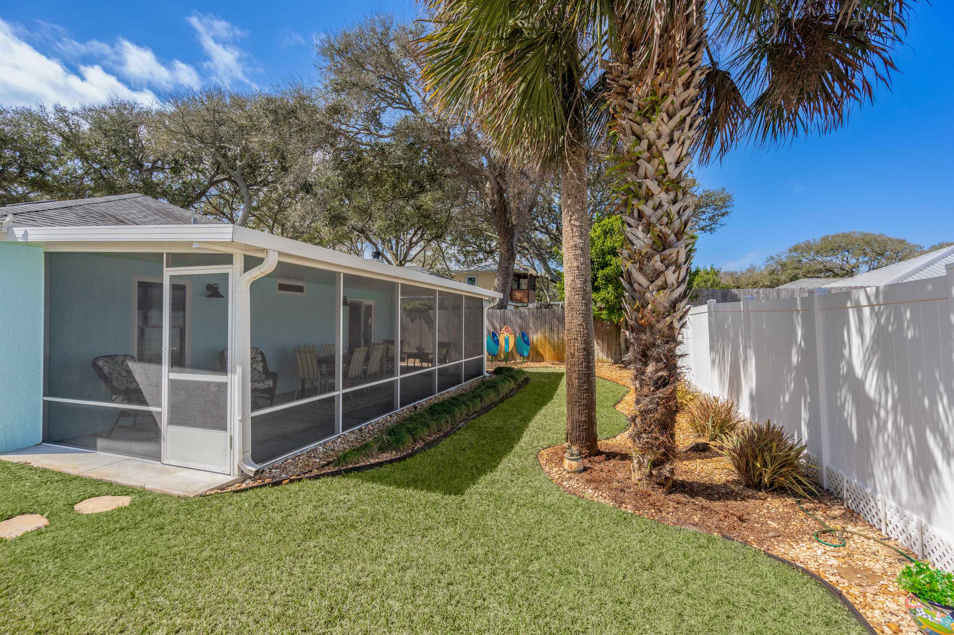 Tucked into the heart of St. Augustine Beach, along the area locals lovingly call the “Golden Mile” — where coffee shops, dining, shopping, and the shoreline all meet — 204 4th Street isn’t just a home, it’s a lifestyle measured in beach walks, morning coffee runs, and sunset bike rides to the shore. Step inside and you’ll immediately feel the difference. The vaulted ceiling creates an open, airy feel that adds character to the split floor plan. The open living area is welcoming and functional, grounded by sleek LVP flooring that’s both stylish and built for sandy feet. The layout flows effortlessly — three bedrooms, two full baths, and a one-car garage for beach gear, bikes, and boards. With a thoughtful split-bedroom floor plan, the kitchen and living area become the home's natural gathering place, offering great flow and connection while still providing privacy where it counts. Step through to the screened-in porch, and you’ll find the perfect in-between space: coffee at sunrise, dinner in the breeze, or a quiet place to unwind. The fully fenced backyard offers privacy, room for pets, and space to entertain under the palms — and with no HOA, you’ll enjoy making this property your own. The home also offers peace of mind, with some updates already completed, including the replacement of the HVAC (2019), water heater (2025), windows, and sliders — giving you more time to enjoy life and less time to worry about maintenance. Location is where this home truly shines. You’re just a short stroll from local favorites for coffee and shopping, restaurants, and live music, all within walking distance. The Atlantic shoreline is just moments away, offering morning surf sessions and evening walks along the sand whenever you please. This is beach living without compromise — no HOA restrictions, and a location that lets you park the car and live life to the fullest.