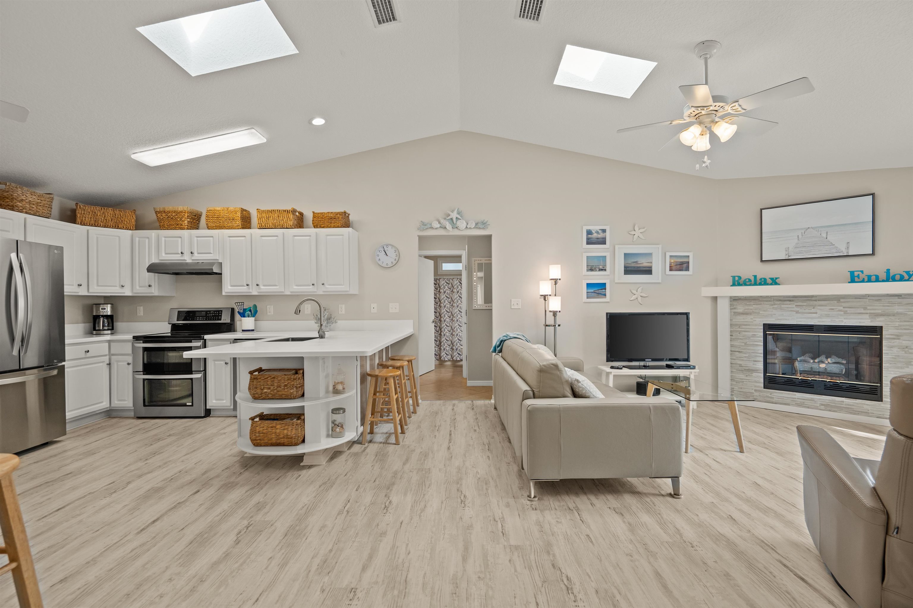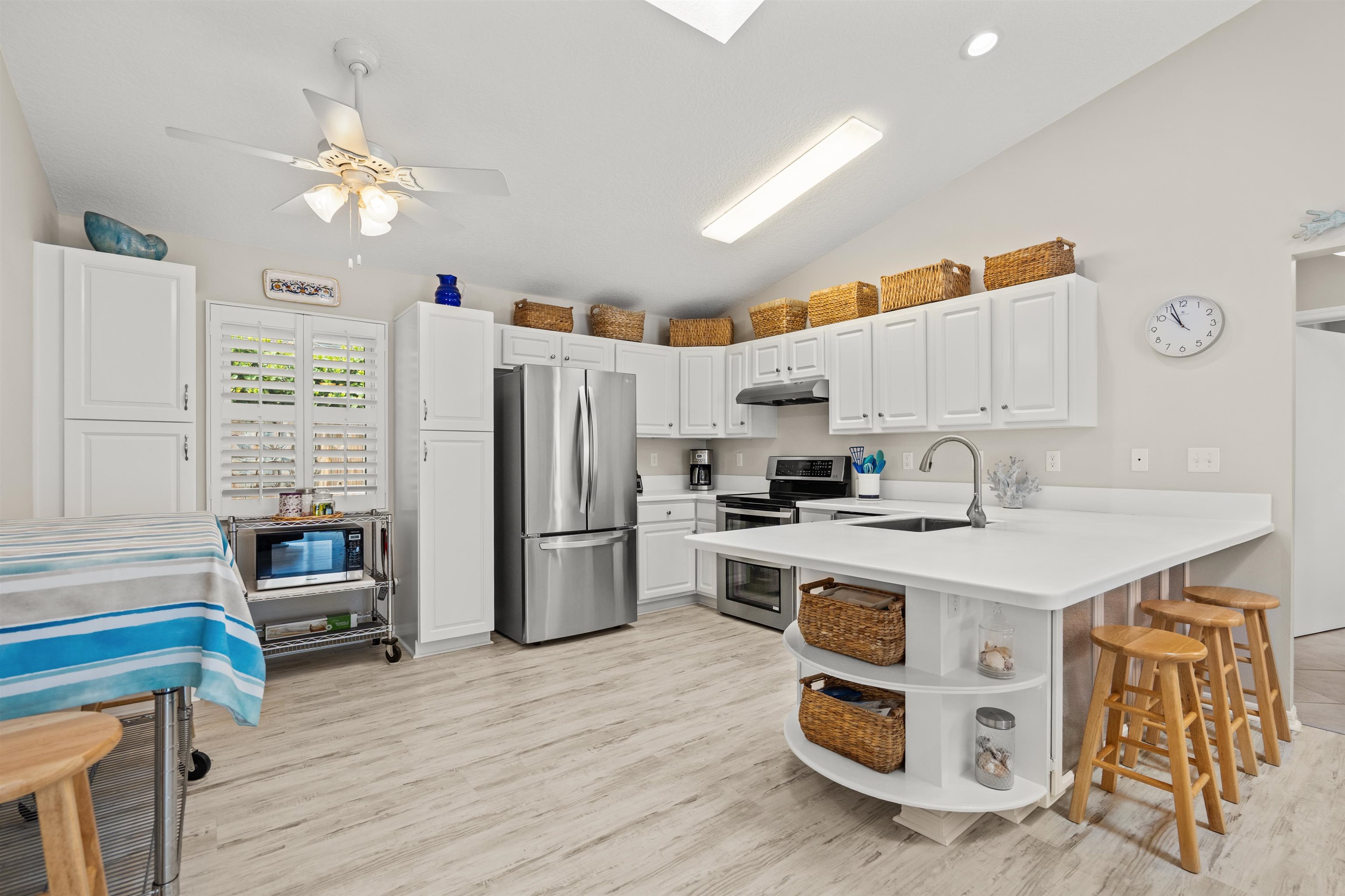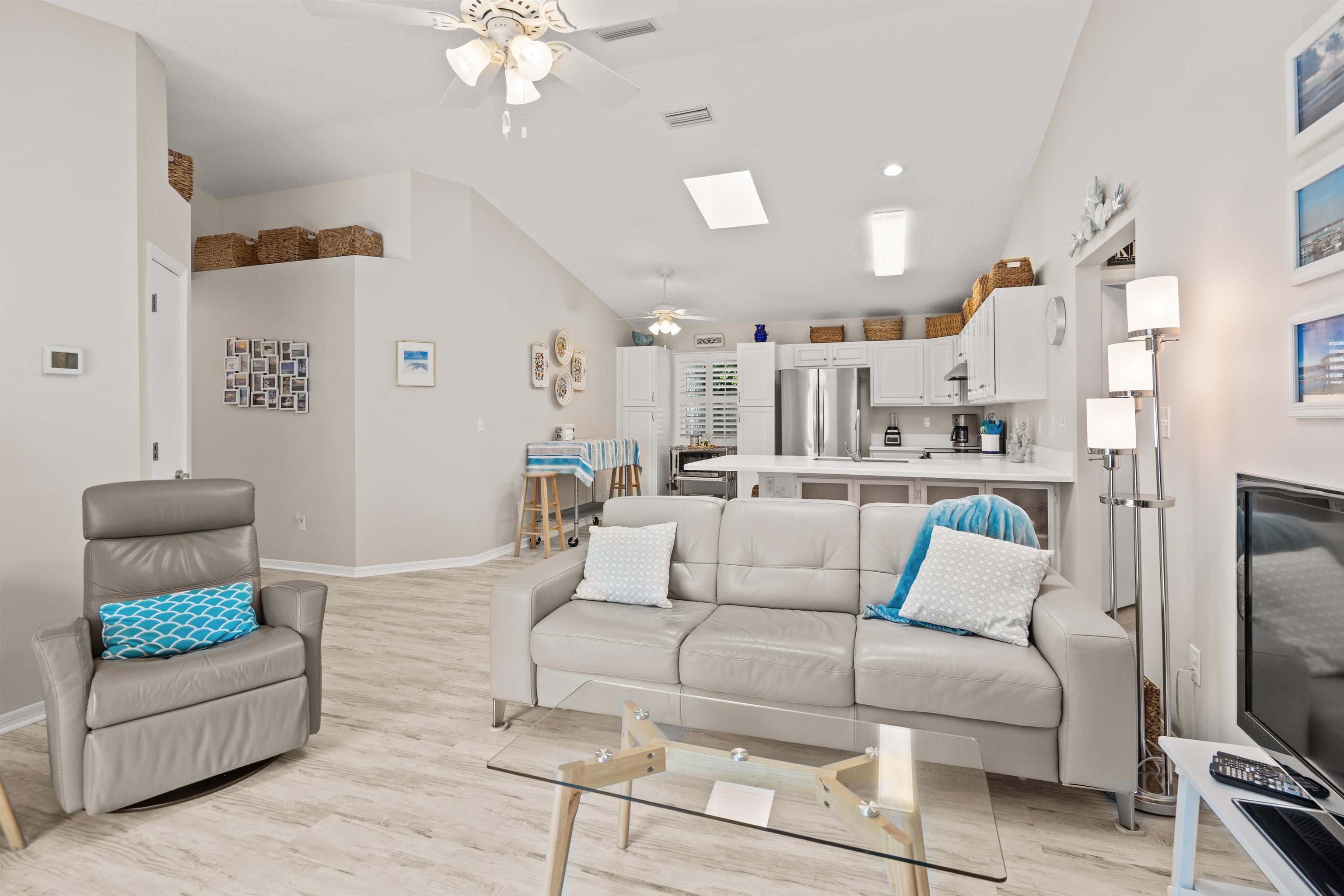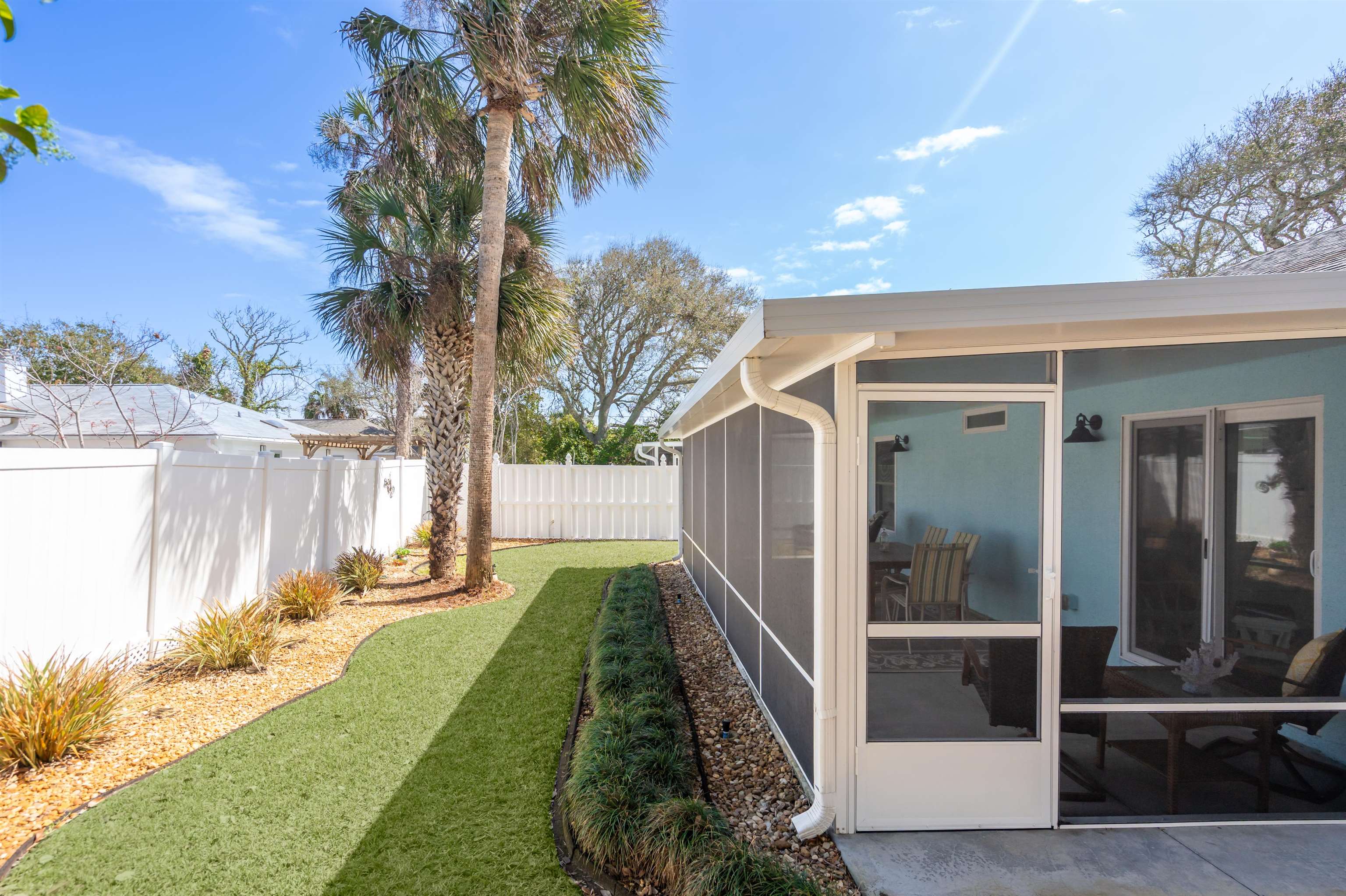 Tucked into the heart of St. Augustine Beach, along the area locals lovingly call the “Golden Mile” — where coffee shops, dining, shopping, and the shoreline all meet — 204 4th Street isn’t just a home, it’s a lifestyle measured in beach walks, morning coffee runs, and sunset bike rides to the shore. Step inside and you’ll immediately feel the difference. The vaulted ceiling creates an open, airy feel that adds character to the split floor plan. The open living area is welcoming and functional, grounded by sleek LVP flooring that’s both stylish and built for sandy feet. The layout flows effortlessly — three bedrooms, two full baths, and a one-car garage for beach gear, bikes, and boards. With a thoughtful split-bedroom floor plan, the kitchen and living area become the home's natural gathering place, offering great flow and connection while still providing privacy where it counts. Step through to the screened-in porch, and you’ll find the perfect in-between space: coffee at sunrise, dinner in the breeze, or a quiet place to unwind. The fully fenced backyard offers privacy, room for pets, and space to entertain under the palms — and with no HOA, you’ll enjoy making this property your own. The home also offers peace of mind, with some updates already completed, including the replacement of the HVAC (2019), water heater (2025), windows, and sliders — giving you more time to enjoy life and less time to worry about maintenance. Location is where this home truly shines. You’re just a short stroll from local favorites for coffee and shopping, restaurants, and live music, all within walking distance. The Atlantic shoreline is just moments away, offering morning surf sessions and evening walks along the sand whenever you please. This is beach living without compromise — no HOA restrictions, and a location that lets you park the car and live life to the fullest.