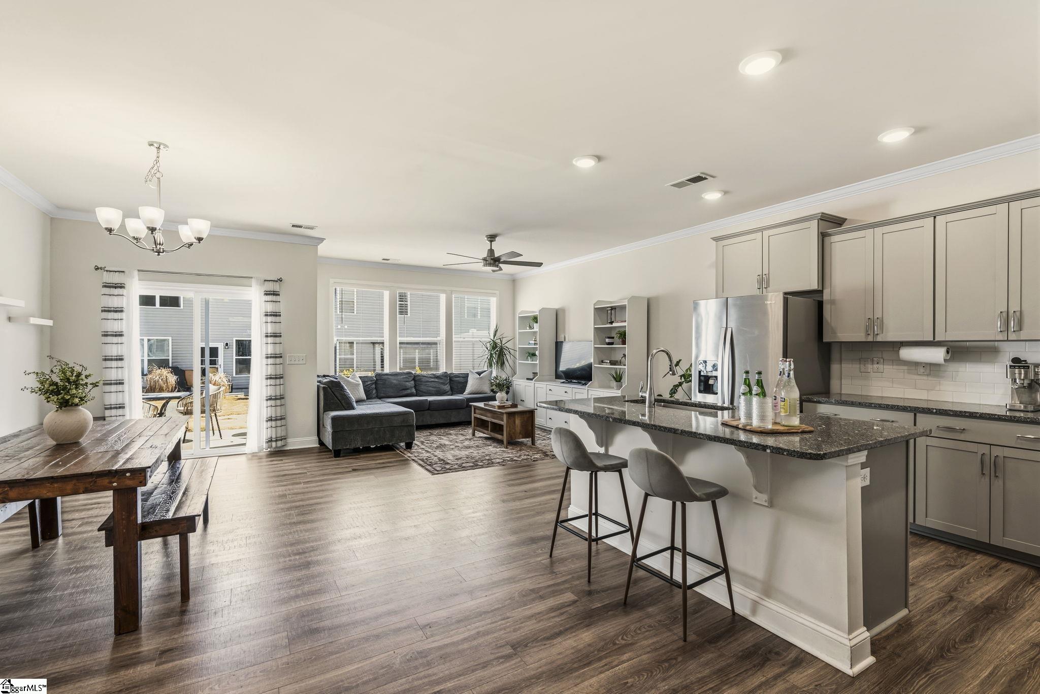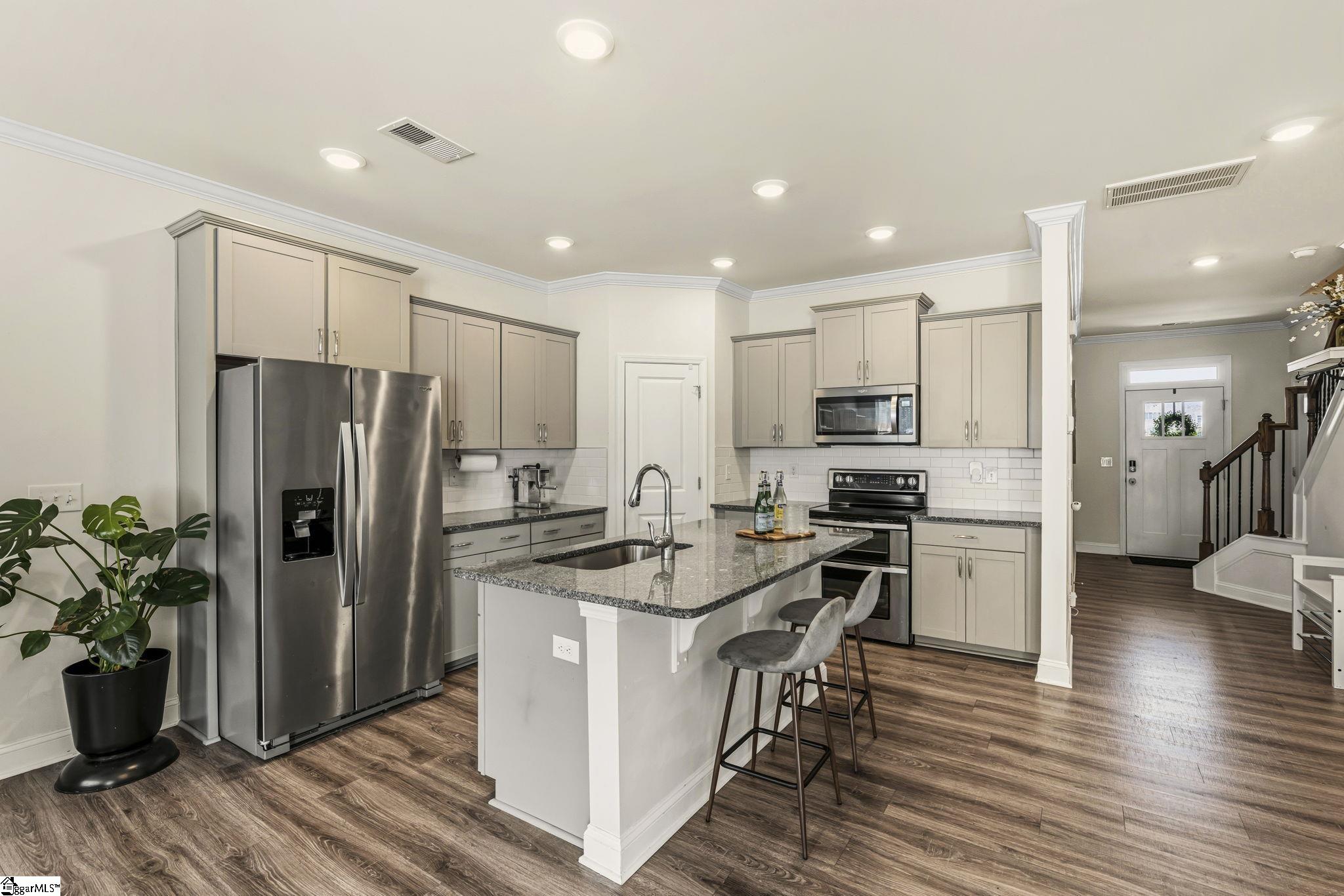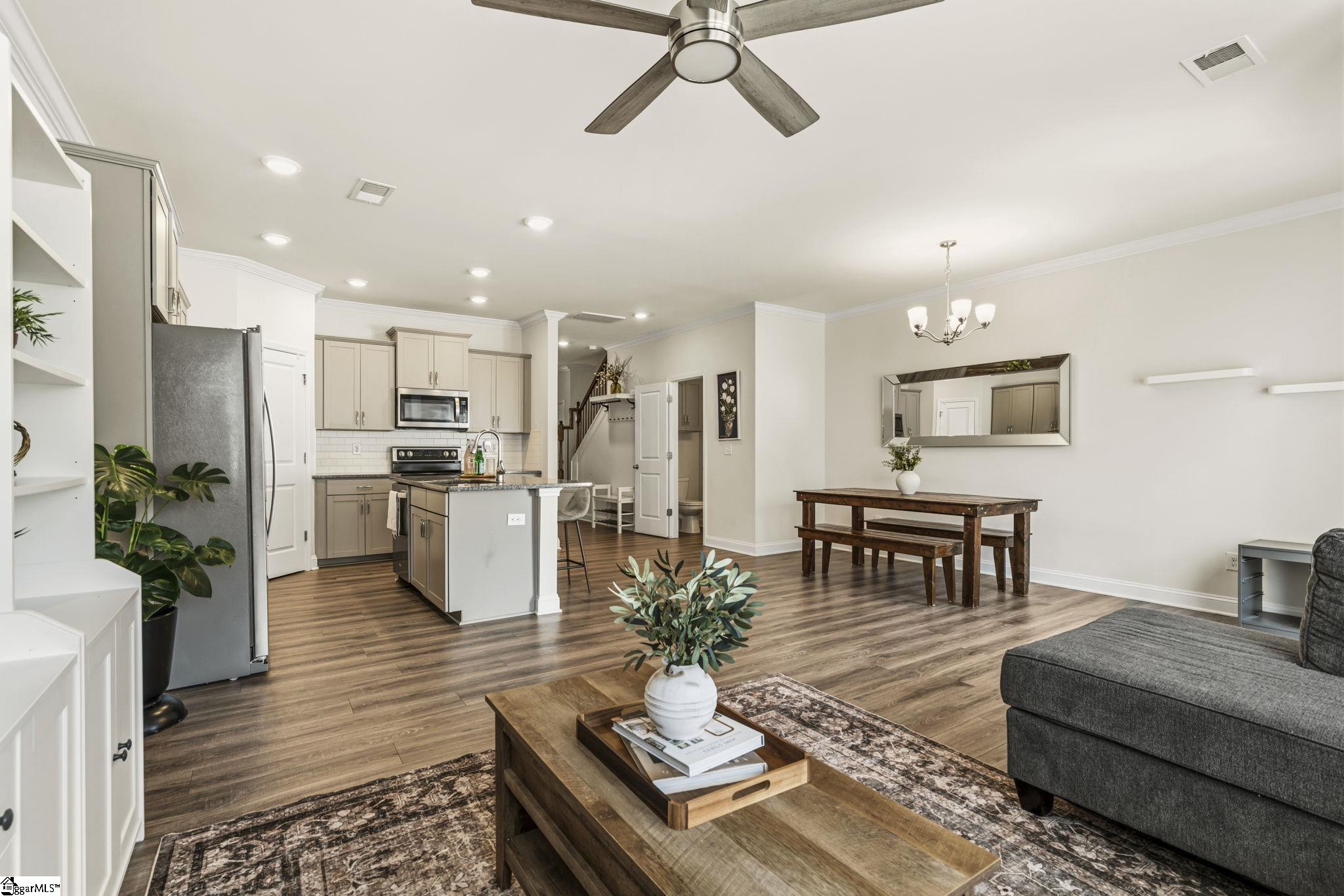**This home has a 2. 99% assumable mortgage. ** Welcome home to this beautiful townhouse in the desirable Sudduth Farms community. This home offers a functional layout and low maintenance living in a highly convenient location. Step inside to wood tone low maintenance laminate flooring that runs throughout the main level and an open concept floor plan designed for everyday living and entertaining. The kitchen features a large island with sink, granite countertops, stainless steel appliances, a double oven, and a spacious pantry for additional storage. The kitchen flows seamlessly into the dining area and living room, where large windows and sliding glass doors bring in plenty of natural light and lead to the back patio. A half bathroom and one car garage are also located on the main level for added convenience. Upstairs you will find the laundry room, conveniently located near all three bedrooms along with two full bathrooms, providing added convenience close to the bedrooms. The primary suite includes a walk in closet and an ensuite bathroom featuring a tile shower, double vanity, and a separate water closet. Two additional bedrooms and a full bathroom complete the second level. The home is located in the sought after community of Sudduth Farms. HOA dues include exterior maintenance, lawn maintenance, yard irrigation, common area with electricity, street lights, and access to neighborhood amenities including pickleball courts, a pool, playground, volleyball, and covered picnic areas. With an incredibly convenient location, just 7 minutes to downtown Greer, 8 minutes to GSP International Airport, and approximately 18 minutes to downtown Greenville, living here means easy access to shopping, dining, and everything the Upstate has to offer.