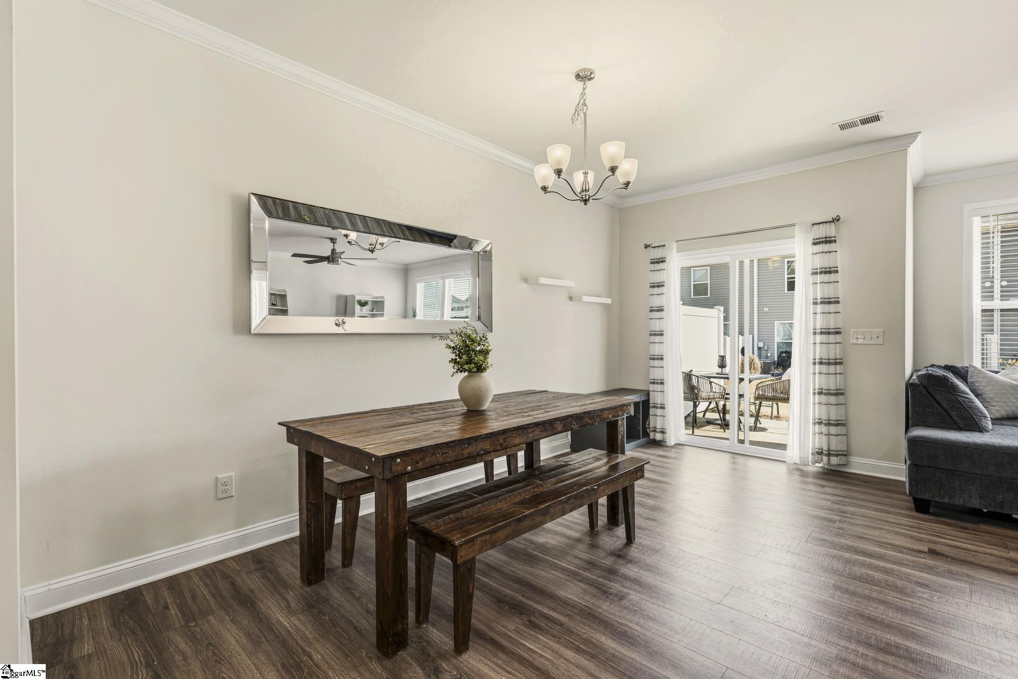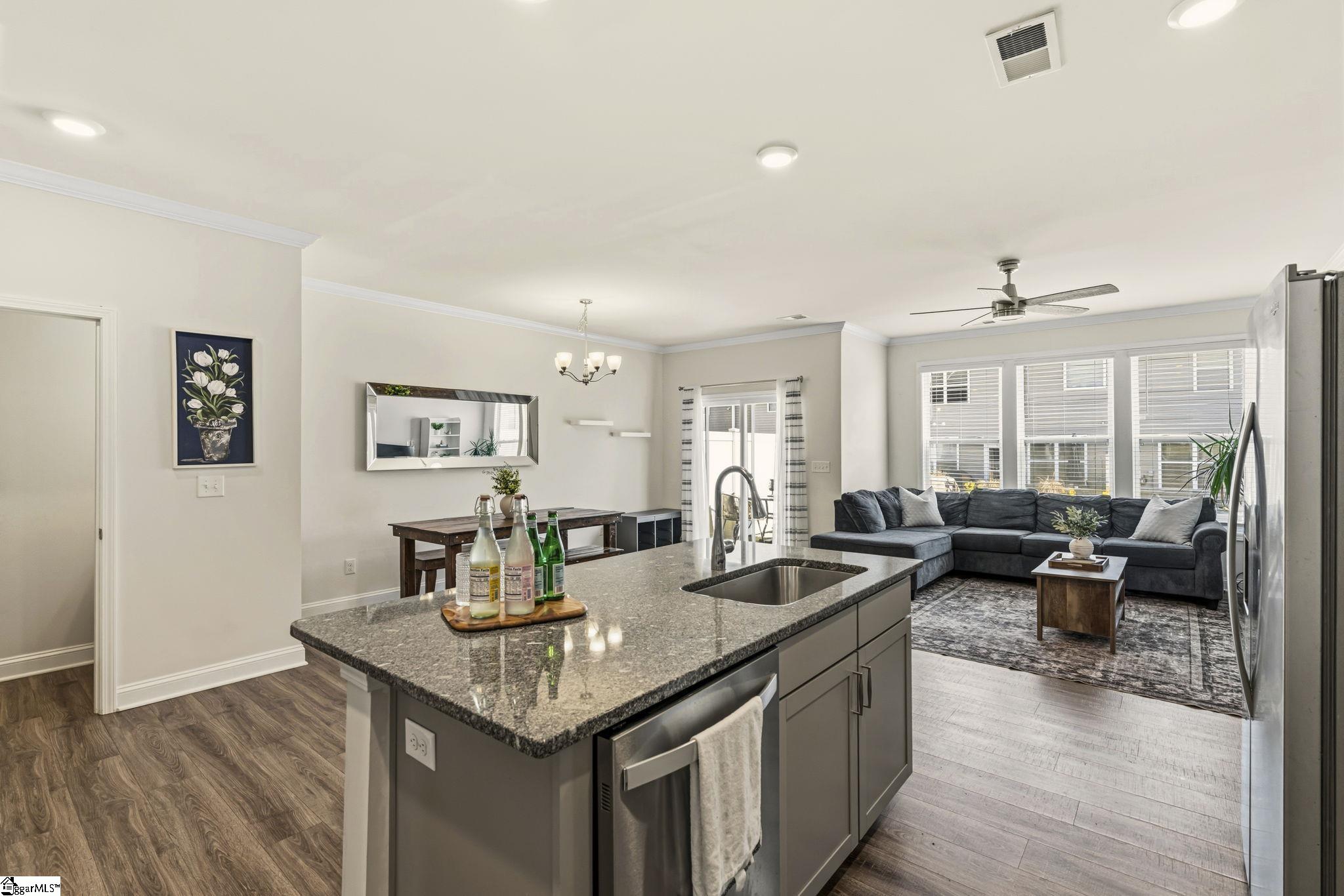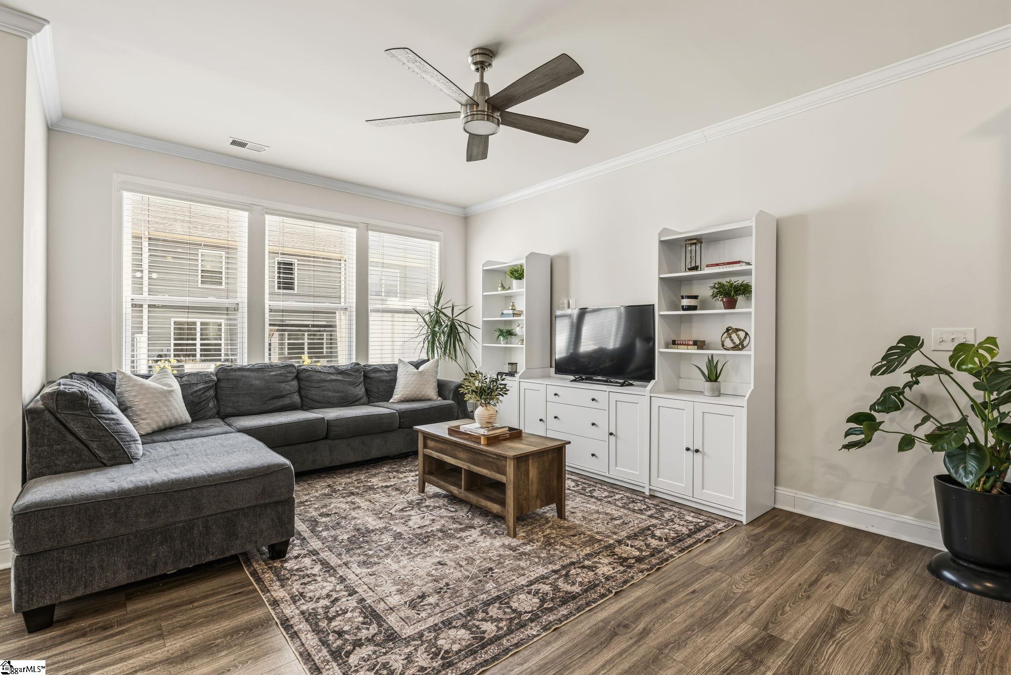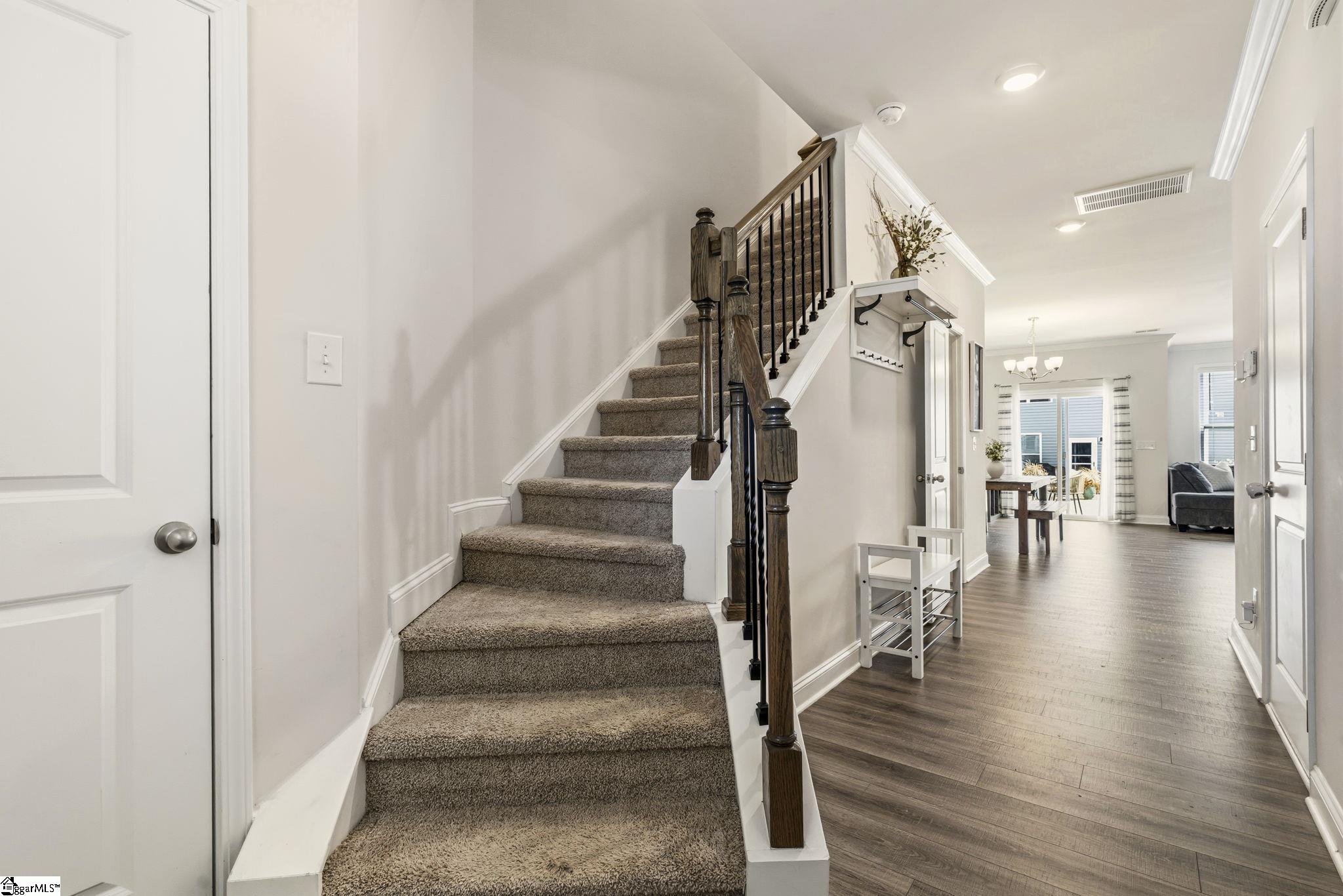 **This home has a 2. 99% assumable mortgage. ** Welcome home to this beautiful townhouse in the desirable Sudduth Farms community. This home offers a functional layout and low maintenance living in a highly convenient location. Step inside to wood tone low maintenance laminate flooring that runs throughout the main level and an open concept floor plan designed for everyday living and entertaining. The kitchen features a large island with sink, granite countertops, stainless steel appliances, a double oven, and a spacious pantry for additional storage. The kitchen flows seamlessly into the dining area and living room, where large windows and sliding glass doors bring in plenty of natural light and lead to the back patio. A half bathroom and one car garage are also located on the main level for added convenience. Upstairs you will find the laundry room, conveniently located near all three bedrooms along with two full bathrooms, providing added convenience close to the bedrooms. The primary suite includes a walk in closet and an ensuite bathroom featuring a tile shower, double vanity, and a separate water closet. Two additional bedrooms and a full bathroom complete the second level. The home is located in the sought after community of Sudduth Farms. HOA dues include exterior maintenance, lawn maintenance, yard irrigation, common area with electricity, street lights, and access to neighborhood amenities including pickleball courts, a pool, playground, volleyball, and covered picnic areas. With an incredibly convenient location, just 7 minutes to downtown Greer, 8 minutes to GSP International Airport, and approximately 18 minutes to downtown Greenville, living here means easy access to shopping, dining, and everything the Upstate has to offer.