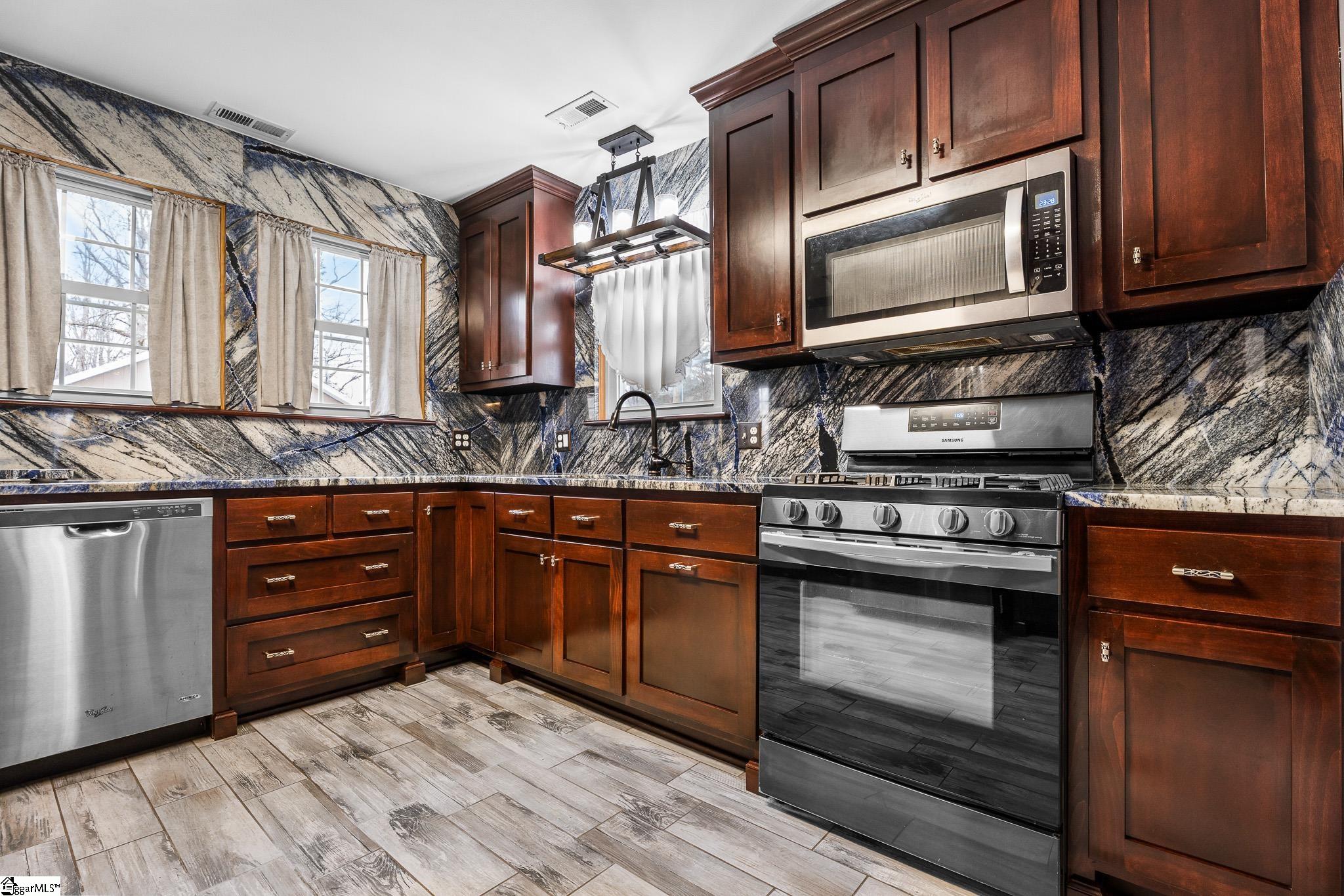 This fully renovated 3 bedroom, 1. 5 bathroom home sits on 2 peaceful acres and offers the perfect balance of privacy, quality craftsmanship, and convenience with no HOA. As you arrive, you are welcomed by a gated entry and a fully fenced front acre that is perfect for pets, outdoor living, or simply enjoying the space. The property also offers ample parking along with a 20x16 detached carport for covered parking or additional storage. Inside the home you will find thoughtful custom details throughout. The kitchen features granite countertops that extend all the way to the ceiling, custom cabinetry, and beautiful carpentry work that gives the space a unique and high quality feel. Custom barn doors add character to the closets and continue the craftsmanship you will notice throughout the home. The bright sunroom offers flexible space and includes a closet, making it easy to use as a fourth bedroom if desired. It has previously been used this way, but also works perfectly as a sitting room, office, or playroom. Step outside to enjoy the extended patio that provides a great space for entertaining, grilling, or relaxing while overlooking the property. The home has been well cared for with yearly pest reinspections and annual HVAC inspections to ensure everything remains in great condition. The crawlspace includes a moisture barrier and the attic has flooring installed across the entire area, providing easy access and plenty of additional storage. This property offers peaceful and private living while still being conveniently located near everyday amenities and only about 25 minutes from downtown Greenville. If you are looking for a move in ready home with land, privacy, and custom touches throughout, this one is worth seeing.