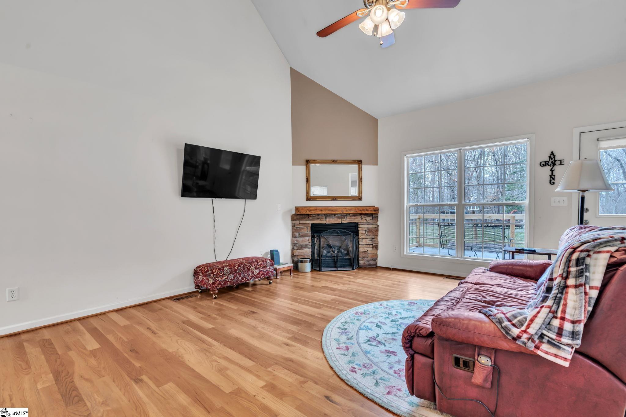 Rare opportunity in Chandler Place! A well-established neighborhood where homes rarely become available, especially with just over half an acre and a private backyard setting!!!! Walk inside to soaring vaulted ceilings, beautiful hardwood floors, and a stunning stone fireplace creating an inviting main living space filled with natural light. The kitchen offers stainless steel appliances, ample cabinetry, and an open layout that is perfect for entertaining. The spacious primary suite is highlighted by tray ceilings, a glass-enclosed shower, separate soaking tub, and double vanity with modern above-mount sinks and a spacious walk in closet! Upstairs, the bonus room with its own mini-split system provides comfortable year-round flex space ideal for a fourth bedroom, office, media room, or hobby area. A generous, unfinished walk-in storage room is located just across the hall for storage. Outdoor living truly shines here! The fully fenced backyard offers mature landscaping, lush lawn space, and exceptional privacy with no rear neighbors. A recently installed deck is perfect for entertaining or enjoying peaceful evenings overlooking the tree lined back yard and open farmland beyond. USDA eligible and outside city limits! A rare opportunity has become available in Chandler Place! Schedule your private showing today!