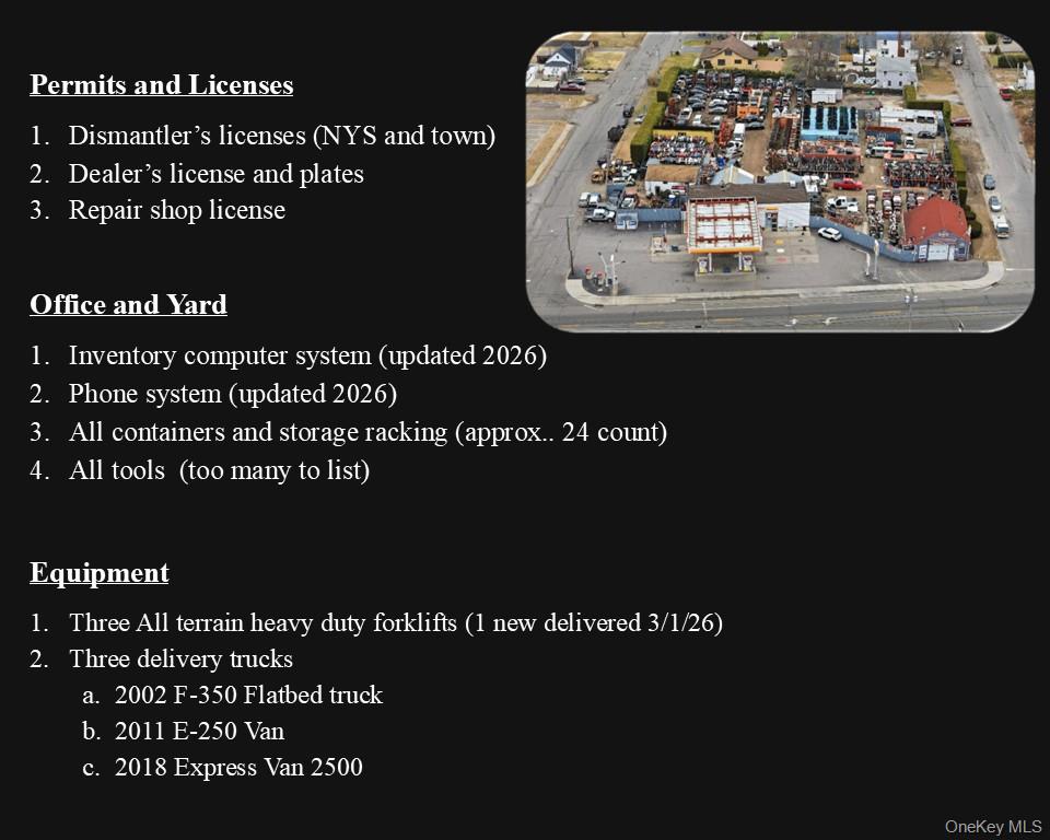 Generational auto scrap yard. A very active and productive, established business. Four connected lots zoned J-6 in the Town of Brookhaven. Located in the Hagerman Hamlet Center Overlay. Mixed-use/multifamily redevelopment potential. Part of Greater Bellport revitalization plan. Future sewer infrastructure planned. All inquiries welcome.