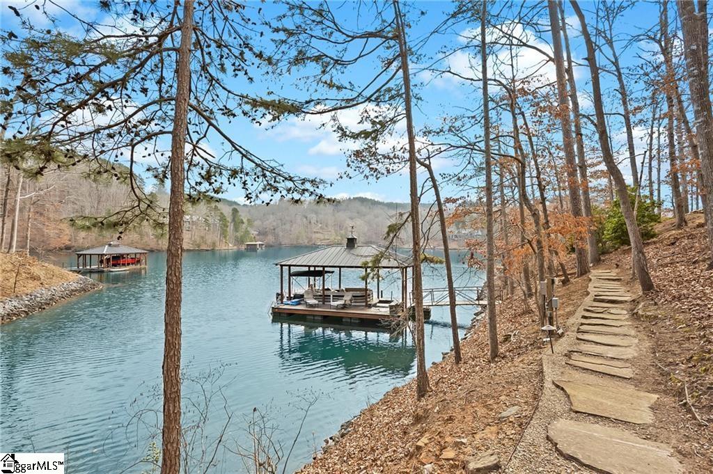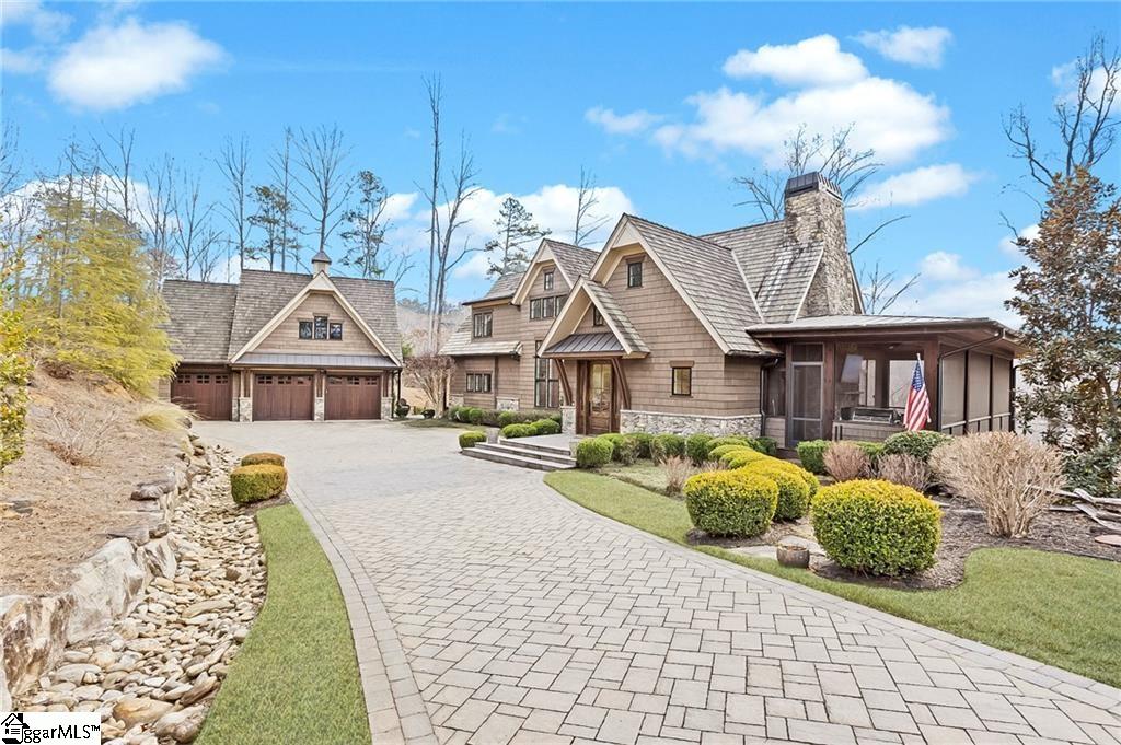 Nestled in the foothills of the SC/NC mountains, this property offers the owner tremendous peace and serenity. Located in the most elite community in the Upstate, The Reserve at Lake Keowee, this home is a short golf cart ride from the world-class 18 hole Jack Nicklaus Signature designed golf course and exquisite dining venues and community amenities. within its gates. It is a custom-built Craftsman style 4-bedroom, 5. 5-bathroom 5300 sf home on 1. 76 private, wooded acres on the shores of what many consider THE most beautiful lake setting in South Carolina, Lake Keowee. The grounds are a blend of unique, sustainable landscaping with year-round beauty including dogwoods, redbuds, hydrangeas and wooded privacy. The home itself is situated to avoid a steep driveway like many mountain homes have to make walking the dogs easy. Step inside to discover soaring ceilings and exposed beams in the Great Room, complemented by sliding glass doors that draw your eyes to the shimmering lake view. The open-concept kitchen, with a french country flair is outfitted with high-end appliances—including a dual-fuel range—two dishwashers and a gas cooktop. The spacious island and quartz and granite countertops are perfect for everything from an intimate breakfast to an elaborate buffet. The living room and grand fireplace invite relaxation, while the adjoining dining area with a lake view, opens up to an expansive deck and screened-in porch, ideal for both quiet moments overlooking the beauty of Lake Keowee and for entertaining. The main floor also features a luxurious Owner's Suite with fireplace, cathedral ceiling, private deck, and custom closets. The spa-like bathroom includes a stunning shower and a beautiful water view. Take the handcrafted stairs or the elevator that services all three floors to the loft office space and a private en-suite guest room, again all with lake views. The lower level is a complete entertaining area with a spacious living room, bar sink, wine cellar, sauna, exercise room, and an additional en-suite guest room, both with direct access to the deck which has a built-in hot tub overlooking the beauty of Lake Keowee. Additional features include plenty of storage space, a second pantry, and a second laundry area. Above the three car garage (with ceiling heights tall enough to fit hydraulic lift car stackers to make it a six car garage), the guest apartment is currently used as a fantastic sports bar/man cave and music studio. It has a full bathroom including a steam shower, a private office and can also be a home gym, home theatre, apartment, studio or spacious storage area. The bathrooms throughout the home were beautifully designed by Circles and Squares Studios, showcasing stunning tile layouts. The property features four distinct outdoor seating areas, including a peaceful meditation garden, a lakeside fire pit, a mid-path dining area, and a stone bench by the water. As a resident of the Reserve, you’ll have access to over $100 million in top-tier amenities, including the Jack Nicklaus Signature Golf Course, Practice facility, the Orchard Clubhouse with fine dining, a Fitness Center, hiking trails, Har-Tru clay tennis courts, lawn tennis, a pool and cabana, a village market, pickleball courts, and a marina. Owner may be willing to include some furniture. This is the home of all homes in The Reserve. Come see it soon. Reserve membership fee of $85, 000 due at closing.
