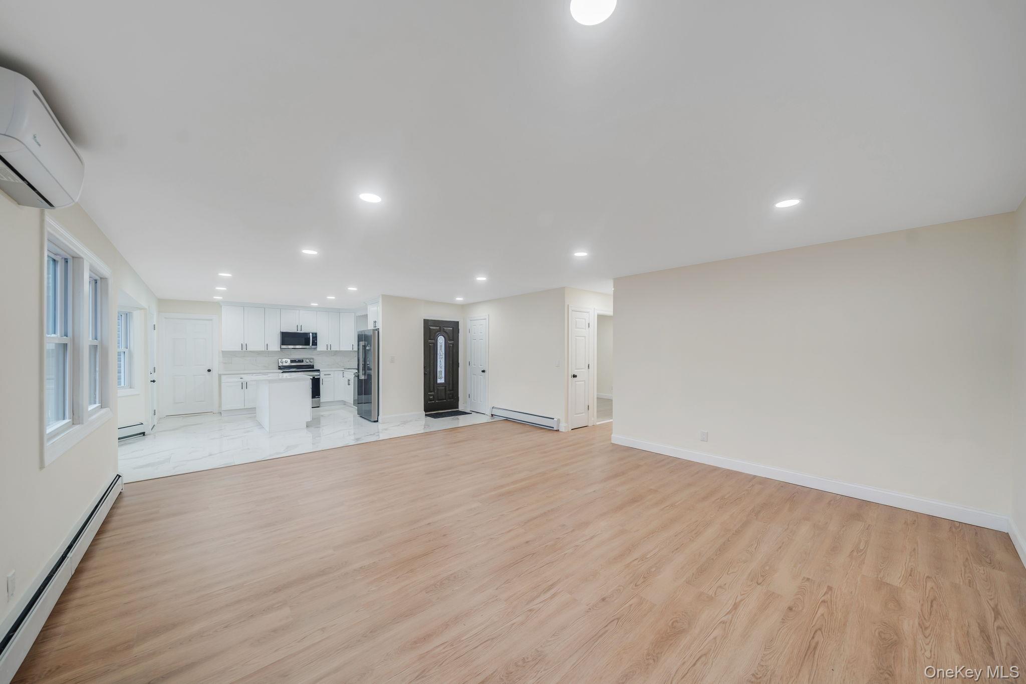 Renovated Open floor plan Ranch 4 Bedrooms, 2 Full baths. Brand new kitchen, new bathrooms, New flooring, granite countertops, new Led hi hats, New Roof, Vinyl siding, Gutters, All new Windows, Brand-new stainless-steel appliances, new heating unit & A. C split unit, master bedroom with walk in closet, front entrance pavers, Lot of space for storage, Washer Dryer hook up, 2 side entrances, large driveway, large backyard, Low Taxes. Close to highways and railroad.