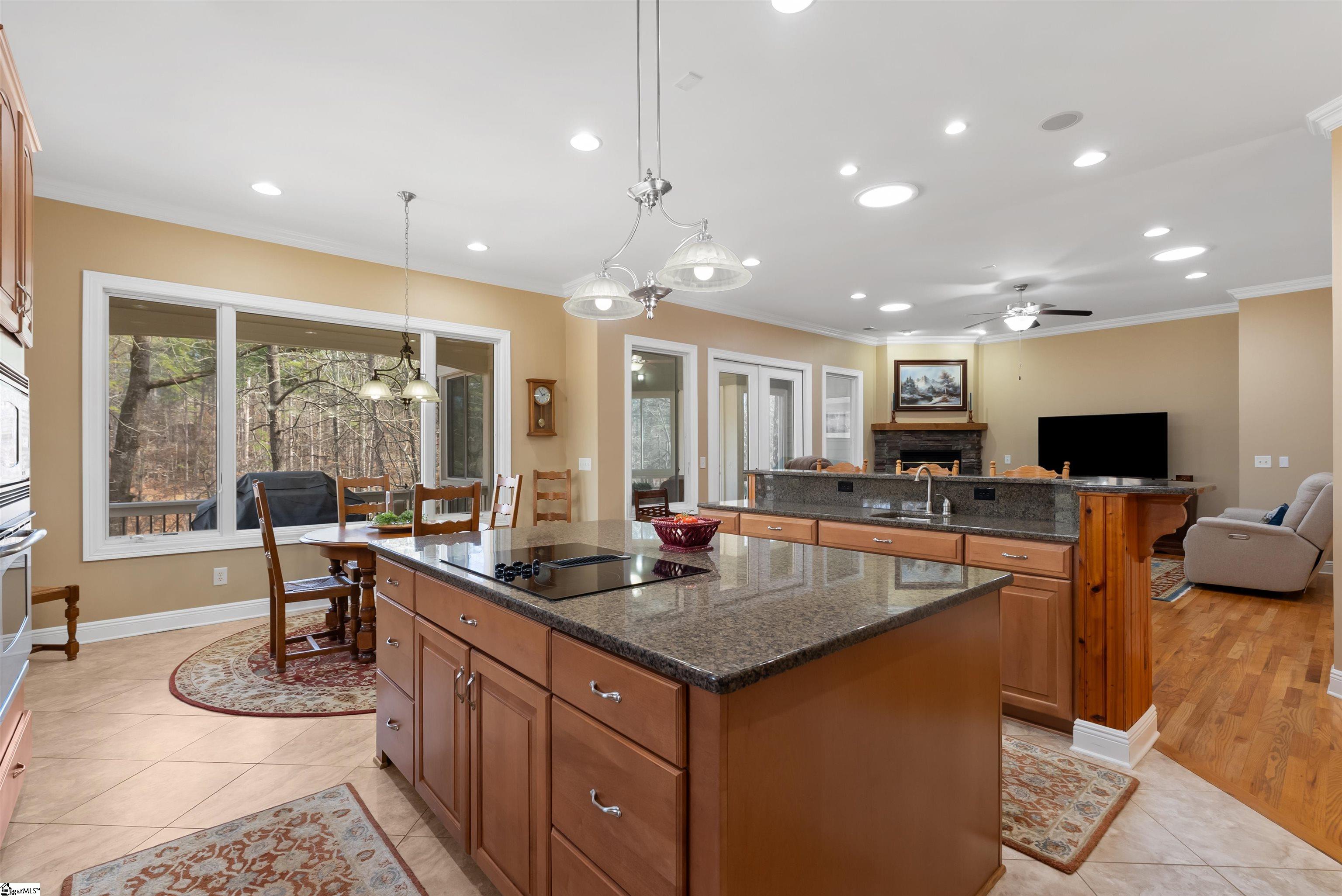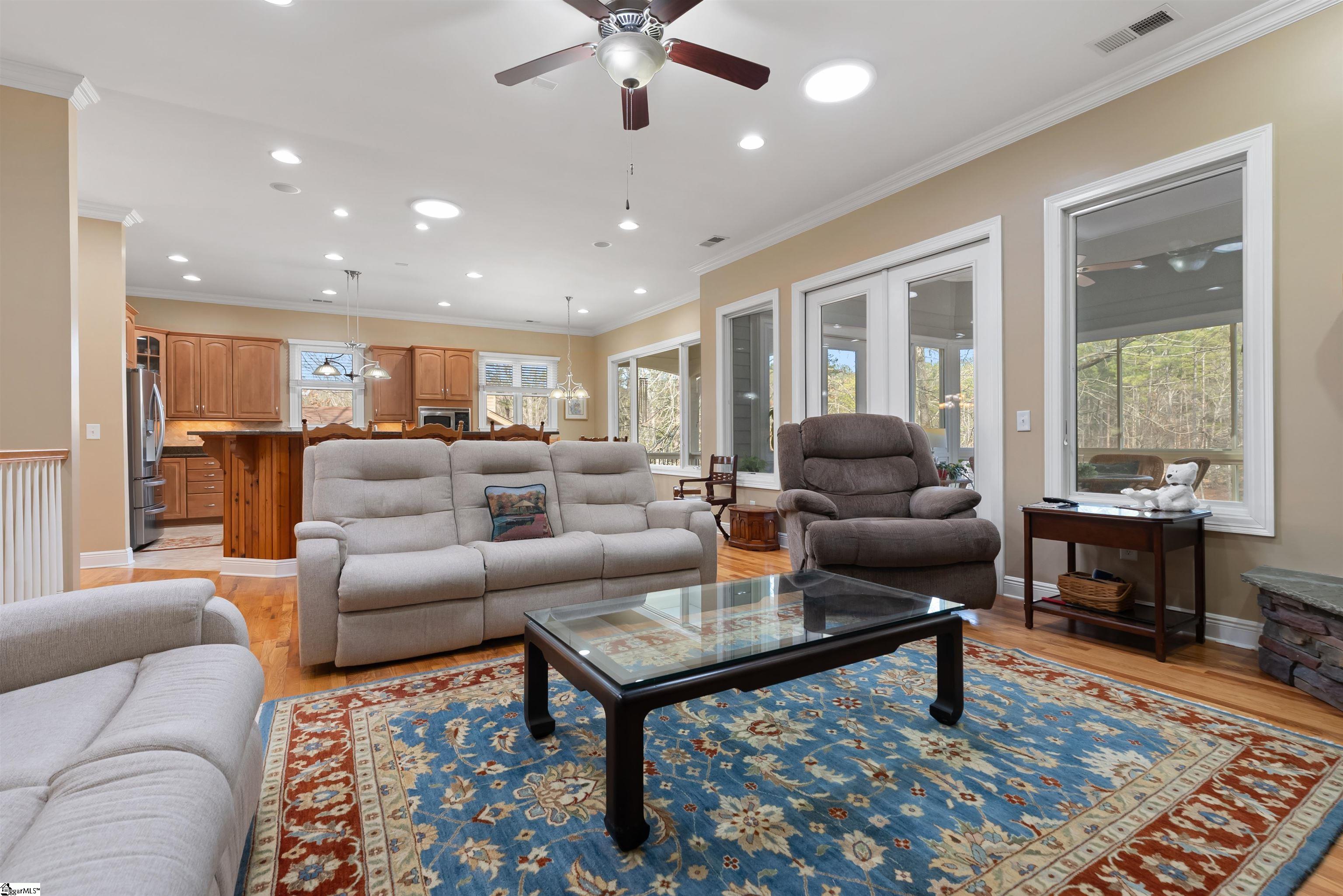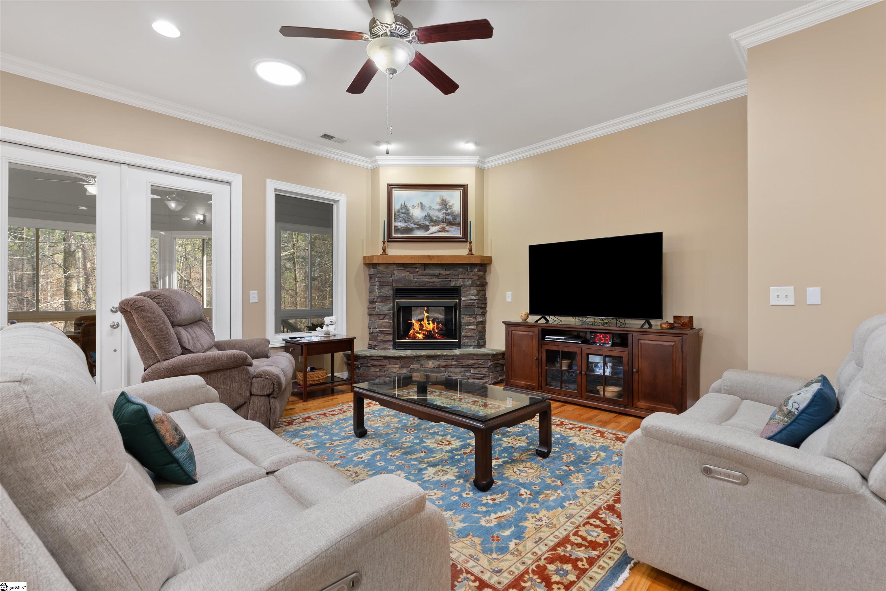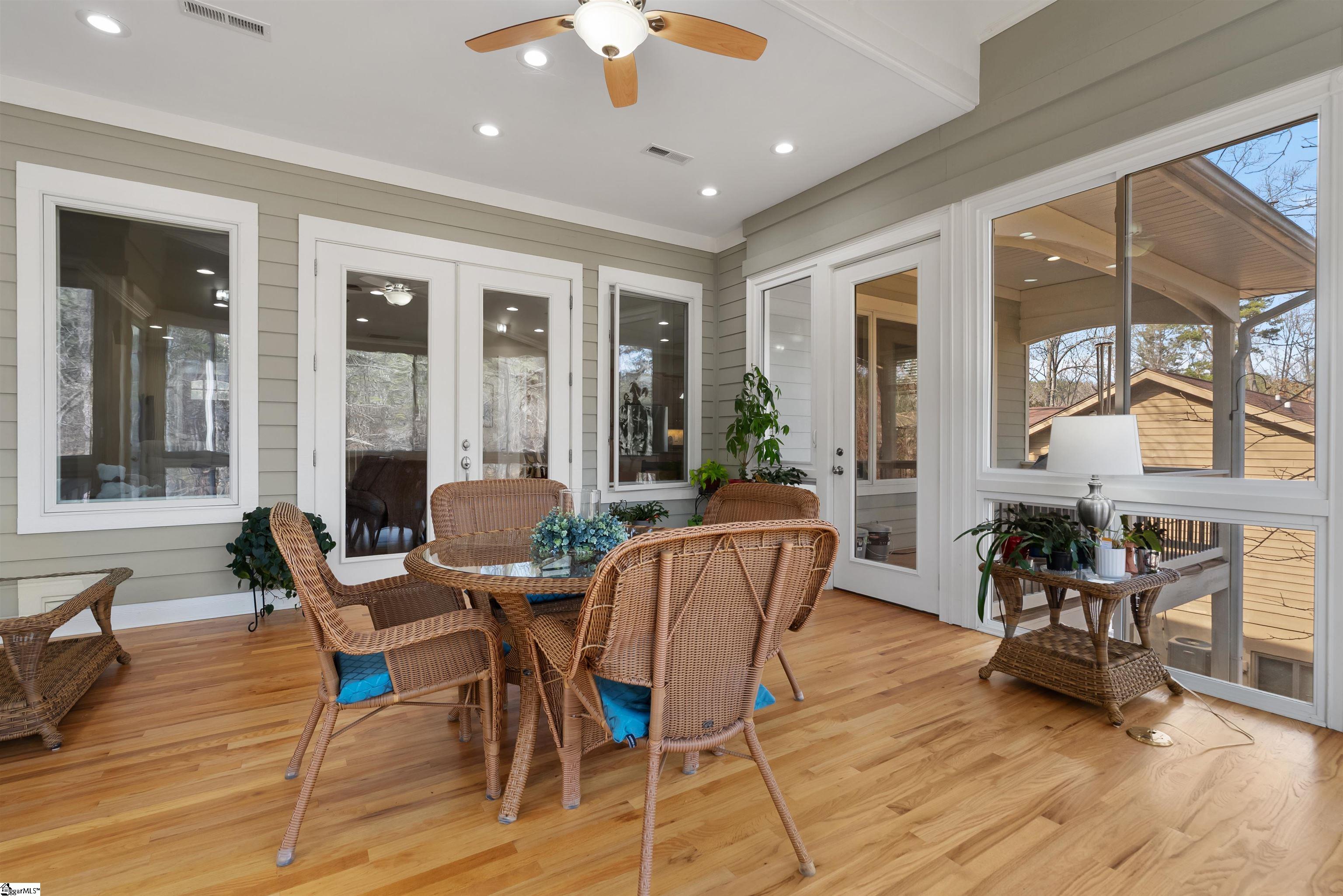 Set within the gates of Keowee Key, this well-appointed golf course view home offers comfort in an entertainment friendly design. Overlooking the 2nd hole of this refined, George Cobb designed golf course, enjoy manicured fairway views and natural privacy from both indoor living spaces and outdoor gathering areas. A welcoming approach leads inside to a bright, inviting foyer. Glass French doors lead to the office at the entry with direct access through to a morning porch at the front of the home. Vaulted ceilings with a rear wall of windows flood the living room with natural light. A corner gas fireplace anchors the open living design that extends across the main level to the kitchen. The kitchen is the focal point of any great home. This large open space offers dual islands with an eat-in kitchen design. Whether a quick bite at the bartop or enjoying a sit down meal overlooking the golf course, the family chef will love the plentiful cabinet storage with working counter space. A formal dining room is also a part of the plan for those larger holiday gatherings. The house favorite is the enclosed sunroom. Year-round enjoyment can be had with an octagonal design that takes in the golf course views spanning down the fairway. The main level primary suite features two walk in closets, outdoor access to a private rear deck and a spacious owners bath. Enjoy a large walk-in tile shower, elevated vanities with granite counters and a spa bath at the window. The terrace level features a second living or recreation area. There is a partition designed for a future fourth bedroom however the current owner decided to leave it open for seating space. Two guest bedrooms and two full guest bathrooms, one on each end, feature high ceilings and spacious storage. A lower patio overlooks the open yard offering additional outdoor entertainment area for family and friends. A true standout amongst the rest, 28 Anchorage Lane at Lake Keowee offers a variety of living space with the comfort of home. Keowee Key offers a resort driven lifestyle with an 18-hole golf course, fitness and racquet center with 14 tennis and 8 pickleball courts, walking trails, dining options, multiple marinas with fuel docks, a private swim beach, outdoor pools, and a 24-meter heated indoor pool. Under the direction of a new chef and community general manager, the social calendar, dining, and events are better than ever with three menus plus a plethora of activity clubs and events. Conveniently located just 20 minutes from Clemson University, one hour from Greenville, two hours from Atlanta, and 90 minutes from Asheville.