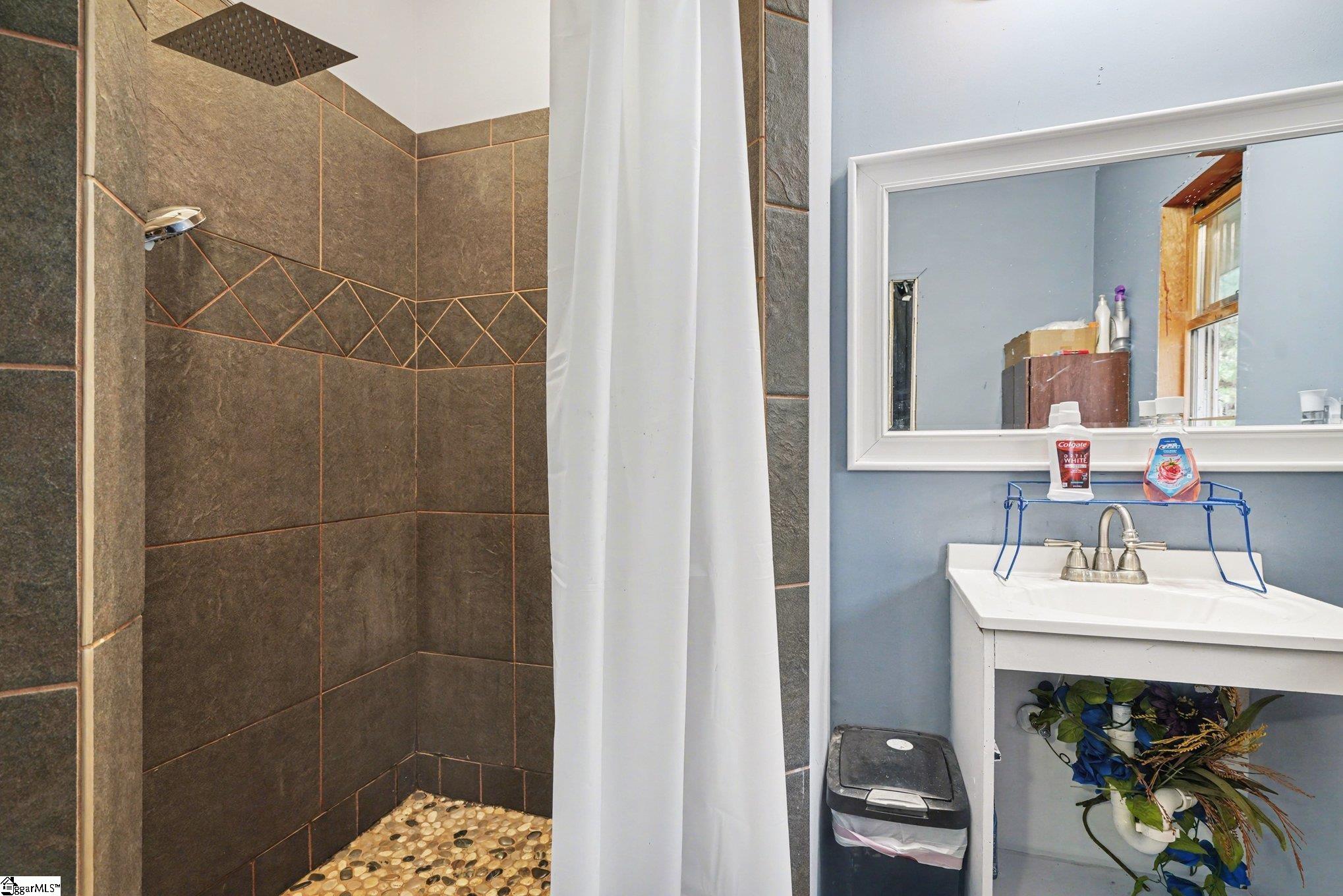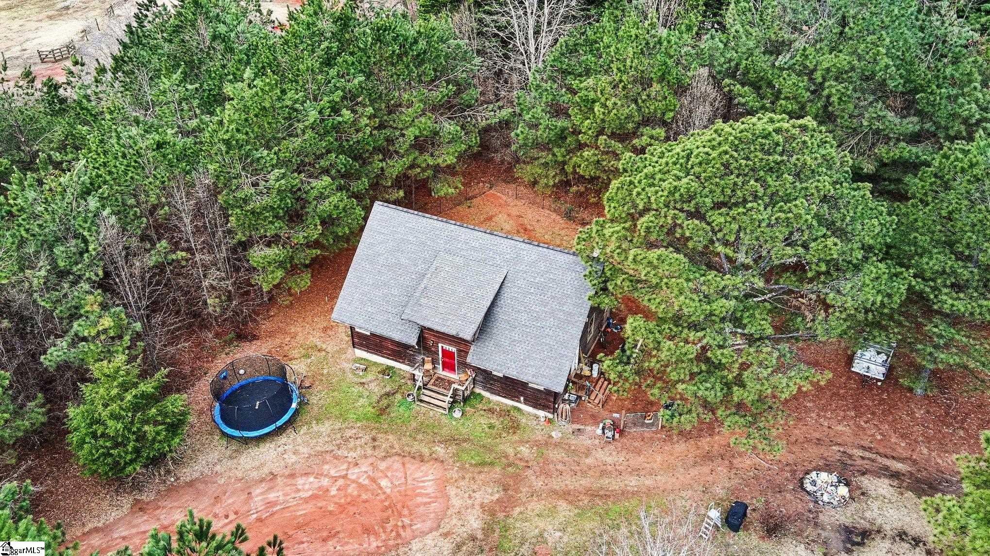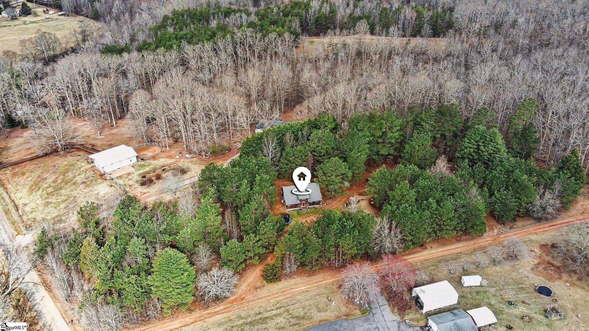 Set on FIVE PEACEFUL ACRES in the quiet countryside of Pickens, this home blends privacy, natural beauty, and comfortable living. This residence offers a thoughtfully designed layout with a main-level primary bedroom, 1. 5 bathrooms, and a bright, open living area. The interior includes five total rooms, featuring a cozy living space, a well-proportioned primary suite, and a convenient main-floor laundry area. Large windows and the surrounding wooded acreage create a serene, retreat-like atmosphere throughout the home. Outdoors, the expansive 5 ACRE LOT provides endless possibilities—gardening, hobby farming, trails, or simply enjoying the quiet of rural South Carolina. Despite its private setting, the property remains within a reasonable drive of Pickens, Easley, and Greenville. This property MIGHT BE eligible for subdividing, BUT THE BUYER AGENT/BUYER MUST VERIFY THIS WITH PICKENS COUNTY AND THEIR OWN SURVEYOR. Separate power hookup and second septic already installed near barn. New mini split system installed in 2026! Home also has a large unfinished attic!