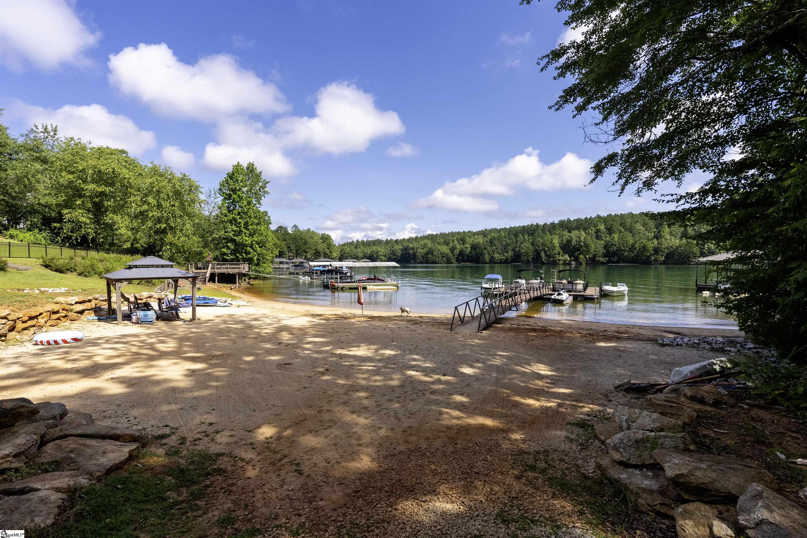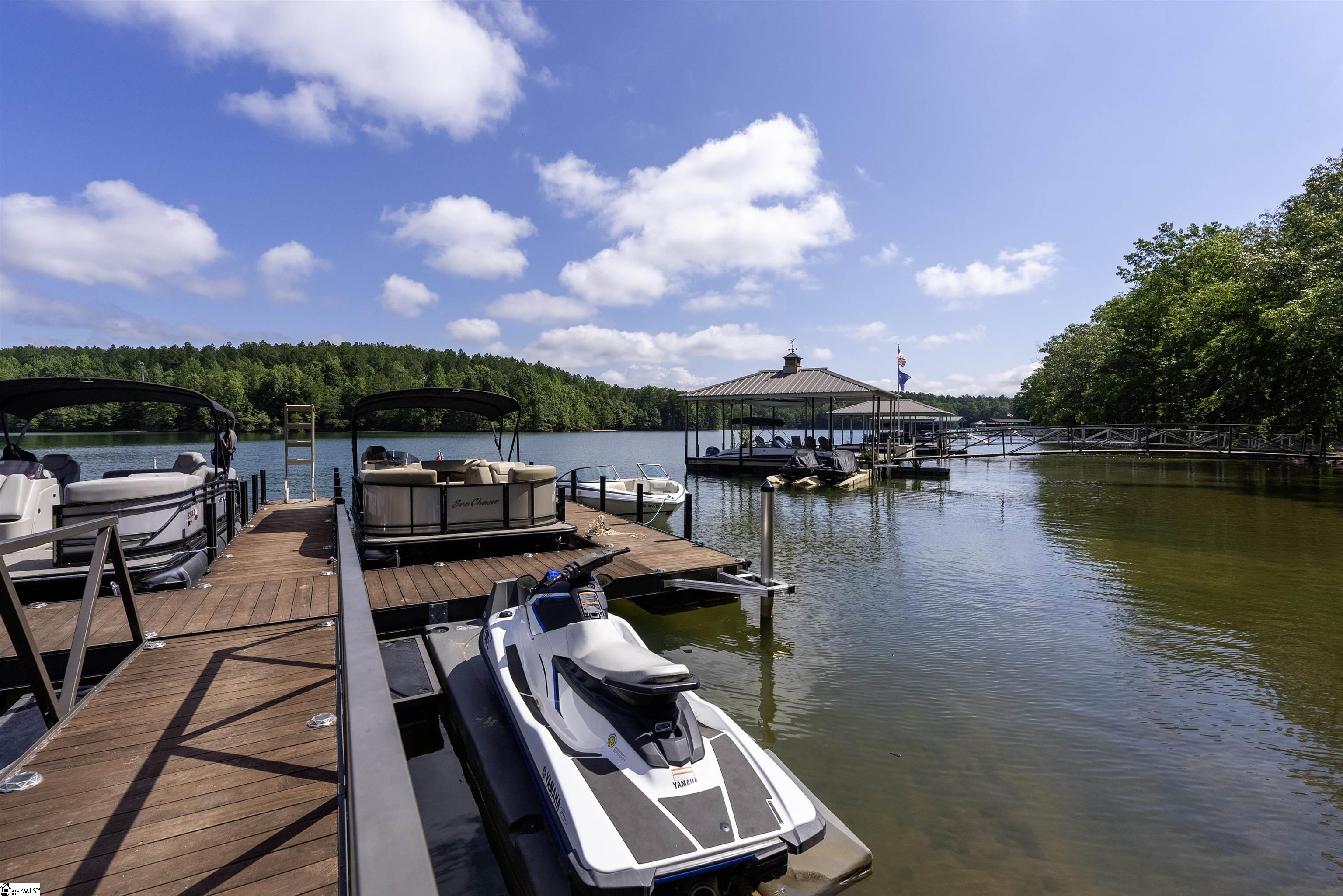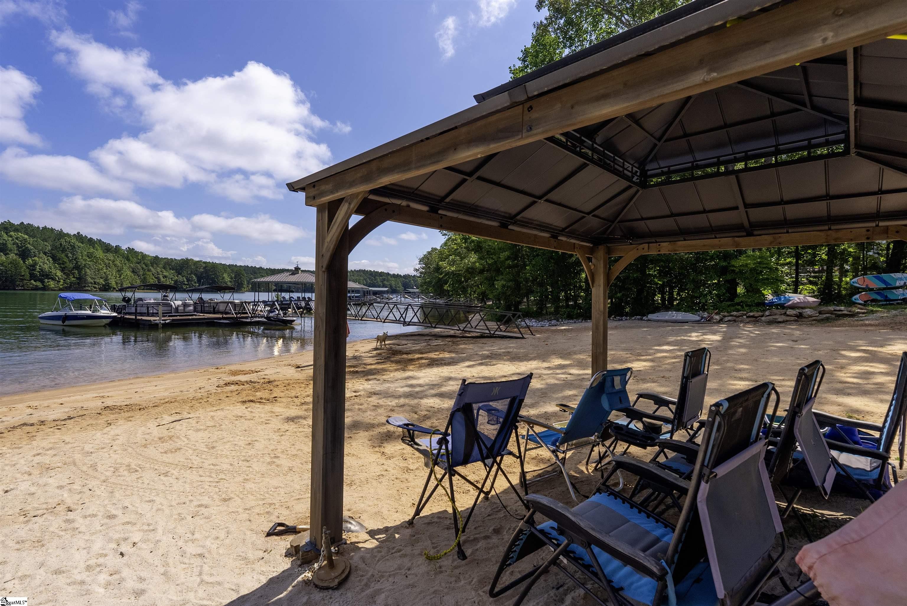 GREAT INCOME POTENTIAL : : Nestled in a deep-water bay, this two-bedroom getaway includes a private Lake Keowee slip dock. Relax among the private sandy beach and moor your boat in the dock just steps away from your very own back deck—perfect for sunning, swimming, or revving up for a day on the shores of Lake Keowee. Enjoy two levels of outdoor living with a main-level open deck and a terrace level patio below. The entire lakeside offers peaceful, open water views and space to relax or entertain. A gravel path and gentle grass yard leads to your dock by foot or golf cart. With no stated annual HOA fee and just $225 per unit annually for shared lawn maintenance, this property is an easy keeper for both investors and personal use. This short- and long-term rental friendly townhome offers Lake Keowee waterfront living at a great value. Located just minutes from downtown Seneca and less than twenty miles from Clemson University, this quaint gem checks all the boxes for location, lake access, and investment potential. Just around the corner is High Falls County Park, a 46-acre lakefront park packed with amenities including picnic shelters, boat ramps, fishing pier, tennis and basketball courts, a swimming area, miniature golf, and more. ** A/C installed February 2022, Dock April 2021, Roof and Siding September 2020, New asphalt parking and drive July 2024, Decks and Front Walk October 2020 and Septic July 2023 **