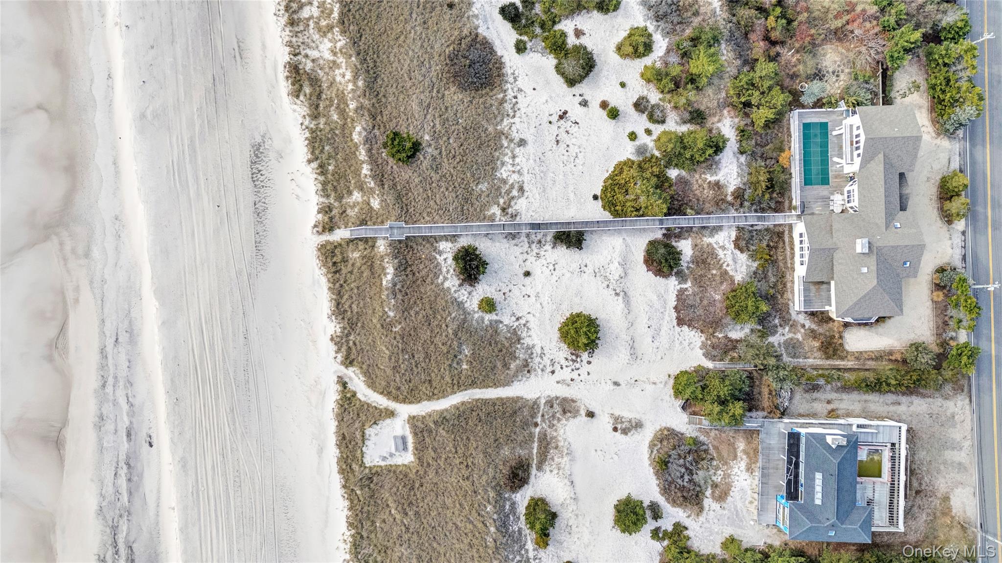 Waterfront Mediterranean Luxury! Sprawling Oceanfront home on prestigious Dune Rd. Sun-filled and spacious w/1st and 2nd floor primary suites. This home has open floor plan with chef's kitchen, top of the line appliances, large dining room, over-sized living room w/fireplace, 2nd floor den w/fireplace, and 3 additional en-suite guest bedrooms. Generous mahogany decking surrounds heated pool with spa. A private walkway to the Ocean completes this resort-like setting.
