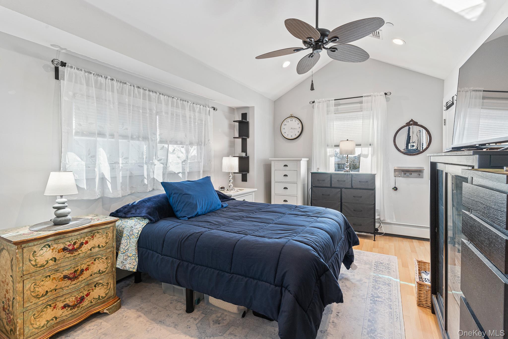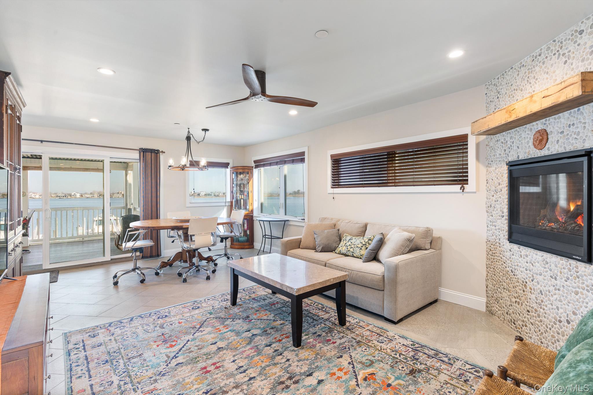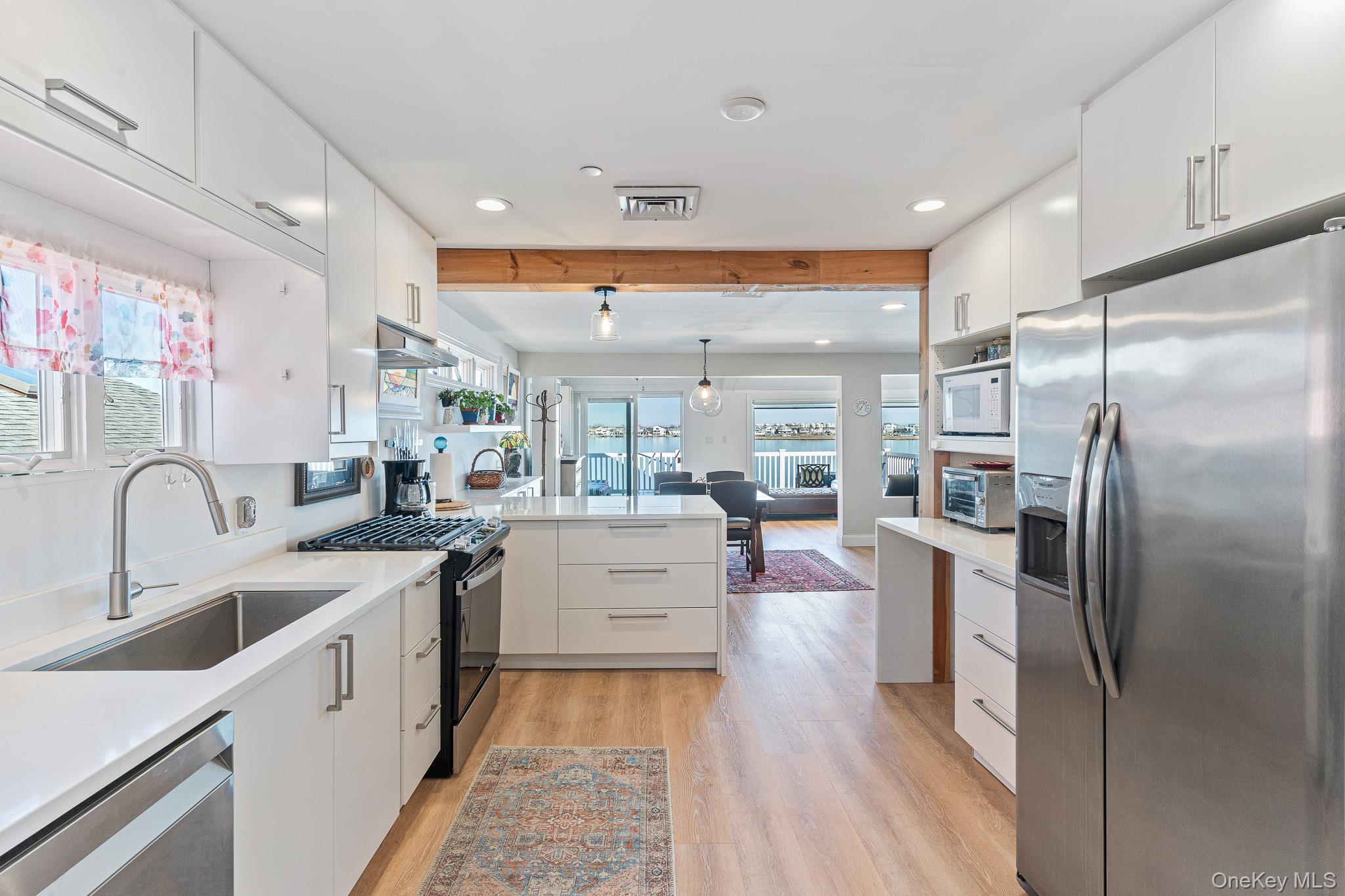 Located on a quiet “lollipop” street just three homes from Bay Colony Beach, this FEMA-compliant Hi-Ranch offers beautiful open-bay views and exceptional waterfront living. The property features a 40' raised bulkhead on Baldwin Harbor with a pier, float, and boat lift, perfect for boating enthusiasts. The front paver driveway accommodates three cars, while the tandem garage fits two vehicles and includes a second garage door facing the water. The ground level also offers ample storage, a screened outdoor area, and a large entry with a 36" x 54" elevator and staircase. The first living level includes a sitting room with a Juliet balcony, full-size washer and dryer, and a family room with dining area and summer kitchen overlooking the bay. Large 12' sliding doors lead to a 12' x 24' screened deck with backyard access. This level also features a half bath, boiler room, and a bedroom with en-suite bath and walk-in closet. The top floor showcases a recently renovated kitchen with quartz waterfall countertops and breakfast bar, a dining room with built-in cabinetry, and a living room with sweeping views of Baldwin Harbor, the wetlands, and the Jones Beach Tower. A bright Sun Room with four skylights and floor-to-ceiling windows serves as an ideal home office. Sliding doors open to the upper 12' x 24' deck. Additional features: First Level: Radiant-heated ceramic tile floors and split-system A/C Top Floor: Central air, two-zone hot water heat, luxury vinyl plank flooring A beautifully maintained waterfront home offering comfort, functionality, and spectacular bay views.