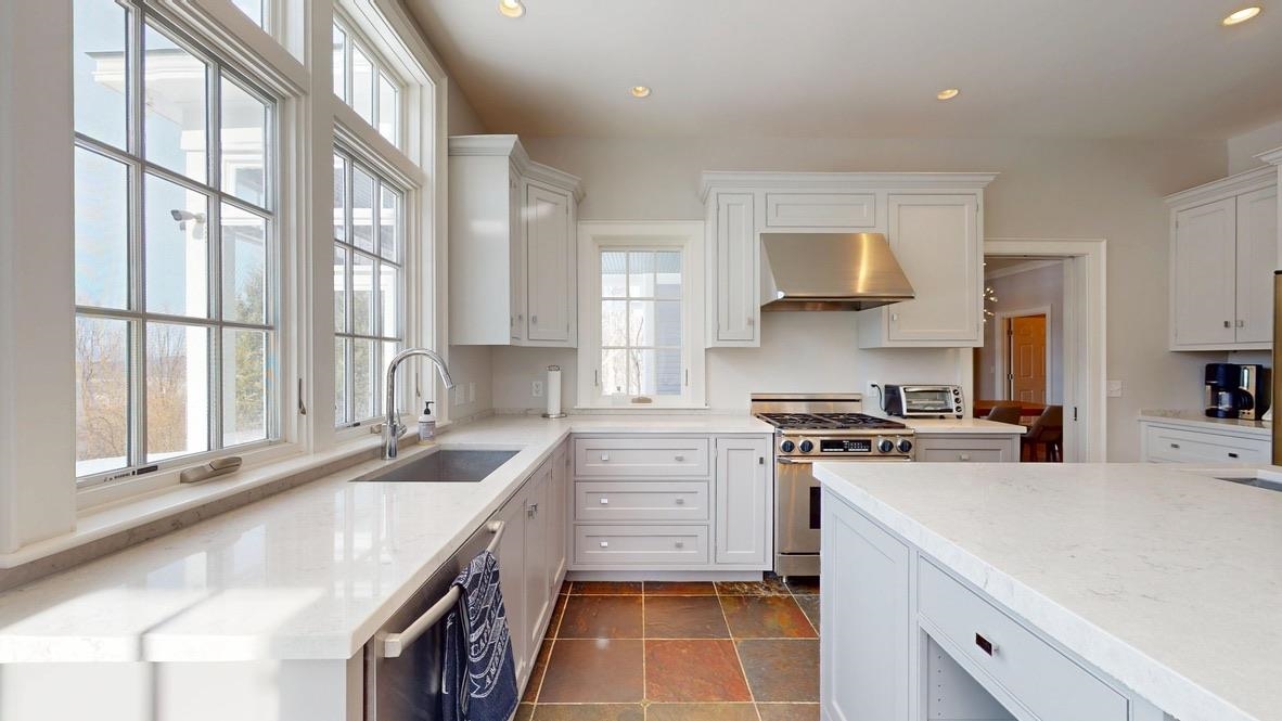 A luxurious, charming and inviting Cornwall property that has all the features one would expect, completely updated and refinished inside and out. With two wood burning fireplaces, two sets of washer/dryers, main living spaces wired for sound, wood stove and a wine cellar you've got plenty of bells and whistles too! The property was completely renovated and updated by the previous owners including new kitchen, room over the garage with the addition of a 5th bathroom (3 of 4 existing baths completely renovated), new fixtures, new water treatment system, standing seam metal roof and many more updates! The flow of this house invites you outside to the stone patio, screened/glass porch, and primary bedroom deck to enjoy the majestic views of the Champlain Valley, the Lemon Fair and to the Adirondacks - unmatched views and sunsets! A large barn on the property with a concrete floor and frost free hydrant, small concrete pad and dog runs plus a full second floor. A smaller barn with expanded roof coverage is great for wood storage, yard implements, small tractor/ATV's. The current owners have architectural plans to turn the barn into an entertainment space, plans are included with the sale! This type of spot does not come on the market often!