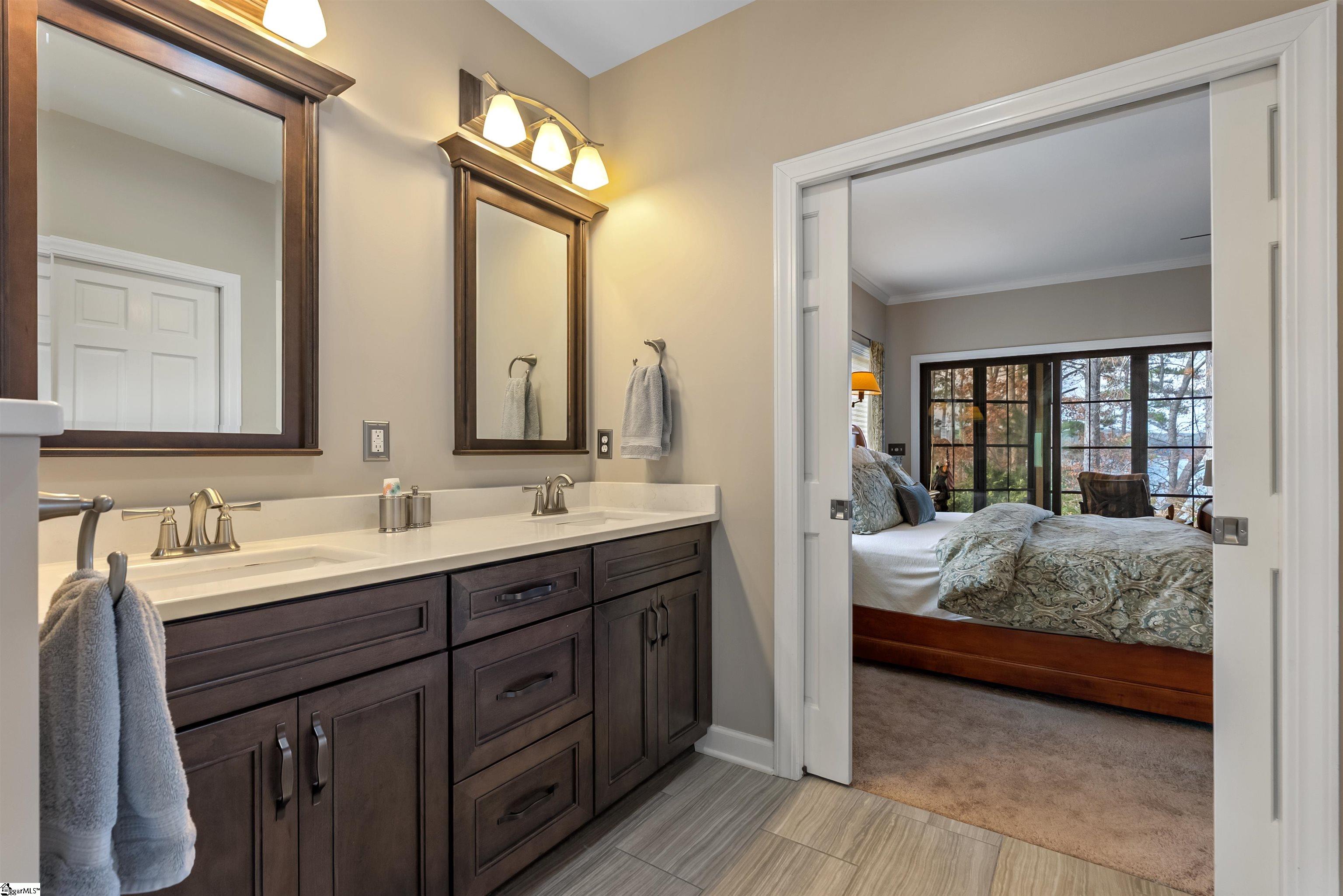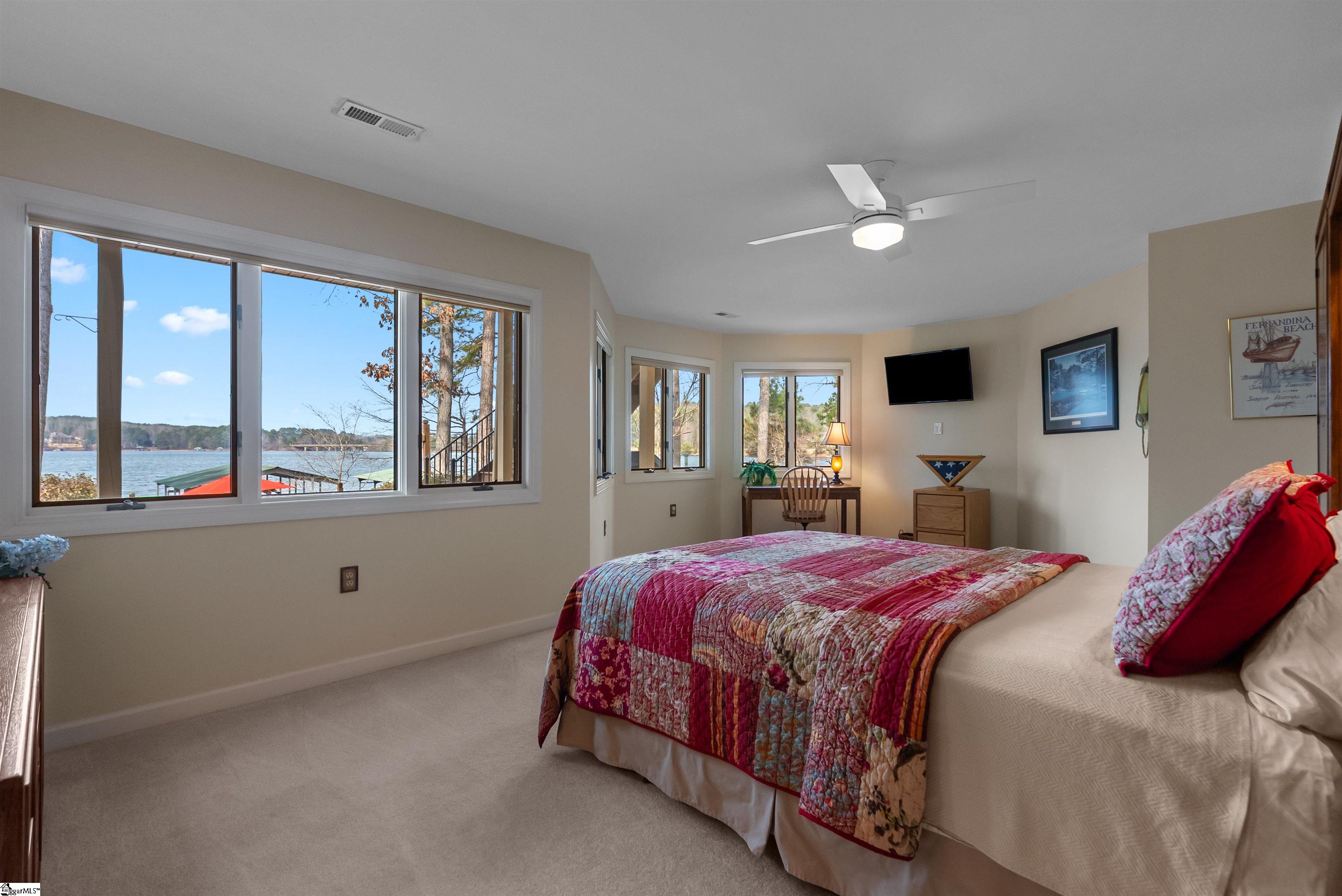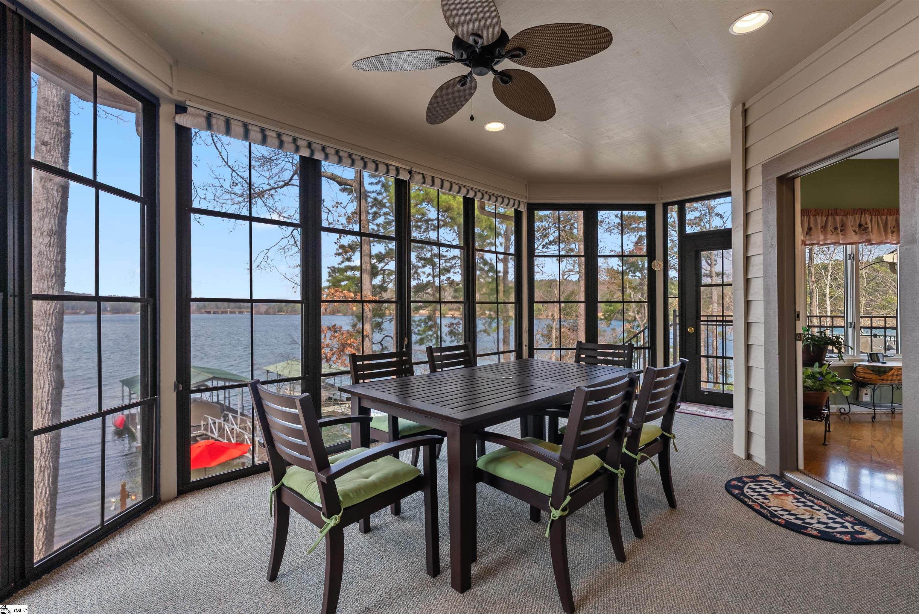 Imagine a place where the ripples of sparkling Lake Keowee waters and peaks of the majestic Blue Ridge Mountains paint the backdrop for your new lake living lifestyle. Welcome to 316 South Reach Lane located in the coveted South Pointe section of the full amenity community of Keowee Key. This waterfront retreat offers a blend of architectural character and comfortable space accompanied by unforgettable views. A striking wood-and-stone exterior sets the tone, hinting at the unique design and quality home inside. Windows adorn the lake side with all-season porches on each end of the main level. The modernized kitchen features granite countertops, abundant cabinetry, and generous prep space with ease of access to the porch for entertaining lakeside. A formal dining room and breakfast nook accommodate larger gatherings and holidays. The spacious primary suite is located opposite the living room featuring lakeside sliding doors that spill into a second all season porch. Start the day with morning coffee or hide away with a great book in this private owner’s retreat. The updated ensuite bath features a beautifully tiled glass shower with bench seating, dual vanities, a private water closet, and a spacious walk-in closet. A home office, den or keeping room is adjacent the primary suite with a bright bay window. The terrace level offers a large recreation, media room adorned by a stone-faced gas fireplace and built-in television and sound equipment center. A warm-tone bar area features a wine cooler, ice maker, glass accent cabinetry, and bar top seating for gathering during a big game or great movie. Three spacious guest bedrooms are spread out with two connected by a full guest hall bath and a third offering the feel of a secondary primary suite with a private hall entry, an oversized sleeping area, walk-in closet, and large open water lake views. Don’t miss the climate-controlled storage room for organizing keepsakes, seasonal items and lake toys. Sliding glass doors open to the flagstone outdoor patio that extends the entire lakeside of the home. Multiple covered porch areas compliment the two all-season porches above, and you are just steps from your deep water covered slip dock. A personal soft sand beach directly in front of the dock area - a rare find on Lake Keowee - enhances the property’s appeal, along with over 100 feet of shoreline accented by beautiful water and mountain views. Distinctive architecture, quality materials, multiple indoor and outdoor living spaces, and an exceptional waterfront setting, this unique waterfront find delivers the ultimate Keowee Key lifestyle. Keowee Key offers a resort driven lifestyle with an 18-hole golf course, fitness and racquet center with 14 tennis and 8 pickleball courts, walking trails, dining options, multiple marinas with fuel docks, a private swim beach, outdoor pools, and a 24-meter heated indoor pool. Under the direction of a new chef and community general manager, the social calendar, dining, and events are better than ever with three menus plus a plethora of activity clubs and events. Conveniently located just 20 minutes from Clemson University, one hour from Greenville, two hours from Atlanta, and 90 minutes from Asheville. (New roof installed 2025)